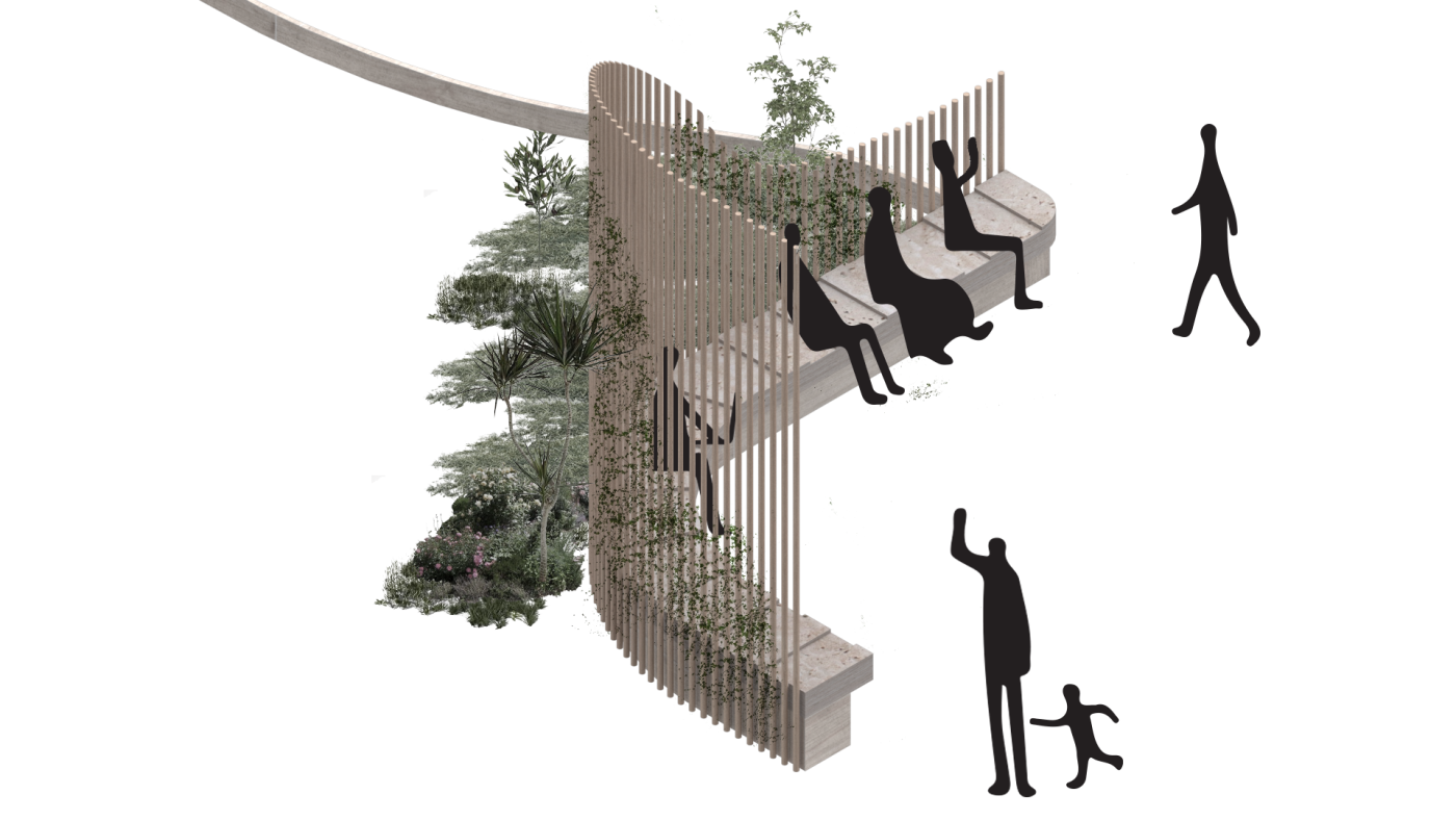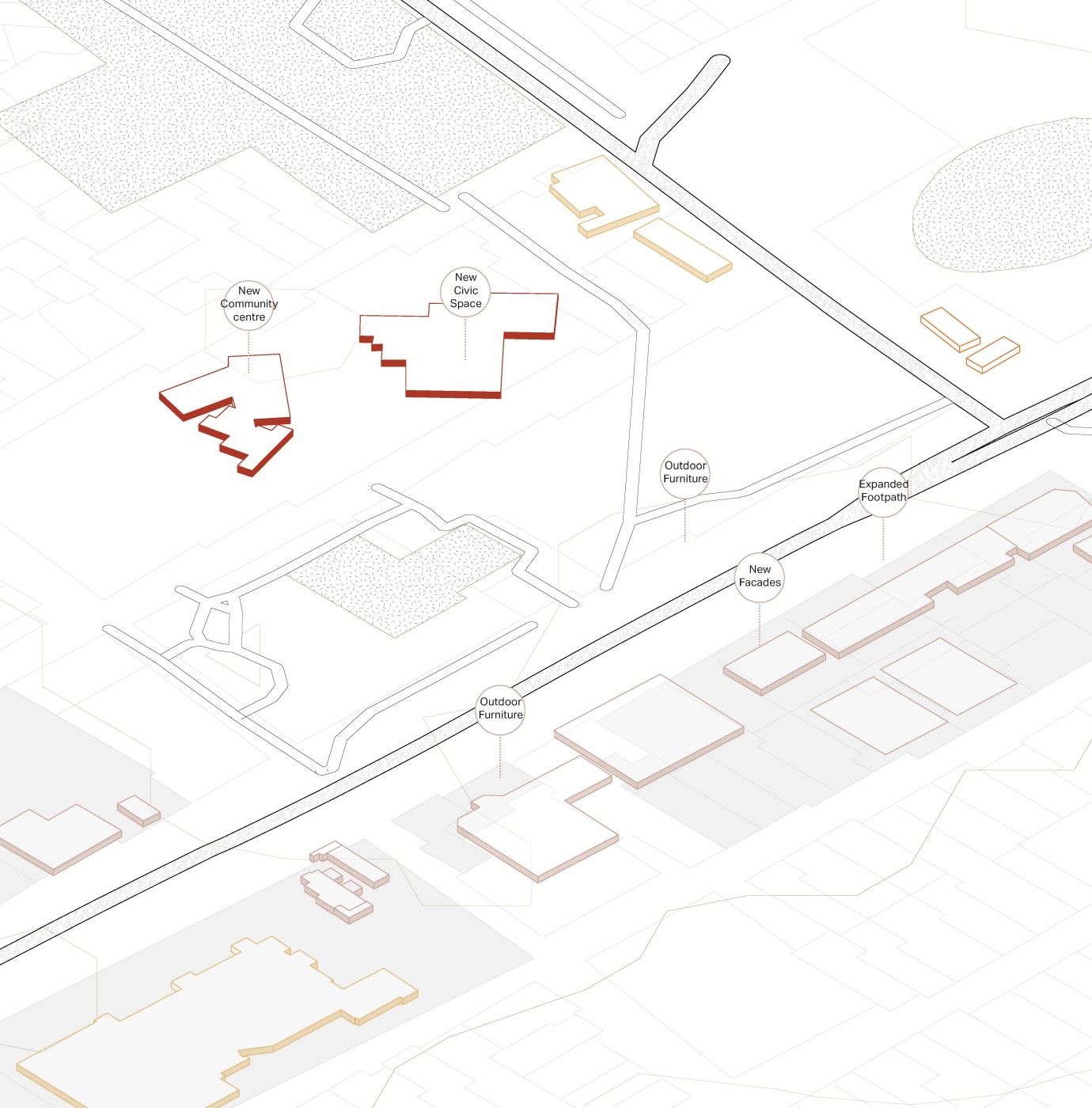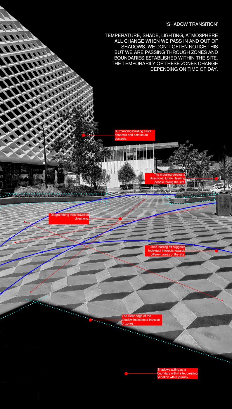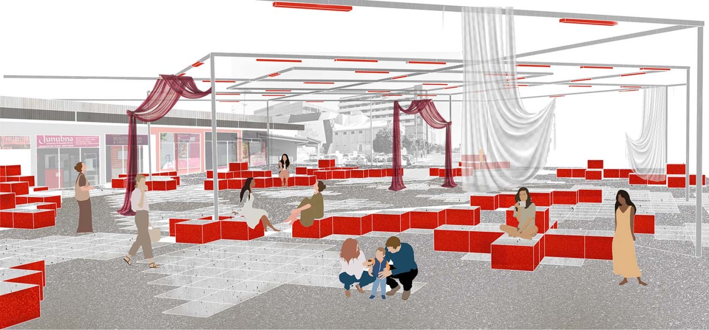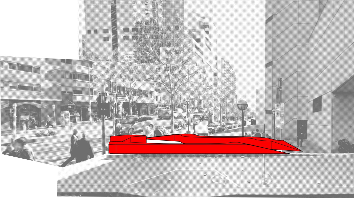 Embedded within the design of our public spaces are hidden power structures that can influence how we navigate through sites and at times dictate our behaviour. This project seeks to privilege pedestrians over cars and explore the values of public spaces for community within the development of a precinct.