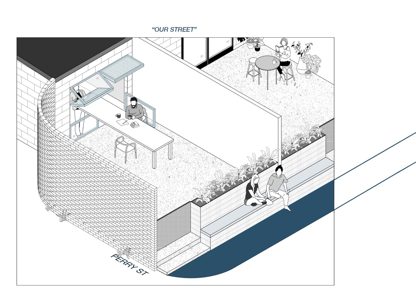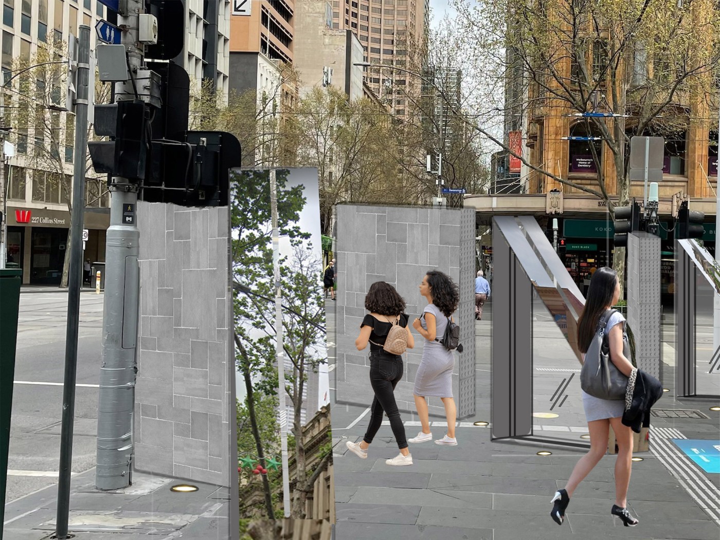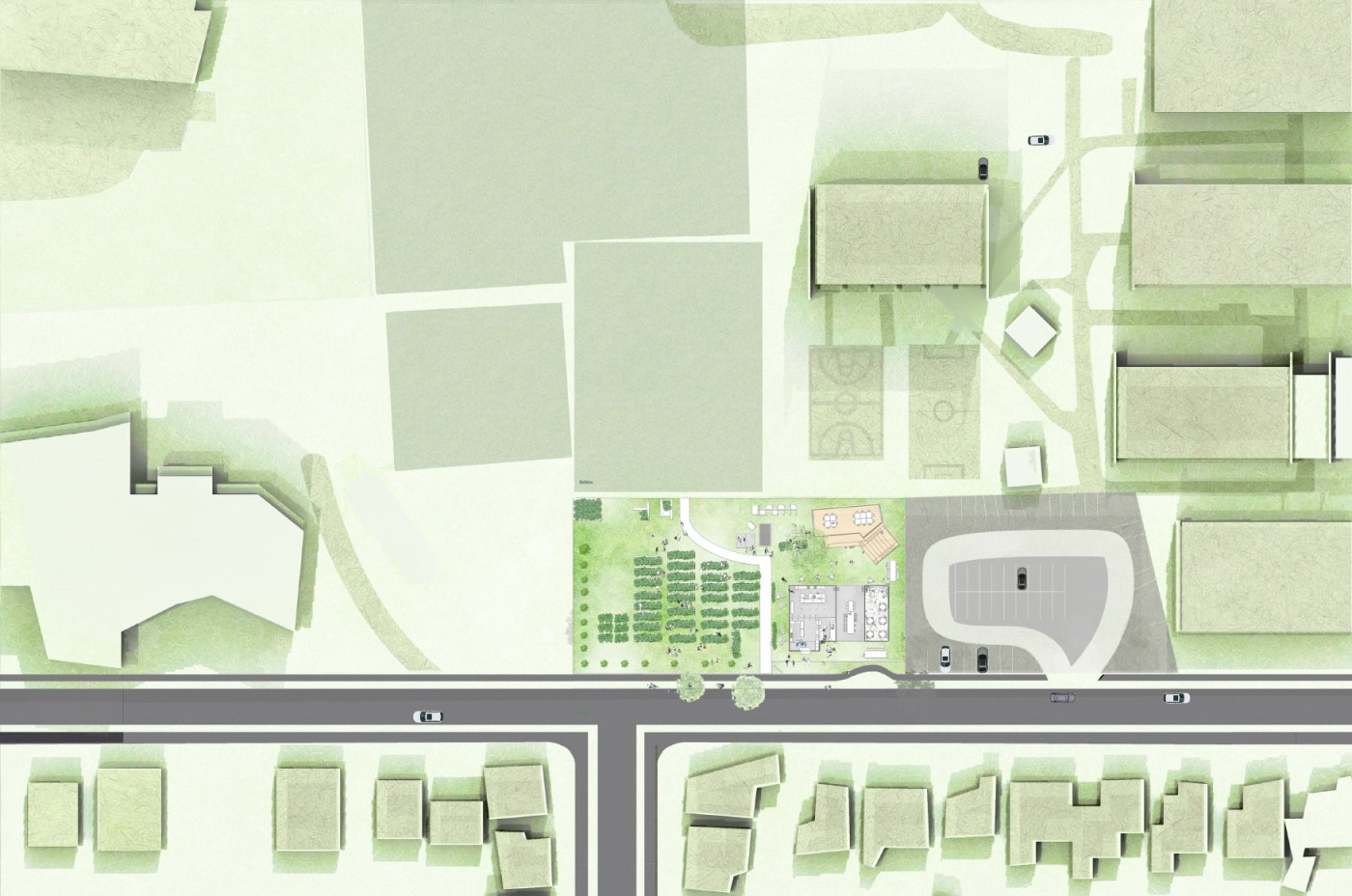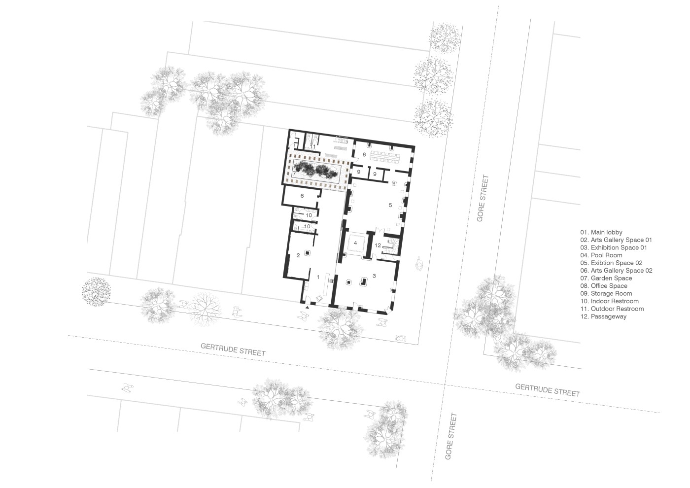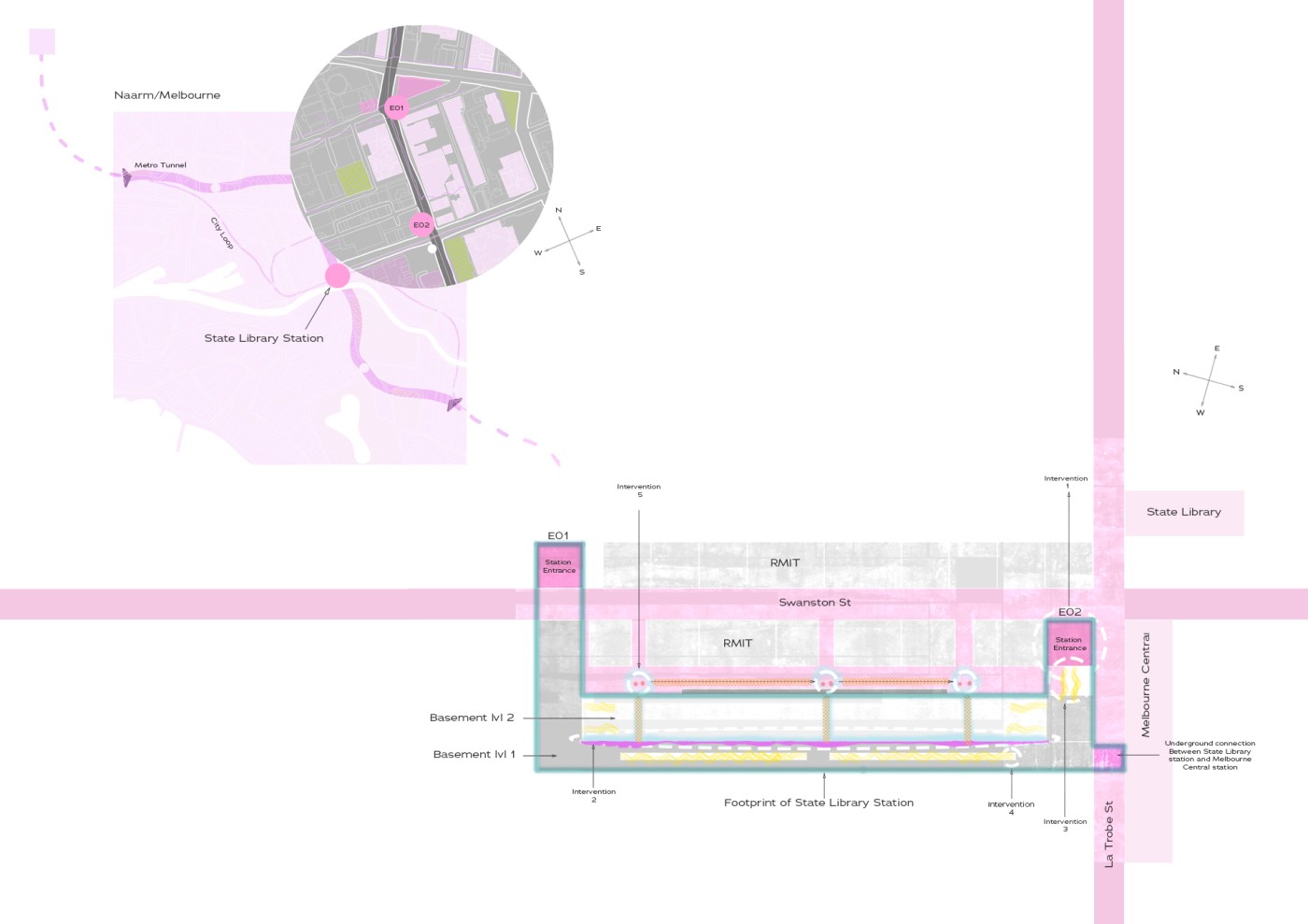 Embedded within the design of our public spaces are hidden power structures that can influence how we navigate through sites and at times dictate our behaviour. This project seeks to privilege pedestrians over cars and explore the values of public spaces for community within the development of a precinct.