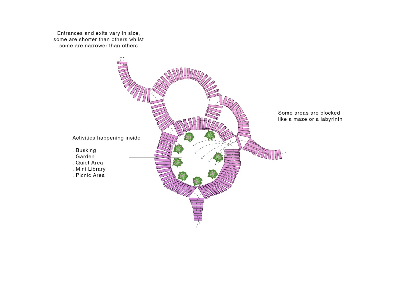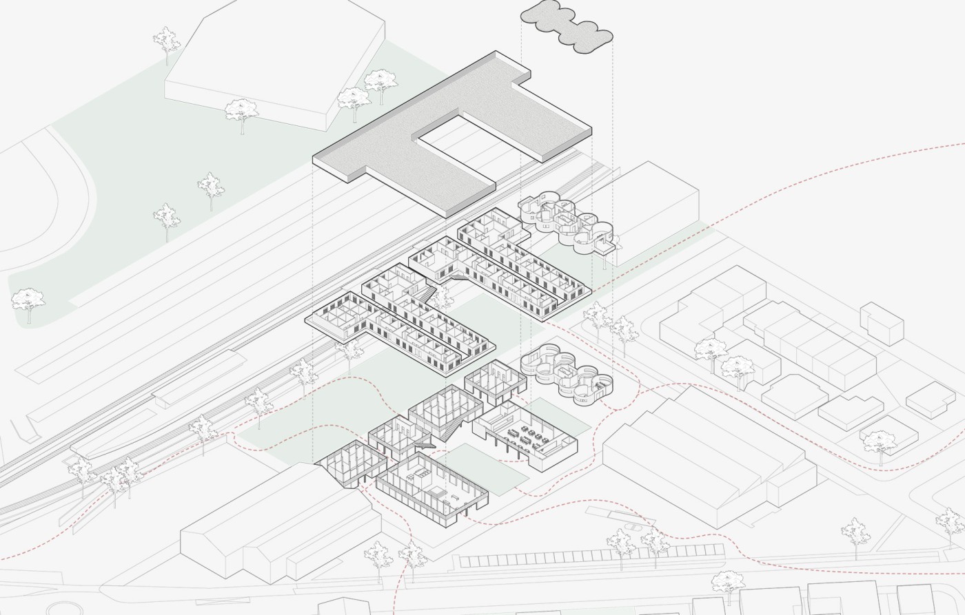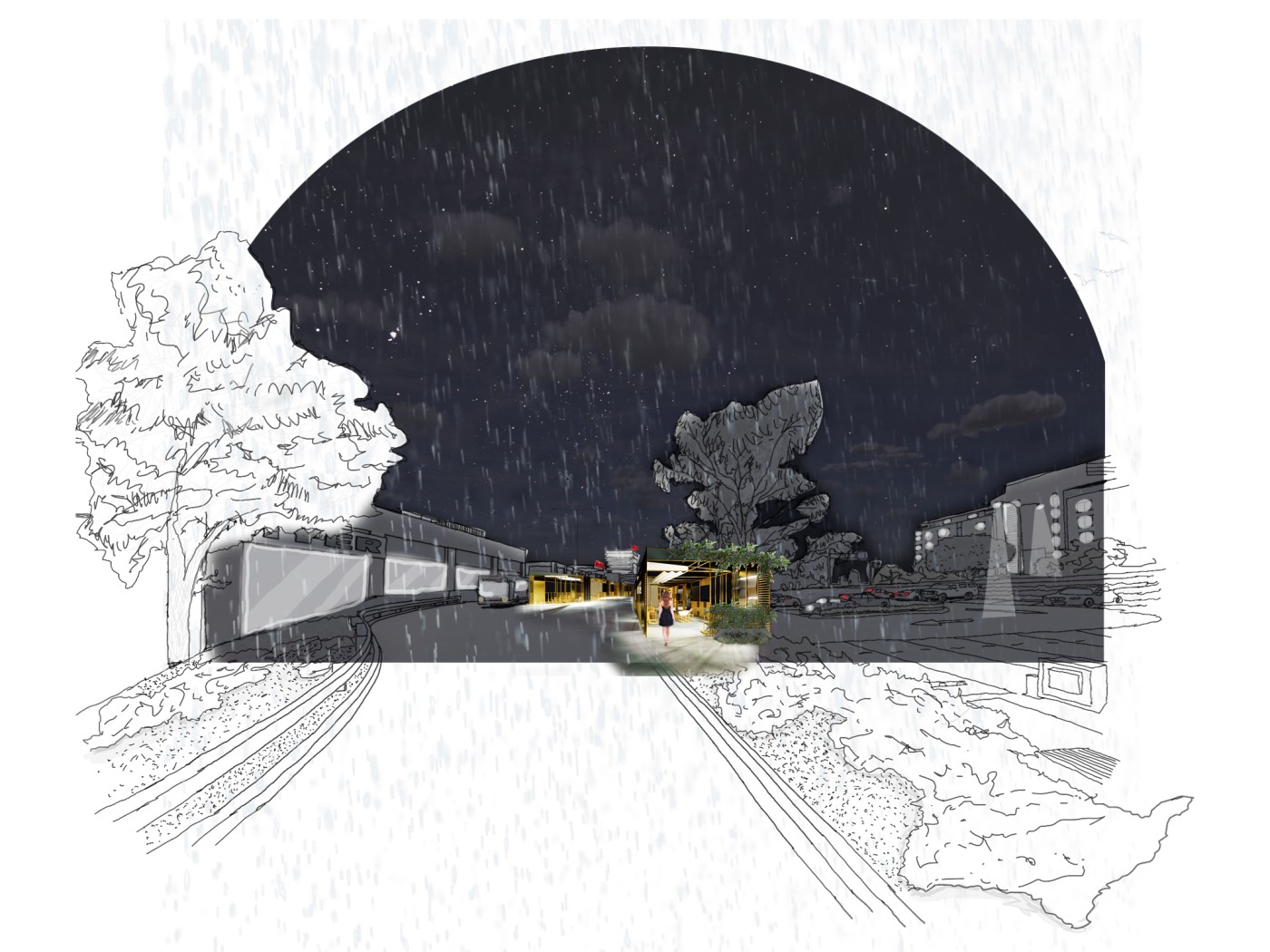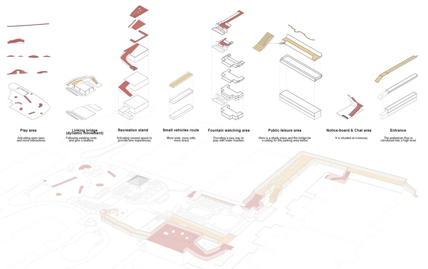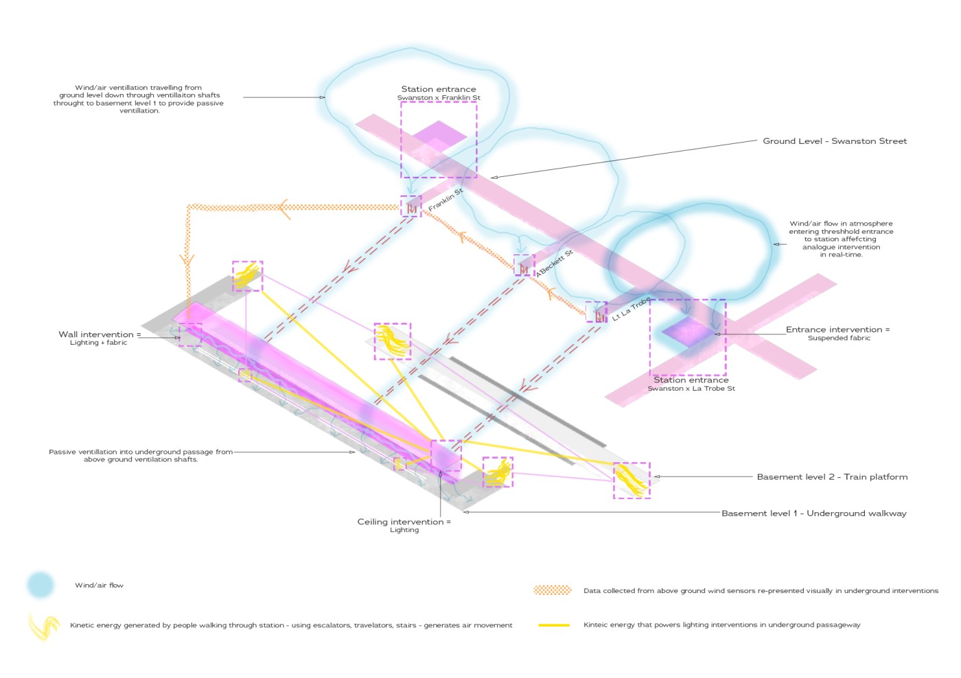 Embedded within the design of our public spaces are hidden power structures that can influence how we navigate through sites and at times dictate our behaviour. This project seeks to privilege pedestrians over cars and explore the values of public spaces for community within the development of a precinct.