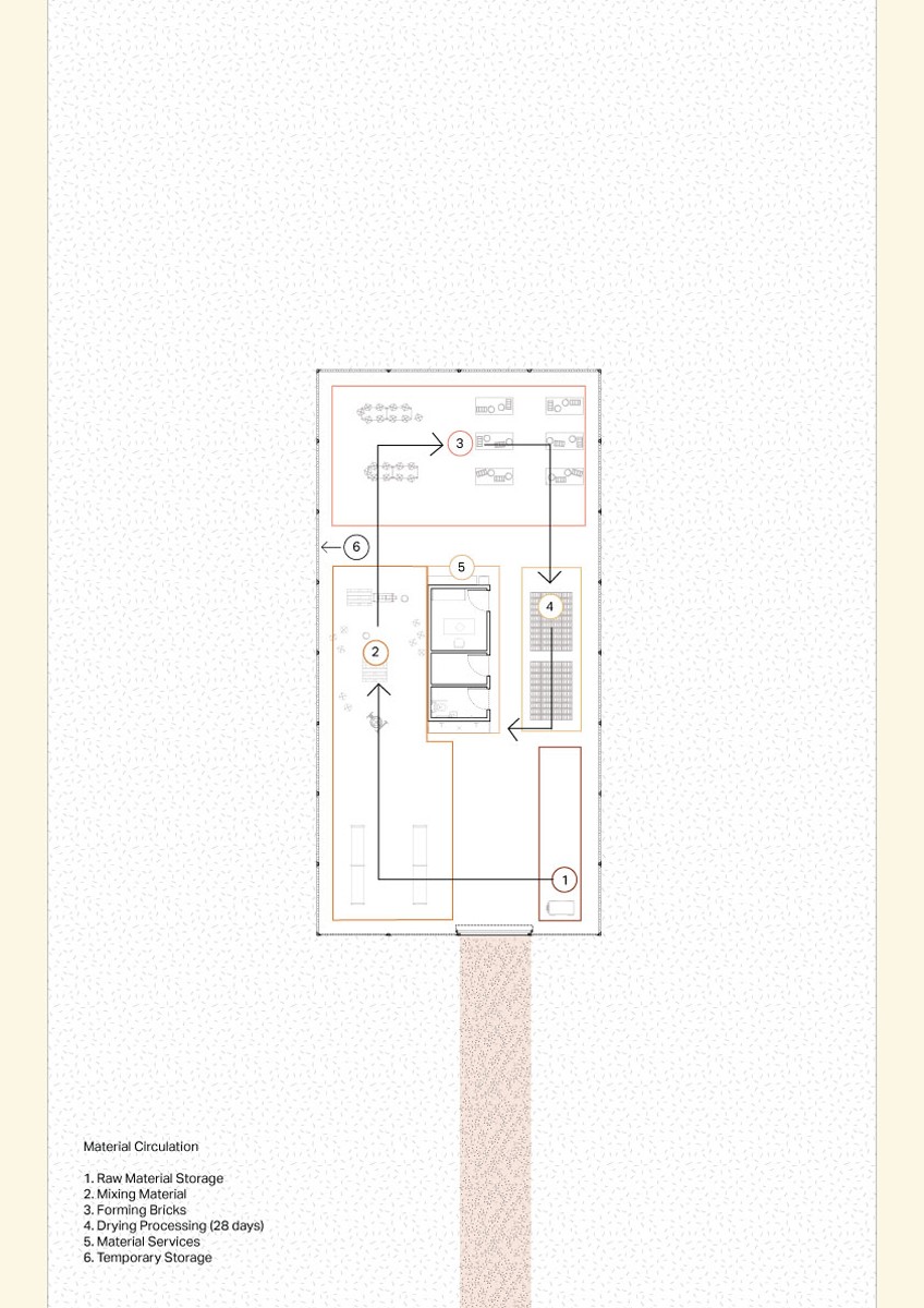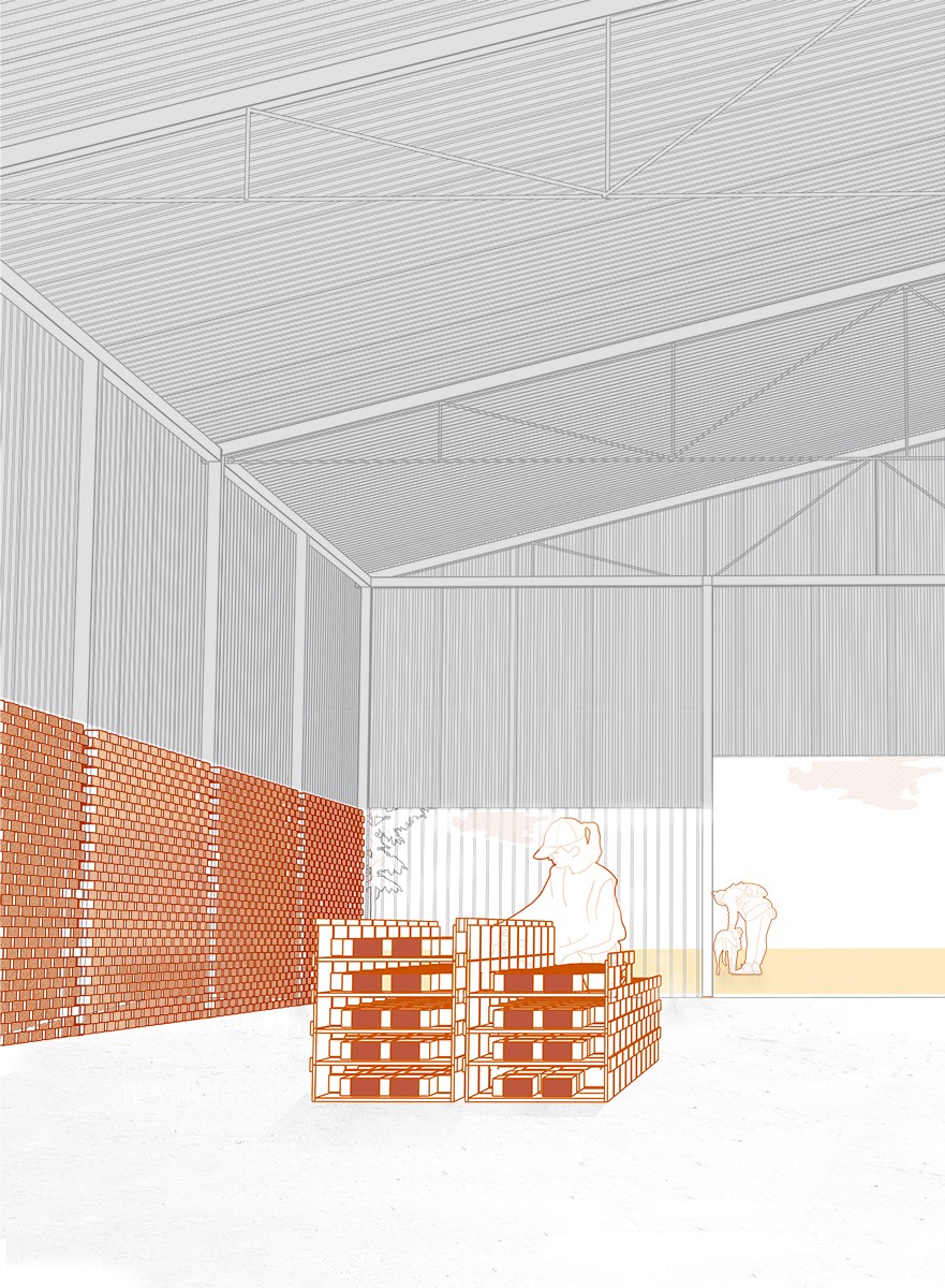 100 000 Bricks is an opportunistic proposal that suggests ways that residents of Wallan can have a hands-on role in the large-scale development of the town centre redevelopment. Residents have open access to a brick production program where they make bricks that are used for town infrastructure, working into the town centre masterplan. This multi-faceted approach includes, responds, and involves present and future residents through a brick production site, community event program, and digital archiving. These interventions sit in a larger network, reimagining the relation between the quarry and town typologies and people, power and material. This program enacts to empower local communities impacted by quarrying and generate value in small towns' social, economic, and urban fabric.