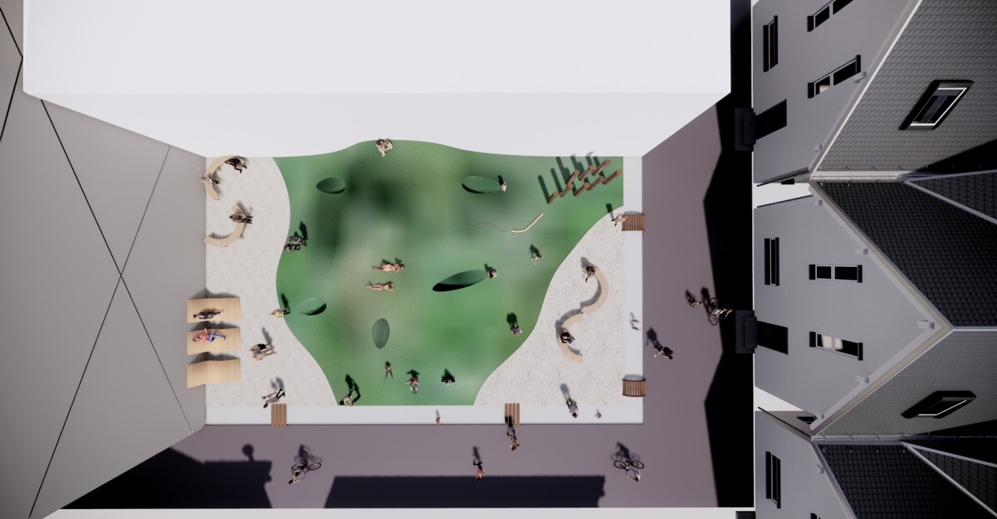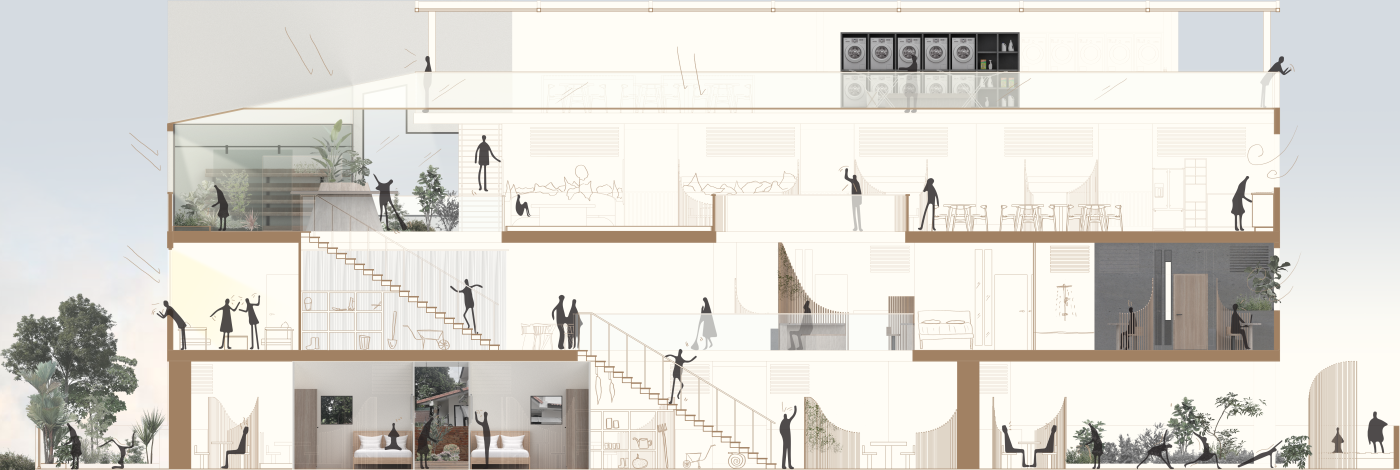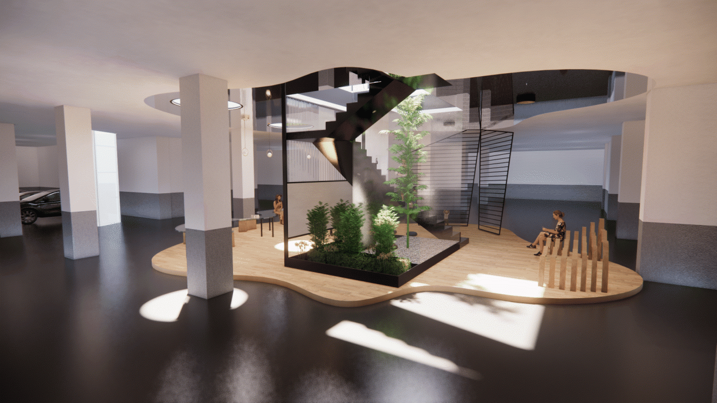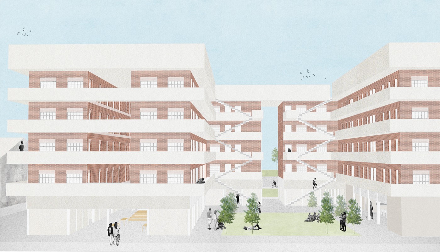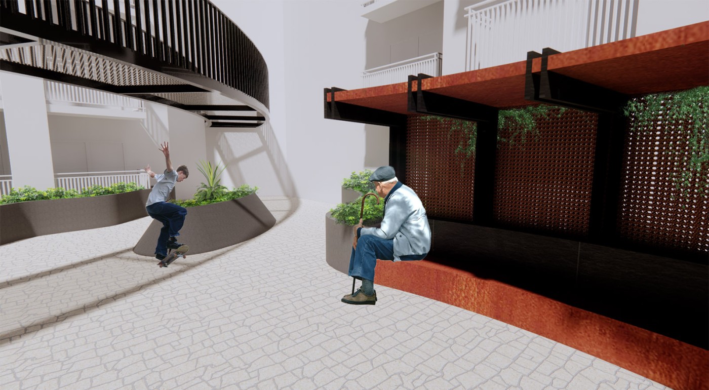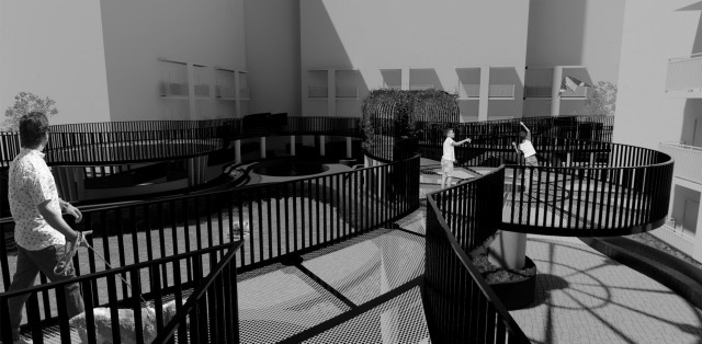 The study will be carried out through annotations, sketches, drawings and digital modeling. The aim is to increase human and social interaction and to make the full use of the urban space. These human-centered and environmentally friendly interventions can atrract more inhabitants. These shared spaces improve the quality of life of residential communities. Through these interventions in underutilized spaces, a stronger sense of interconnectedness can be created within the apartment building. Increasing the sense of community and reducing loneliness for the future people.