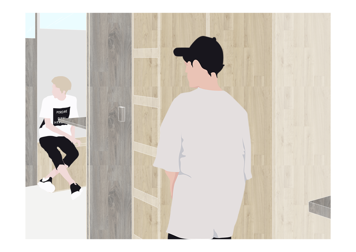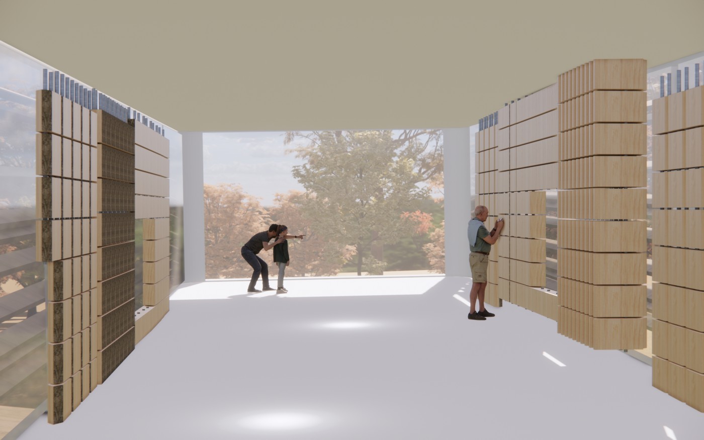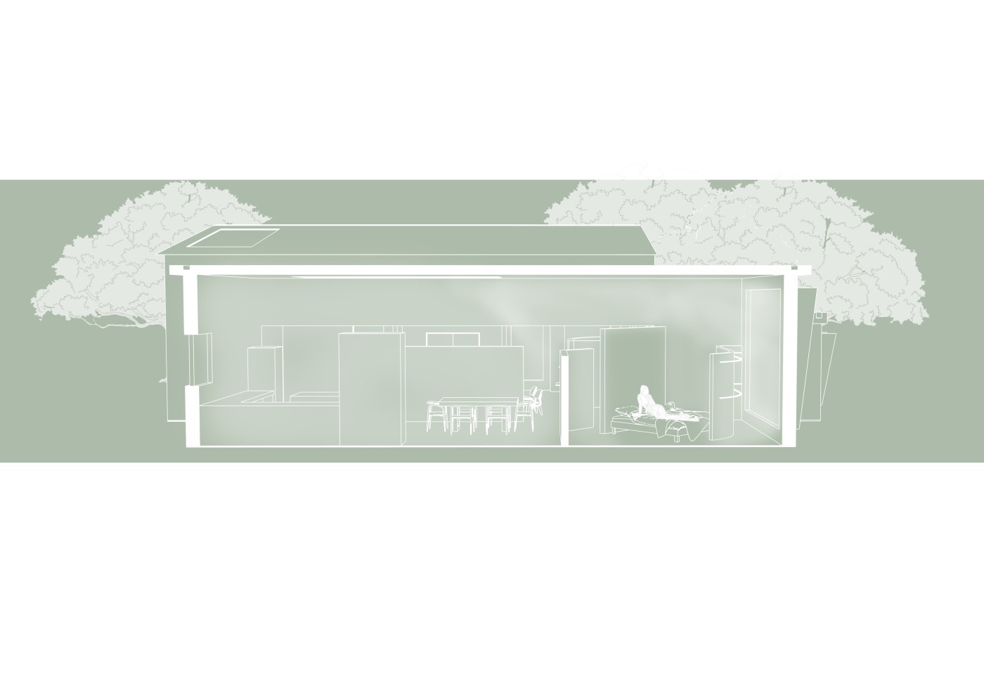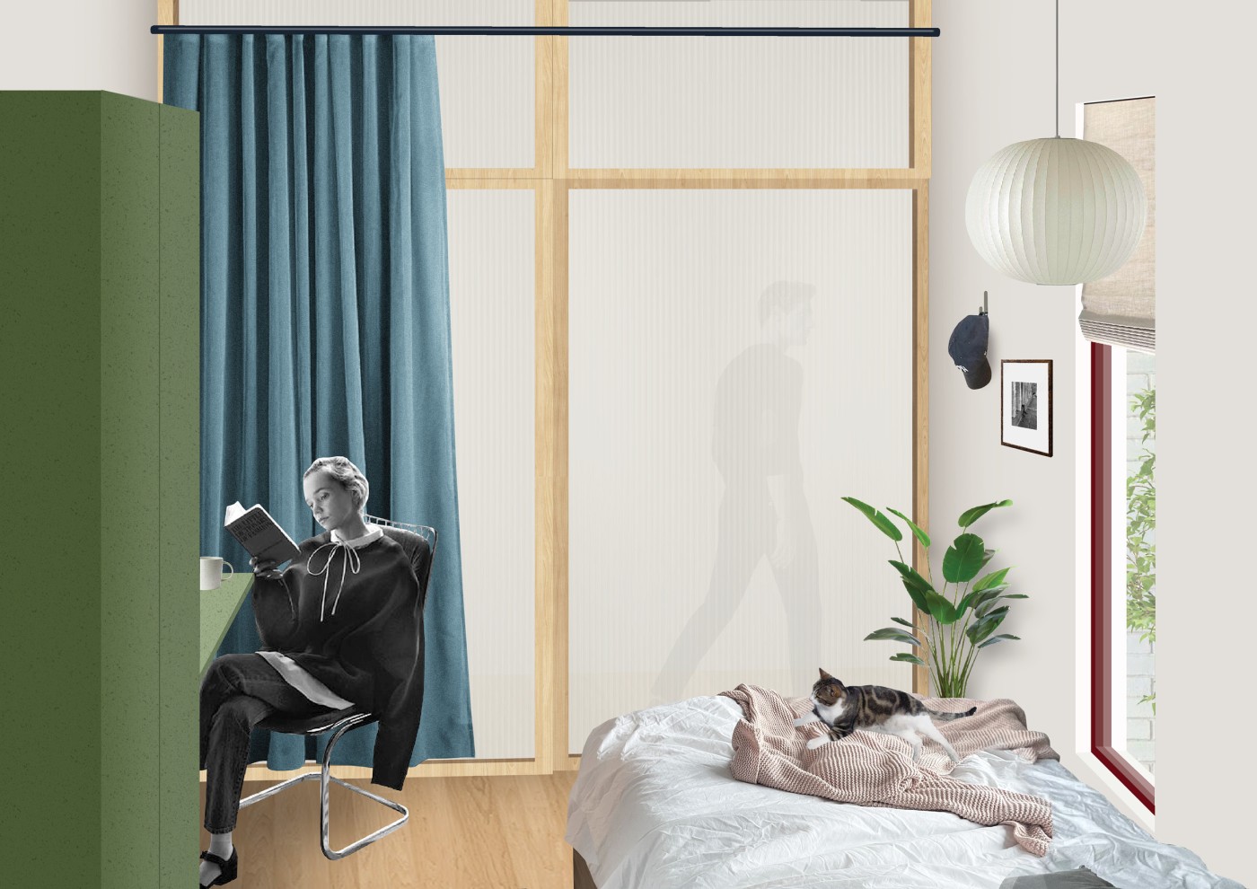 The final project expands on this approach by designing for residents in a retirement home. Given that people of retirement age spend more time at home the research asks whether the design of green spaces within the interior can assist residents in sociality, purpose and wellbeing. The design proposal first establishes the residents overlapping routines.