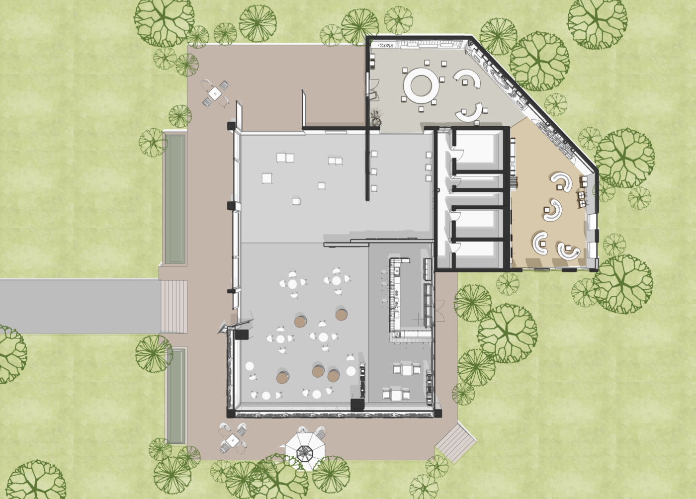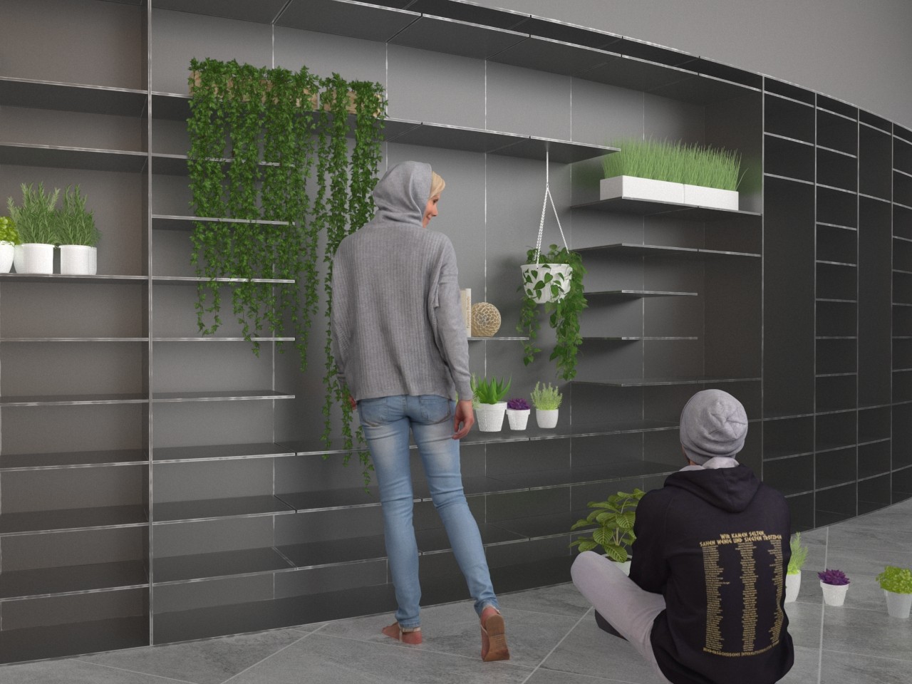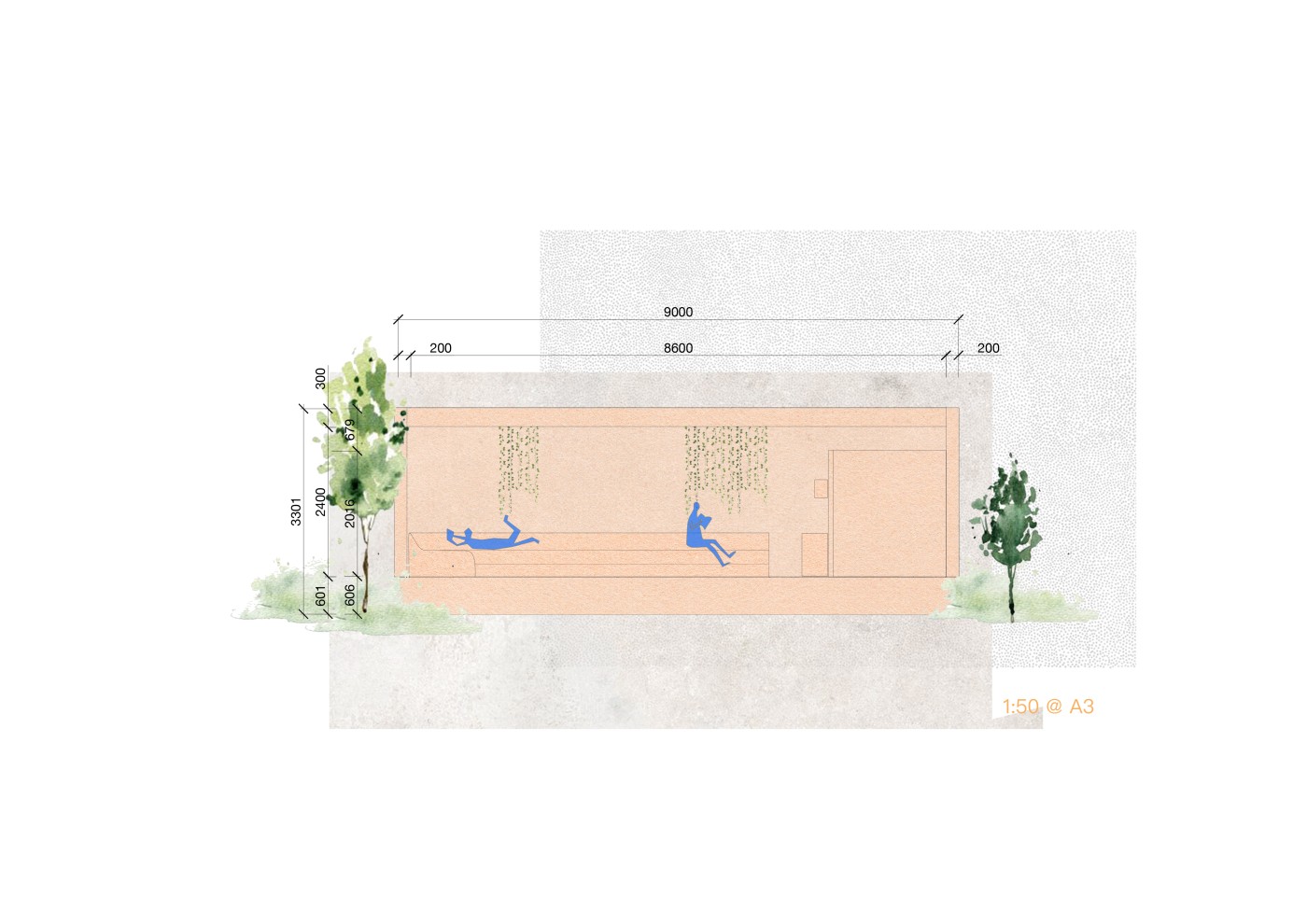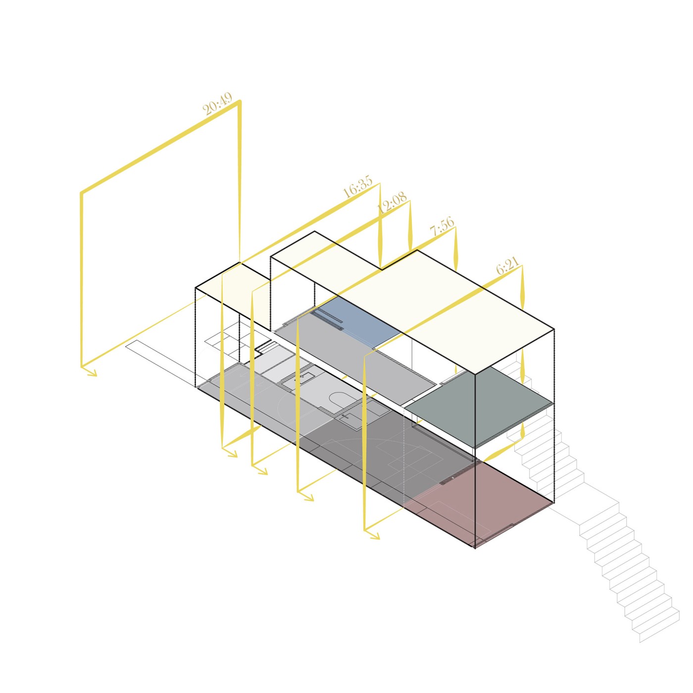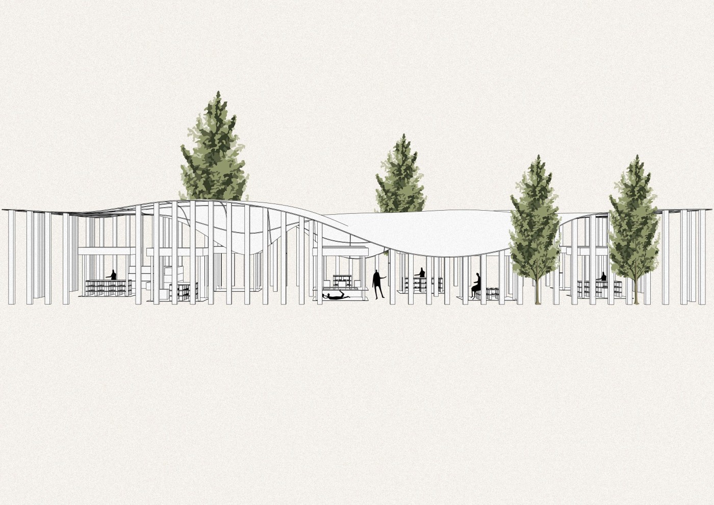 The final project expands on this approach by designing for residents in a retirement home. Given that people of retirement age spend more time at home the research asks whether the design of green spaces within the interior can assist residents in sociality, purpose and wellbeing. The design proposal first establishes the residents overlapping routines.