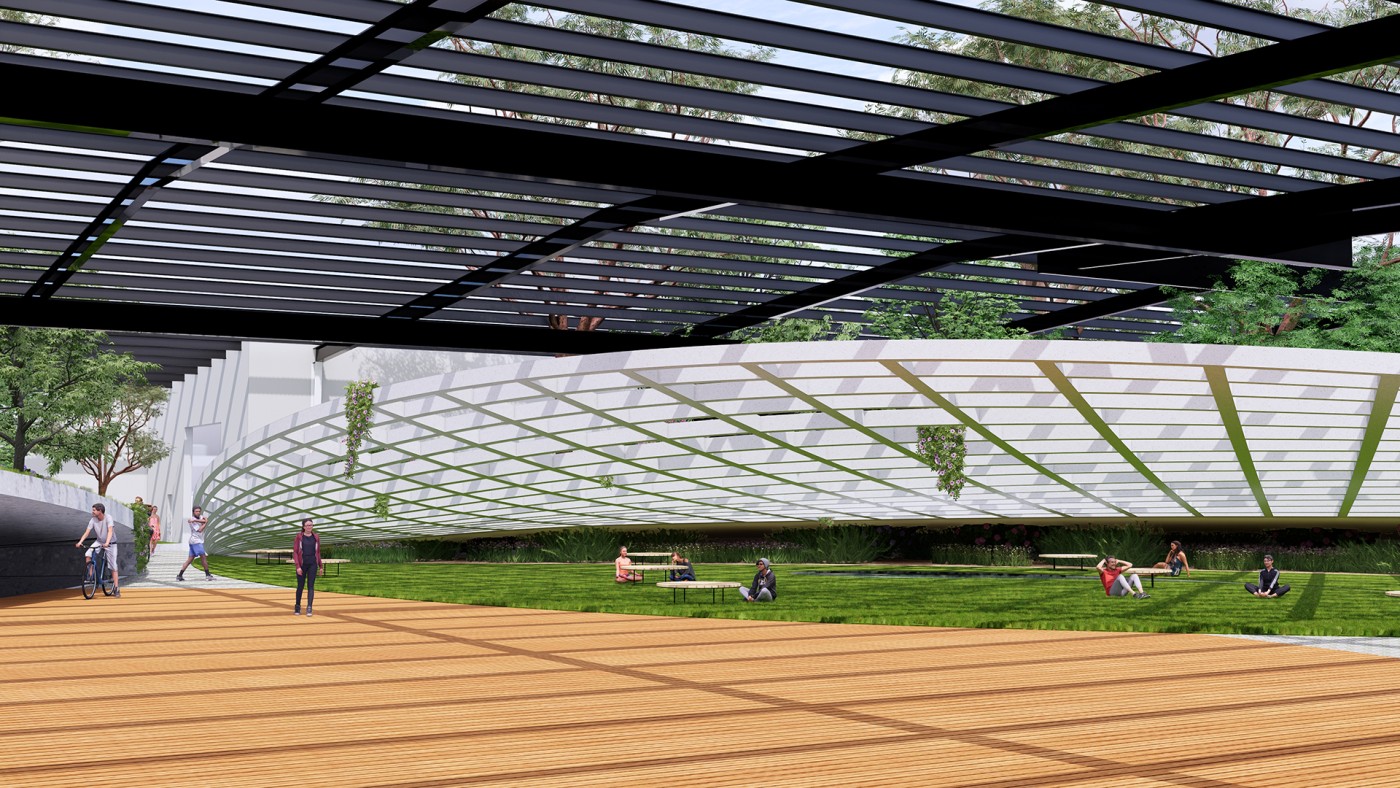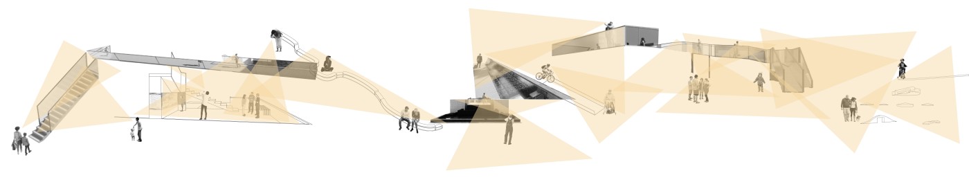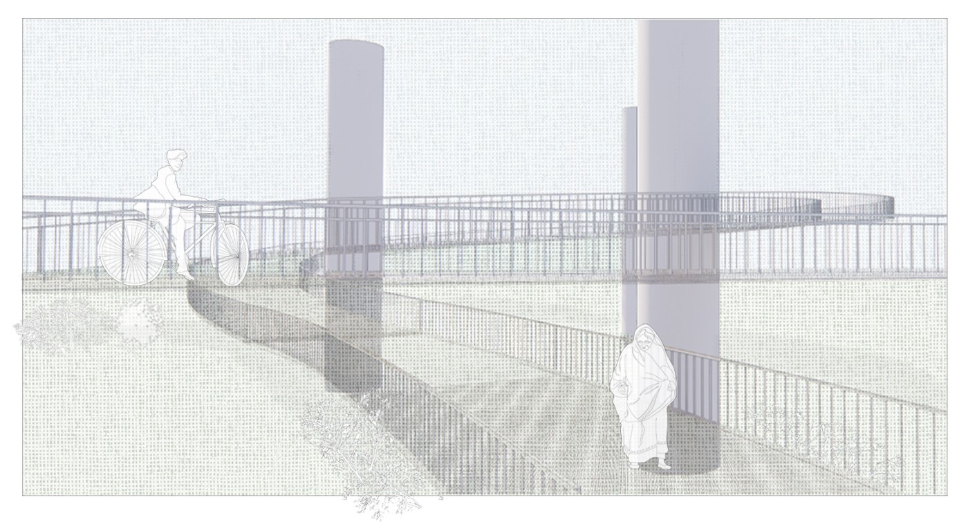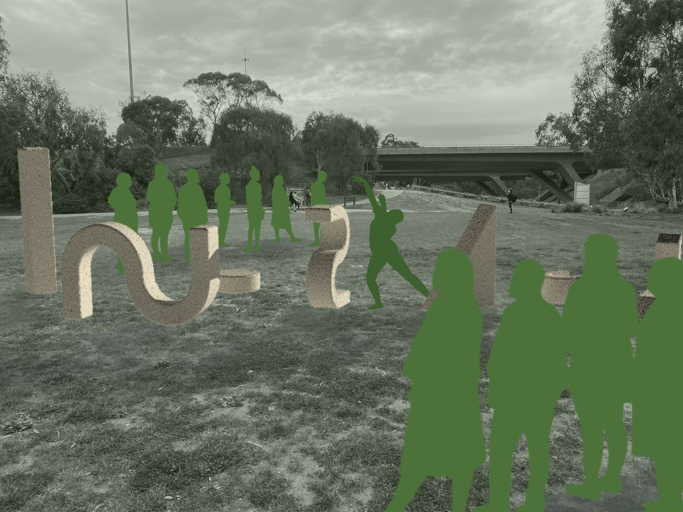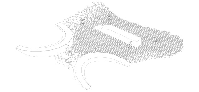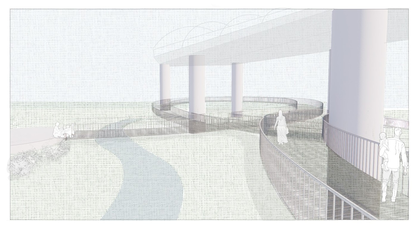 The design proposal is situated at sites along the Moonee Ponds Creek in Flemington which sits between a public housing estate and a freeway overpass. The design explores the possibility of multifunctional nodes to bridge the social division of public housing residents and the wider community. It also draws influence from the temporal nature of the waterway and creates dialogue with its mediated movement with increased urbanisation.