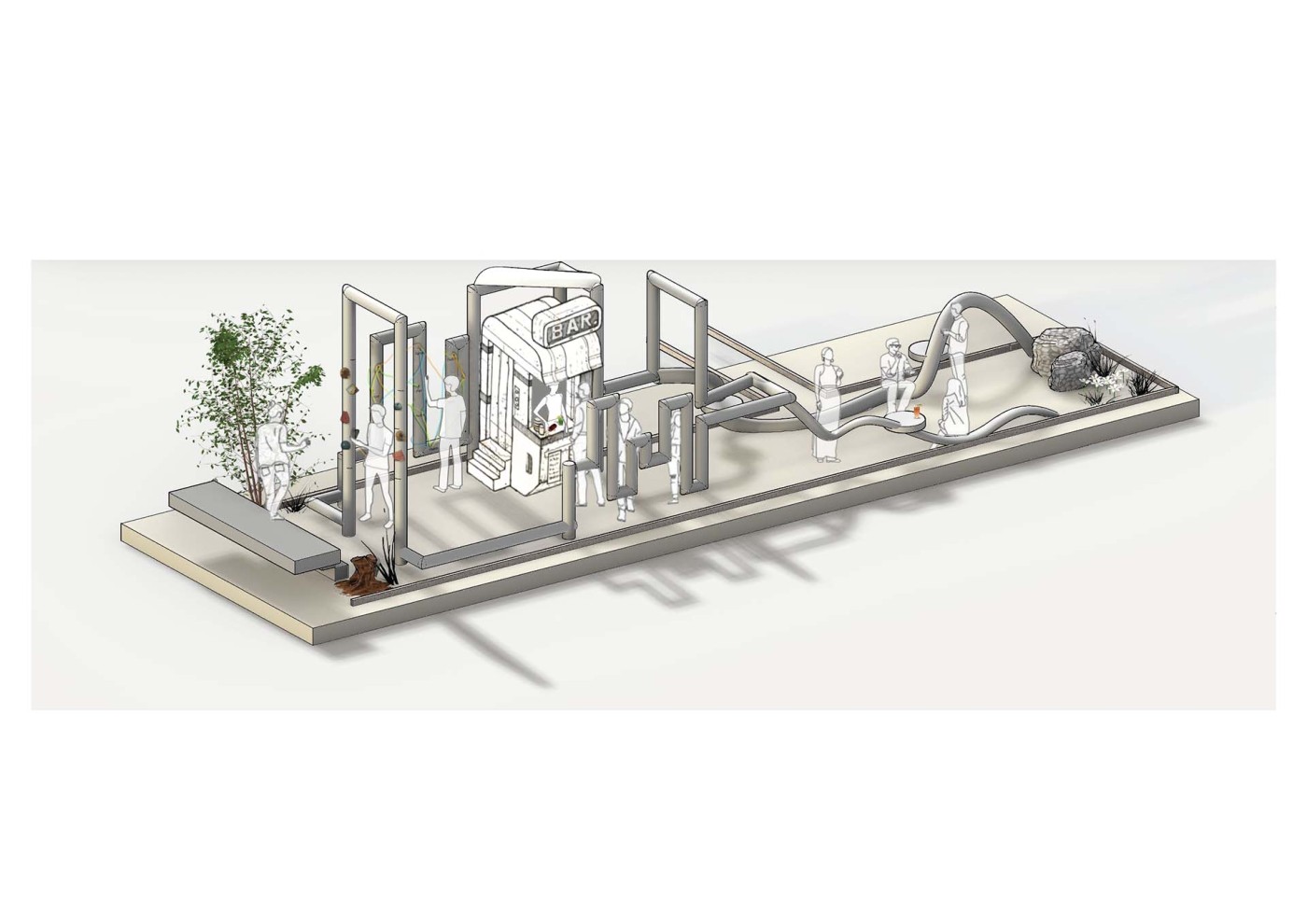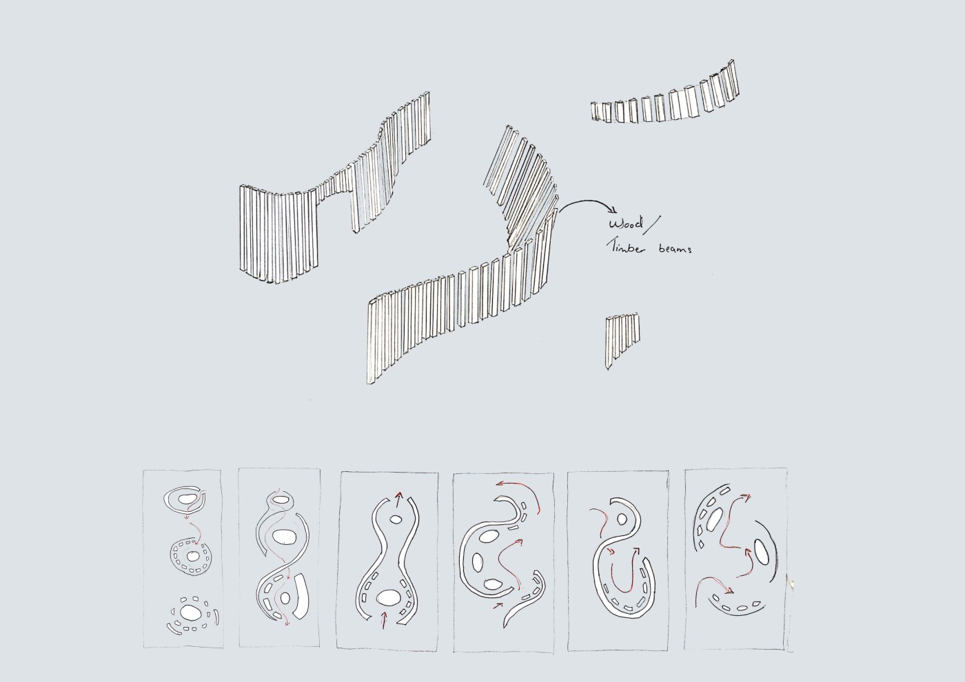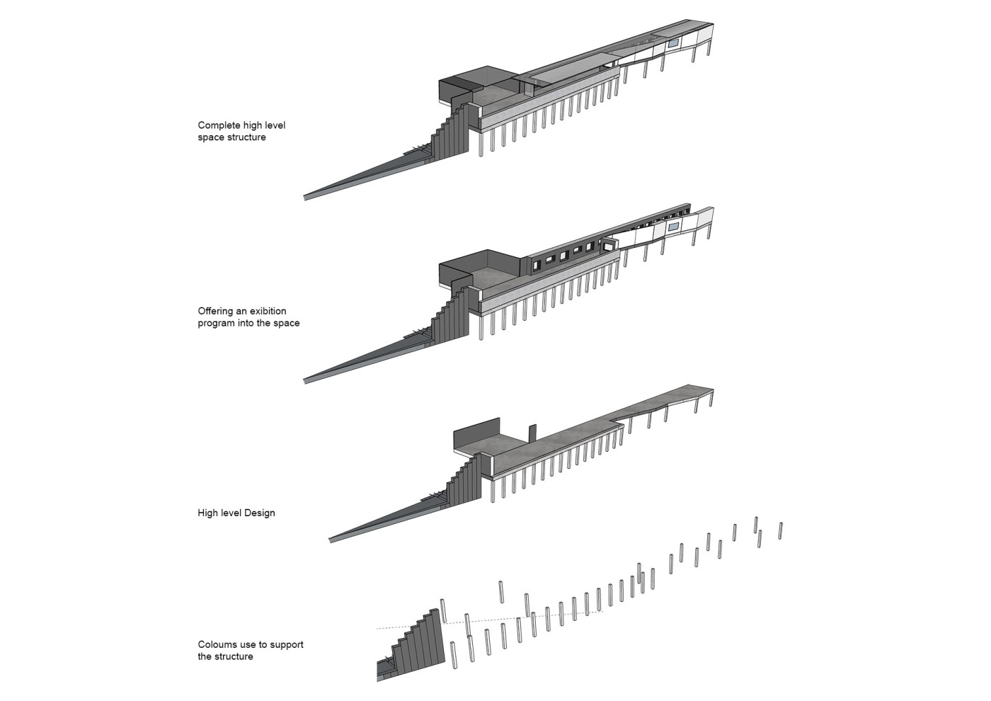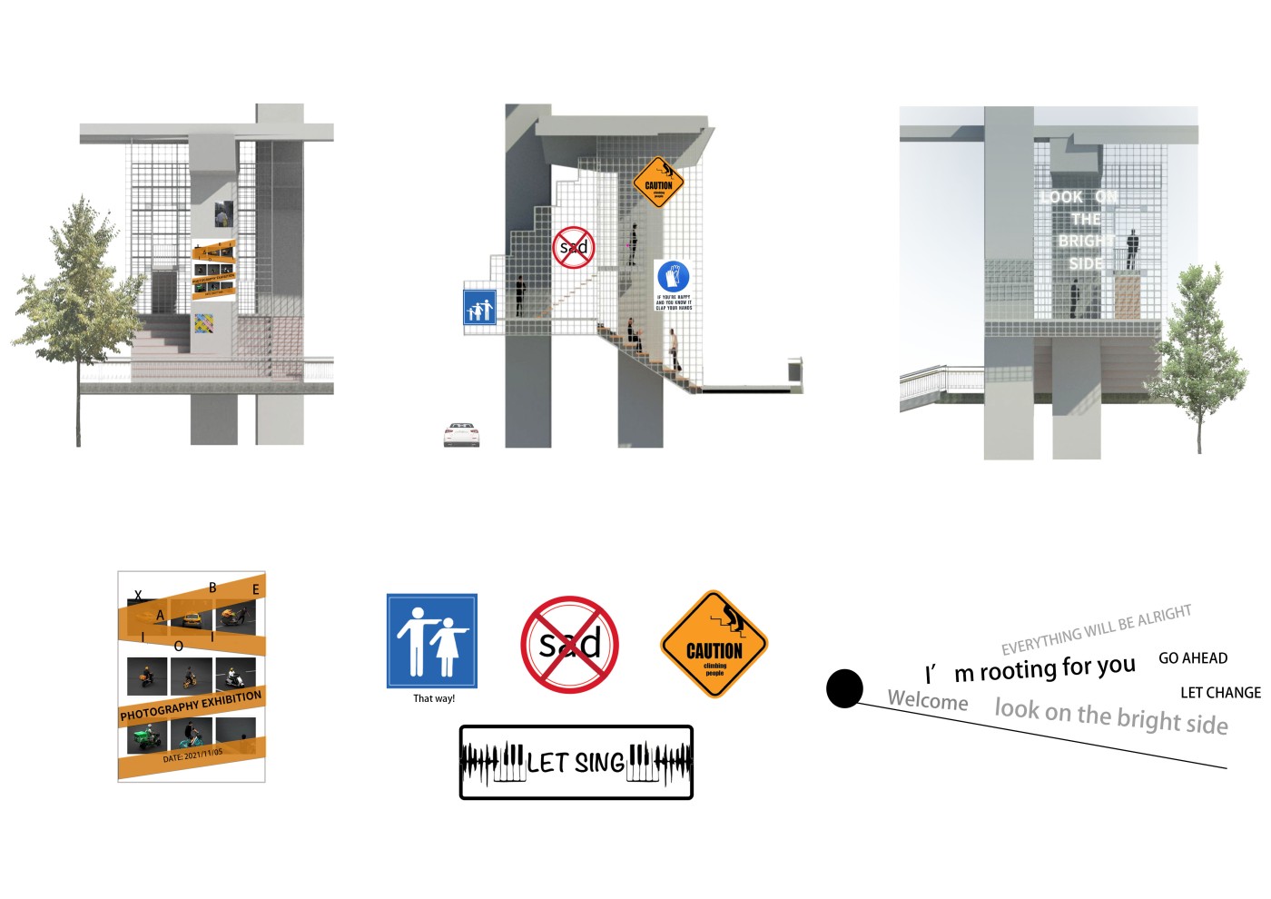 The design proposal is situated at sites along the Moonee Ponds Creek in Flemington which sits between a public housing estate and a freeway overpass. The design explores the possibility of multifunctional nodes to bridge the social division of public housing residents and the wider community. It also draws influence from the temporal nature of the waterway and creates dialogue with its mediated movement with increased urbanisation.