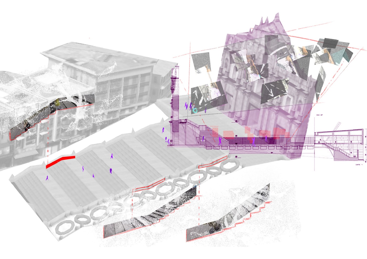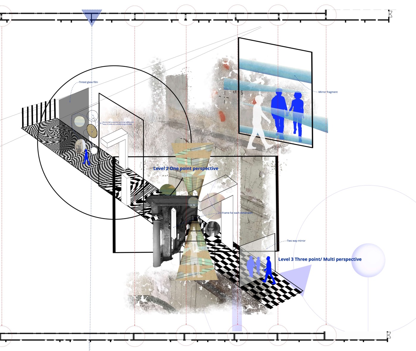 The research questions how to make history visible to create new connections with the place? The project explores how to engage people by asking them to activate the moment of impermanence by constructing traces of time. By posing these questions, this project reflects those moments that emerge from the site to be performative and interactive. 'Walking in time' is an interior design project that encourages attention to the overlooked histories in the urban environment – to highlight connections between the present and past.