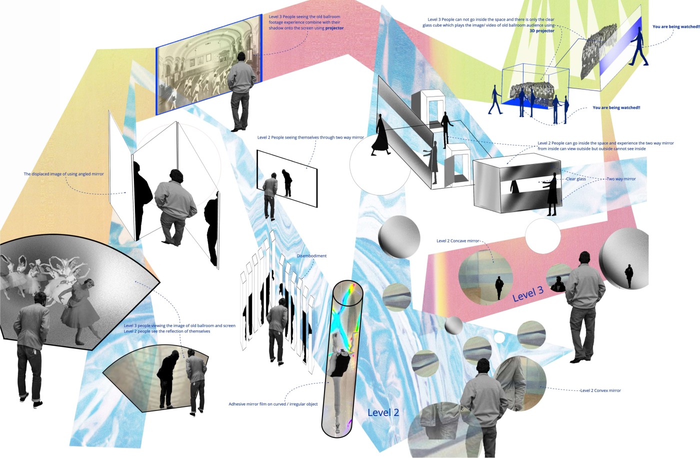 Ambient Bubble explores the question: How can the atmospheric qualities of a space or location be conveyed through cinematic design? Using site-specific spatial video installation, the audience will be connected and transported to other environments. This research project will explore themes of atmosphere, etherealities, light, displacement and colour through cinematic design.