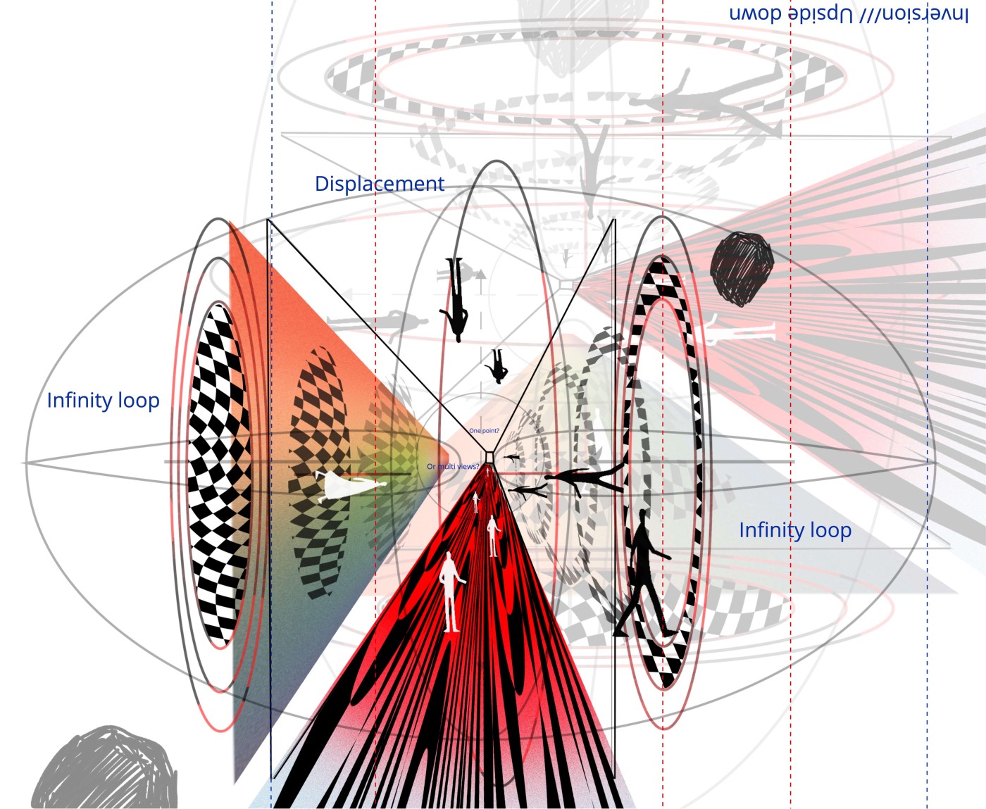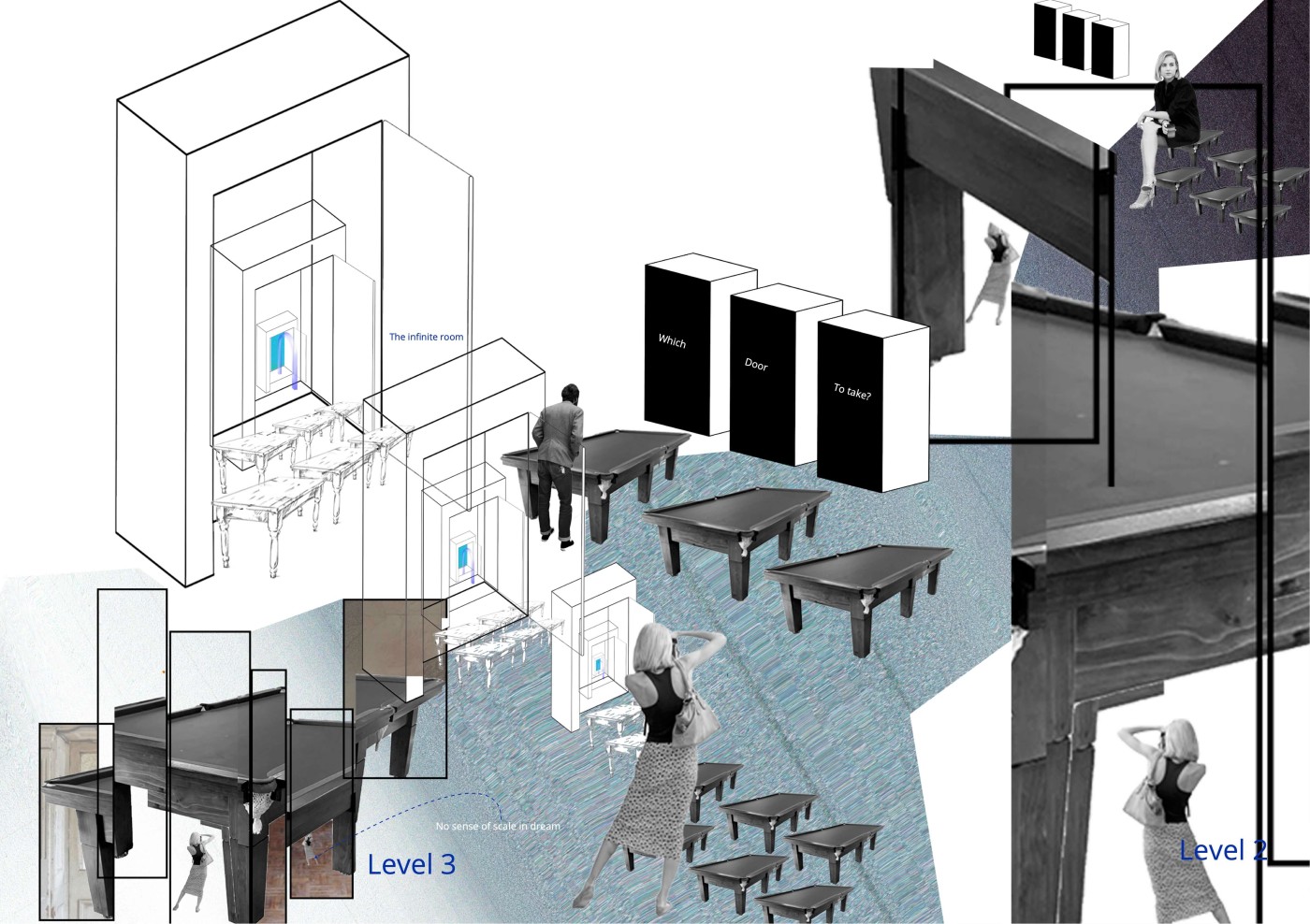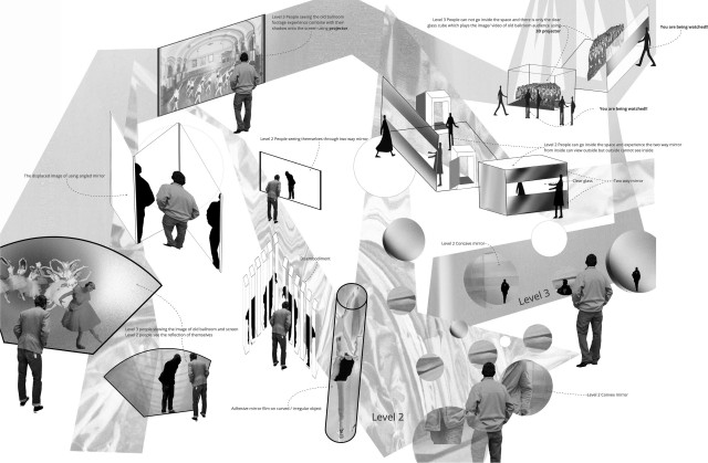 My major research project asks how the experience of spaces within dreams may be used to enrich the design of real interior space? Throughout this year I have investigated the influence of dream in art and design – from surrealism to visions of alternate reality- as well as researching texts of dream interpretation. In particular, the principles of temporal distortion, displacement, condensation, mirroring and perceptual distortions are key methods that I have experimented with to evoke dream space in my project. The notion of the Uncanny, the eerie feeling of the familiar and strange that we experience in waking life is an atmosphere that I am also interested to explore in my design work.
