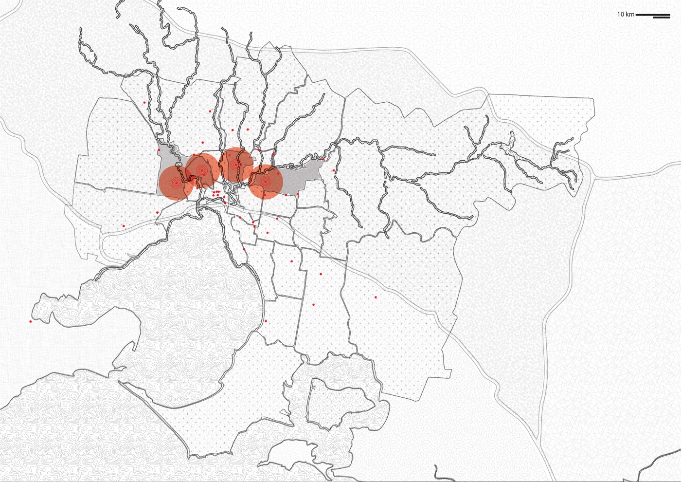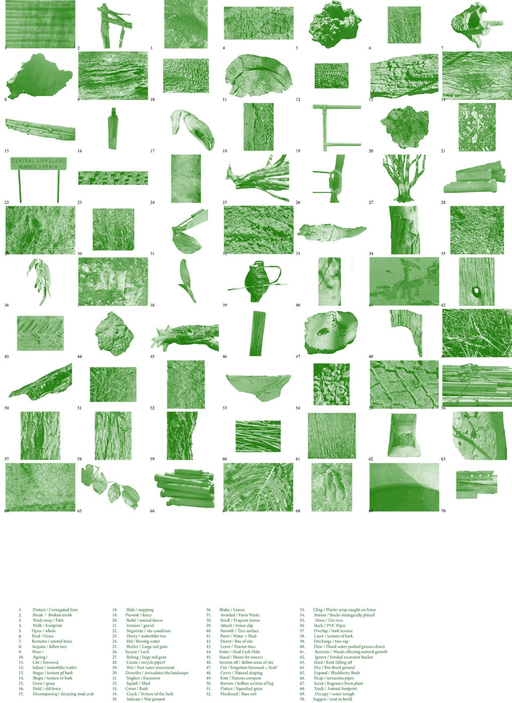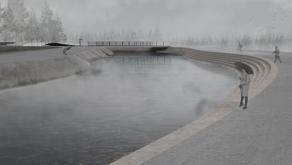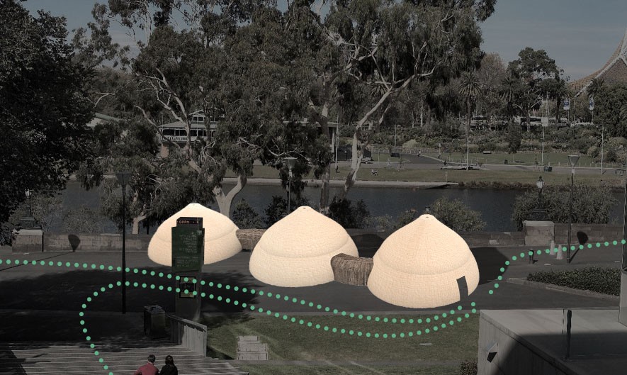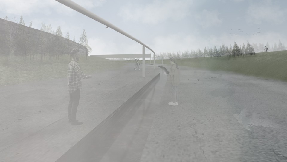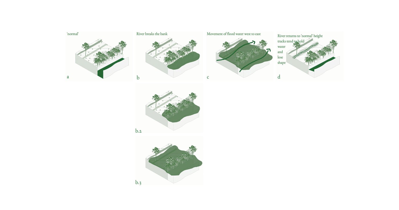 Before colonial settlement, the Moonee Ponds Creek was an essential part of the ‘temperate Kakadu’. There was a time when the wetlands and waterways were abundant with life and played a significant role for Aboriginal peoples of the Kulin nation. The creek was essential water, food, and cultural source. However, the swamps, waterholes, rivers, and waterways have been affected through urban development, and their cultural significance has gradually been disregarded. The Moonee Ponds Creek has been seen as an industrial drain and transport corridor. This project explores how the cultural, historical, social, and material form and flow of the Birrarung needs to be attended to and celebrated. The project explores ways of rethinking the urban state of the creek, as a boundary and non-place, through a series of interventions and material gestures that can animate water.