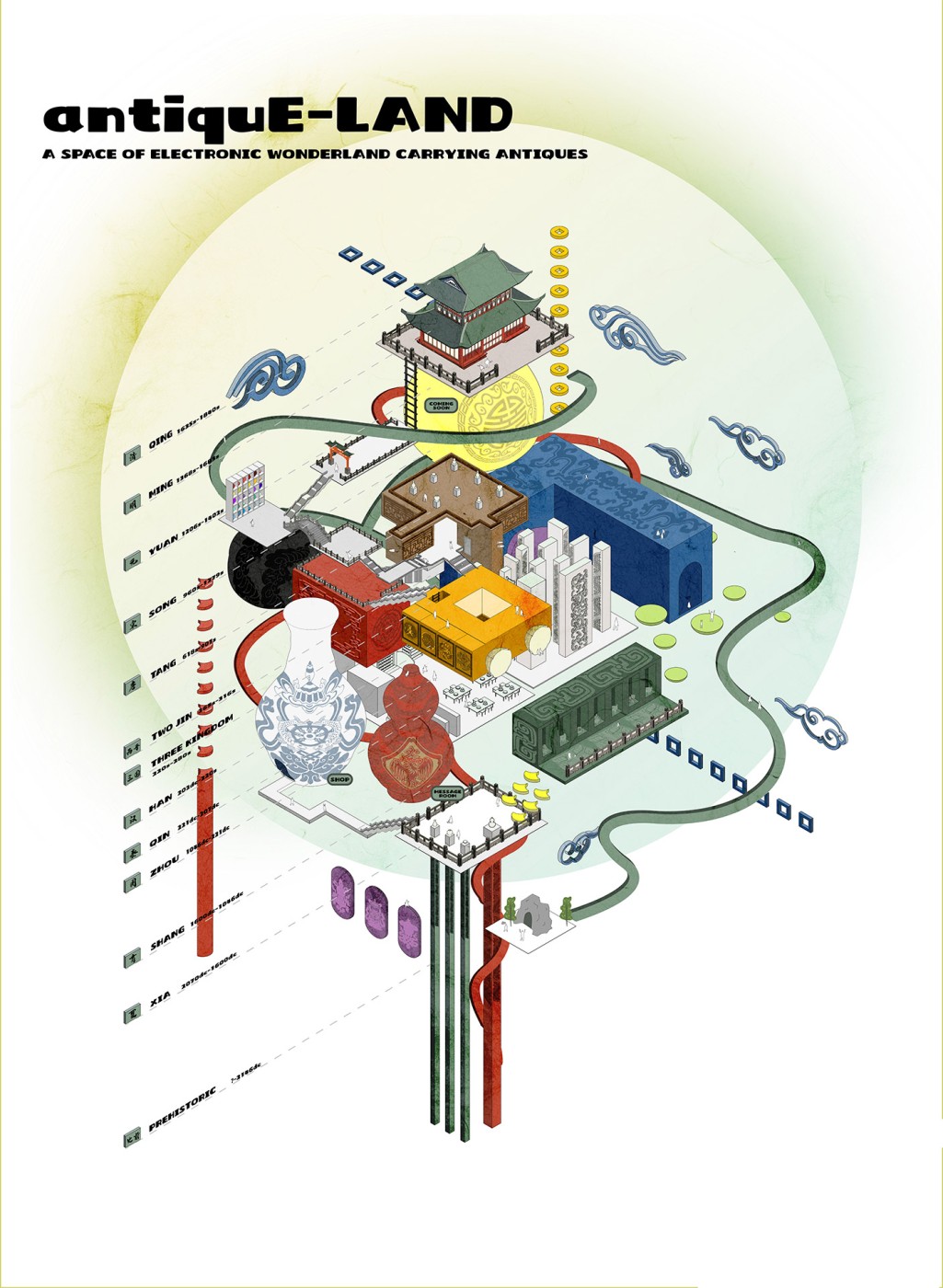 antiquE-Land will showcase treasures from the last five thousand years of Chinese culture. While not possible to cover every detail, the museum will explore typical examples from different dynastic periods. Visitors will be able to learn about antiquities along with four timelines from XIA to the QING dynasty. Through the gamification of the museum, this project aims to give visitors an exciting 3D world to explore while building their knowledge of the pattern, form, colour and scale of Chinese antiques.
