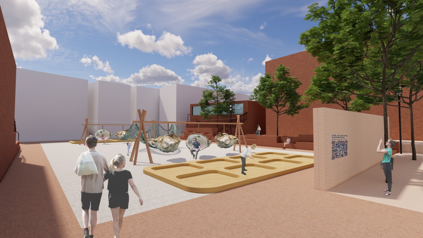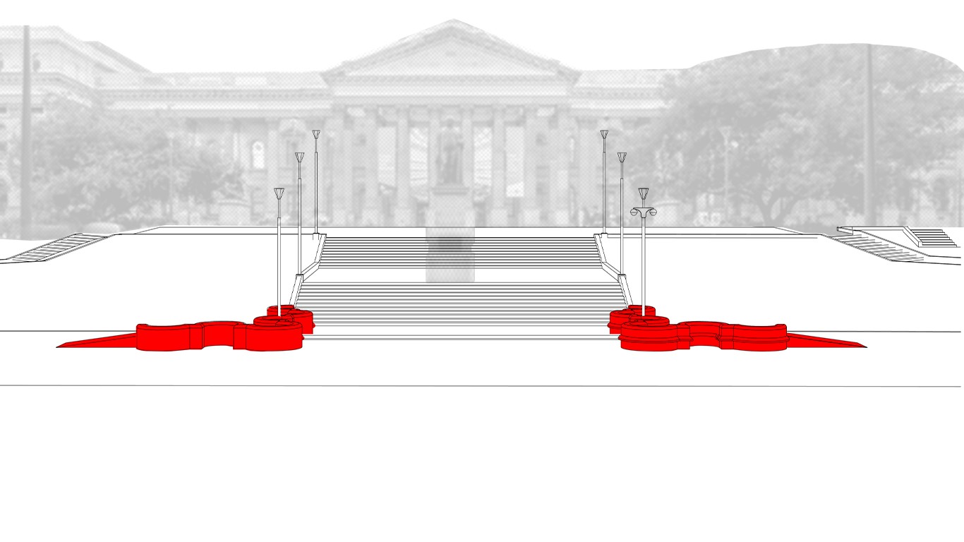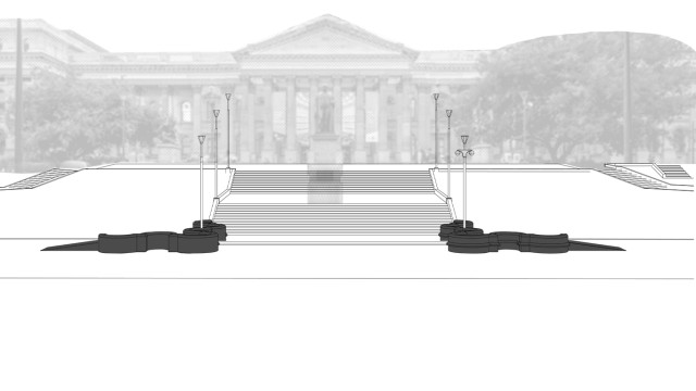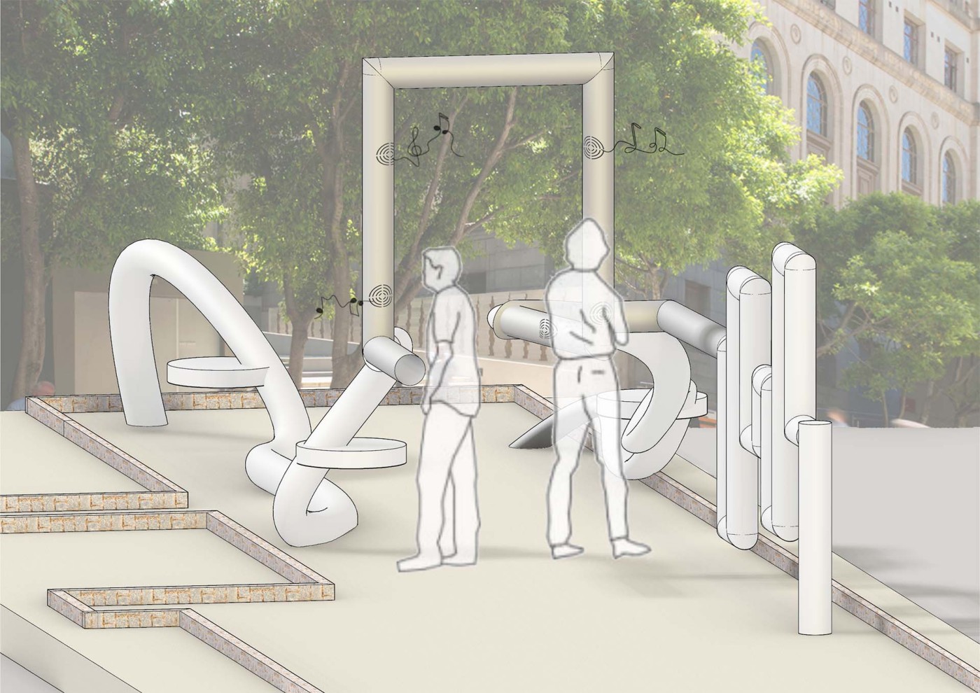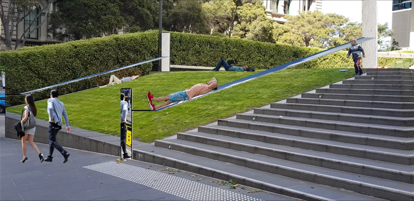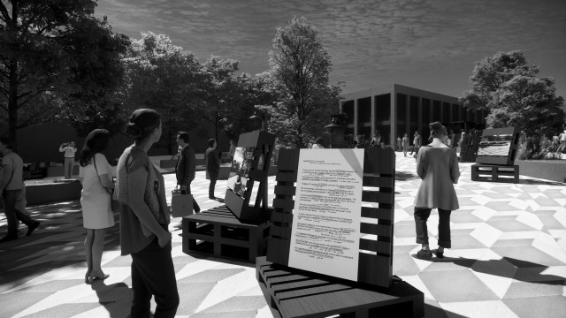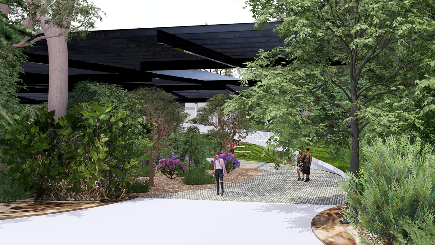 This project has aimed to design a sensorial system that links to a solution for waiting in the large forecourt between the Royal Exhibition Building and Melbourne Museum. Although the design process is developing with the storyline of Victorian people combatting the virus and getting vaccinated, it is a permanent visual and aural intervention into the site. Experimenting with, and responding to different types of waiting, this Major Project integrates into different places, scales, times, adaptations, and uses with two main elements: a sonic installation with sensors and speakers, and framing devices which make people encounter new experiences within the site.
