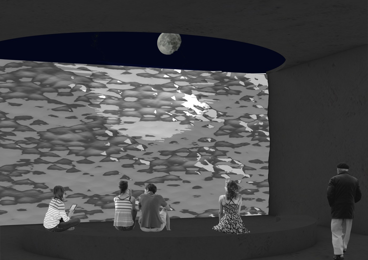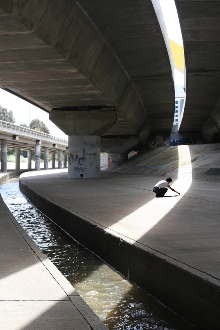 In considering the urban condition of the Moonee Ponds Creek as an interior, the project aims to protect its history by reimagining its future, by making the creek dynamic again, by interweaving and interacting with the ecologies and occupants of the city. Through cinematic techniques and material gestures, the research has developed ways of capturing and framing ephemeral conditions such as water, light, shadow, reflection, and mist. By employing these techniques, the project rethinks the creek as a threshold where its boundaries and surfaces could be activated to become a vibrant situation for the surrounding community.