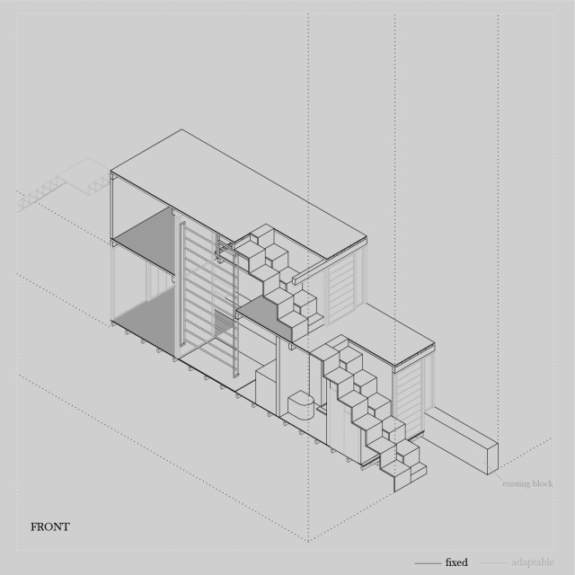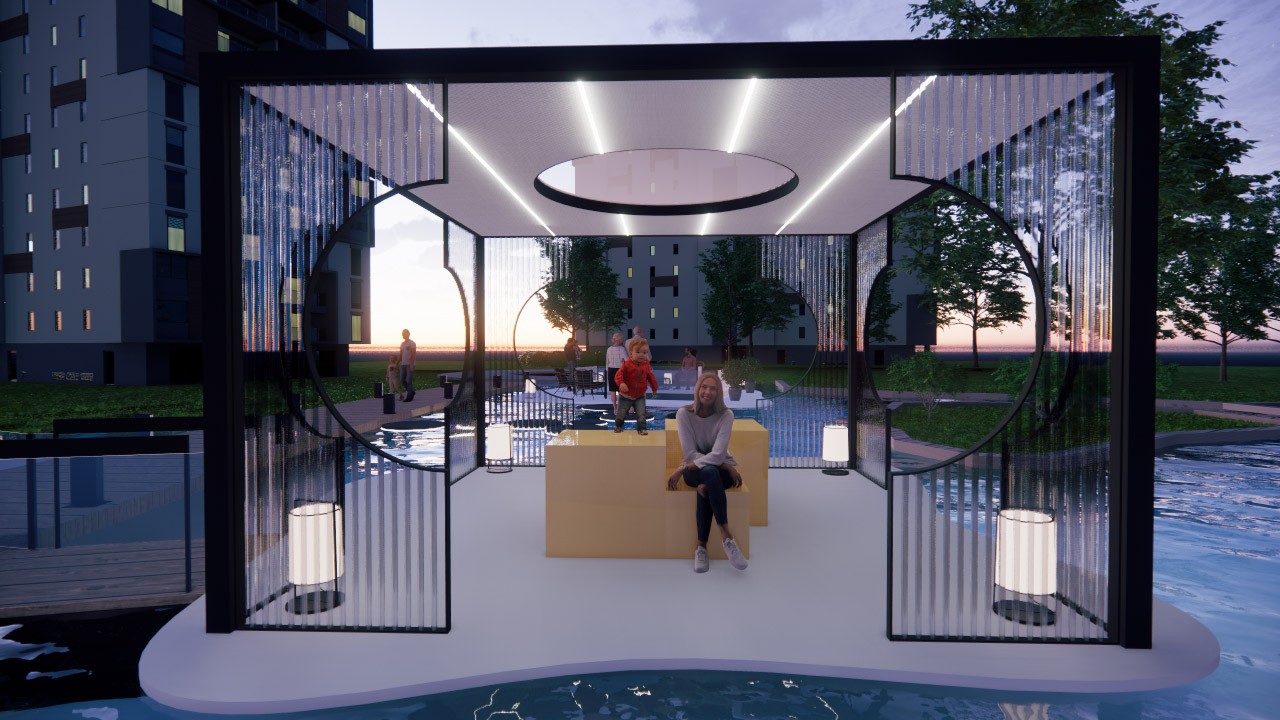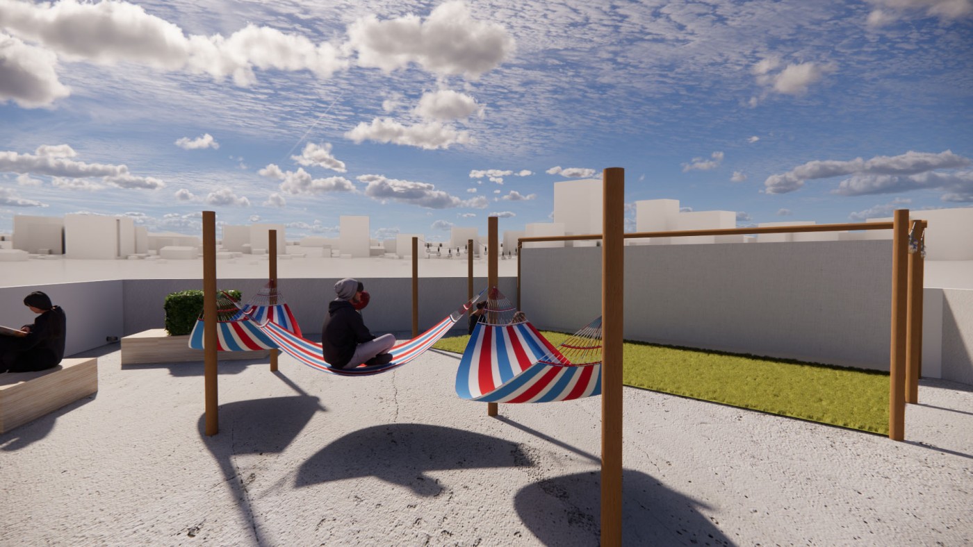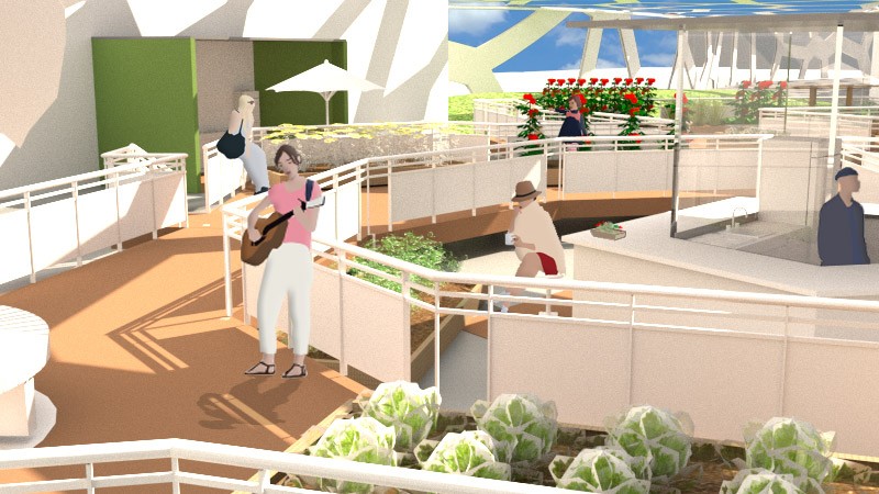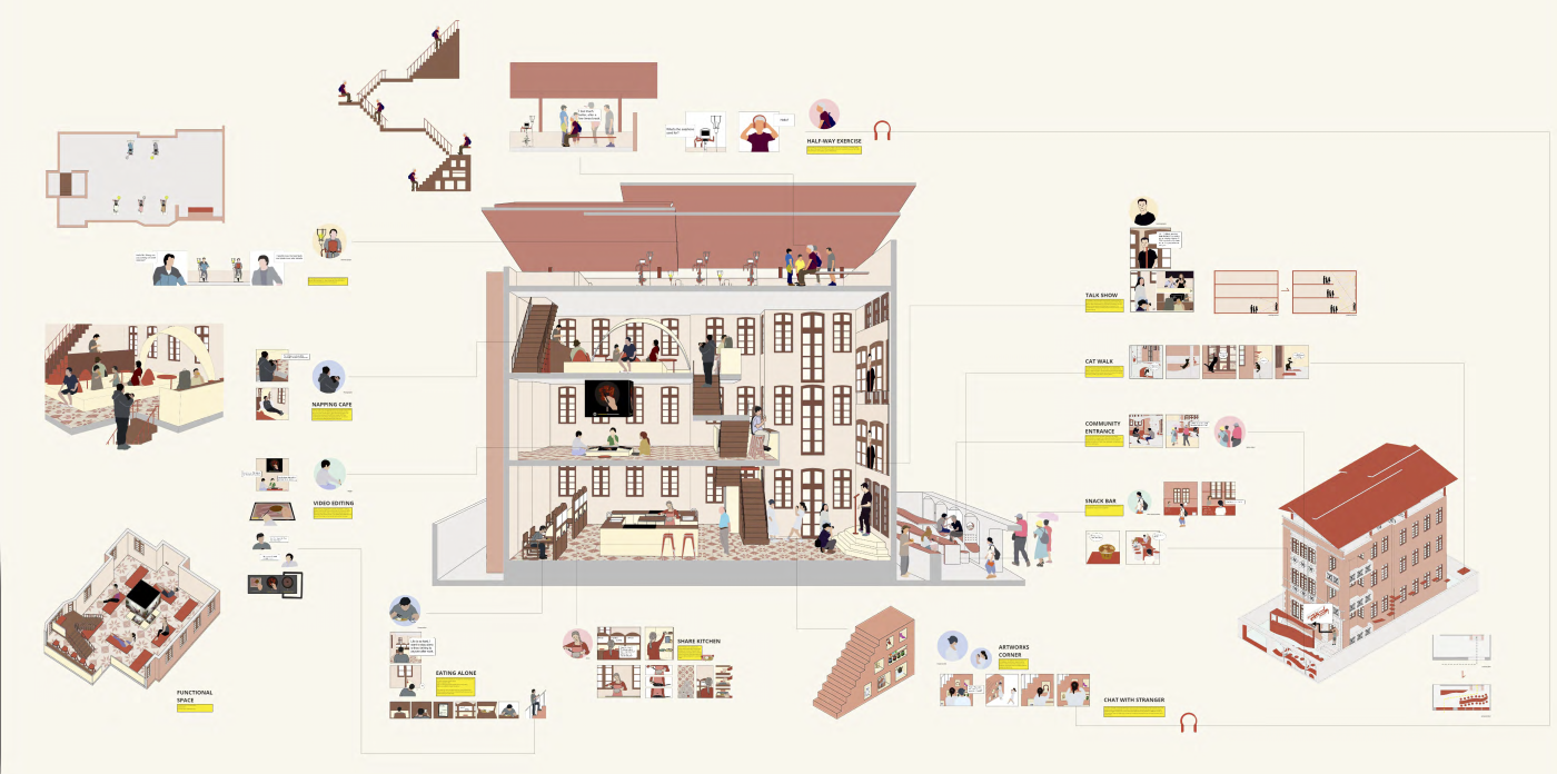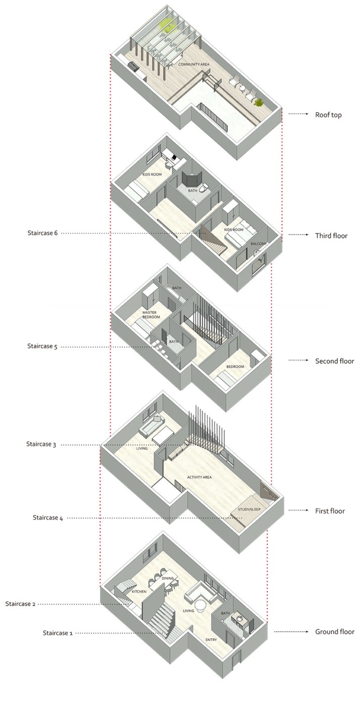 The focus of the Urban 'House' is to create a sense of neighborhood living community on (beside) my apartment. A proposed activation space for the future city is developed by designing common areas that provide a "comfortable home" - environment for residents to live, play and interact.