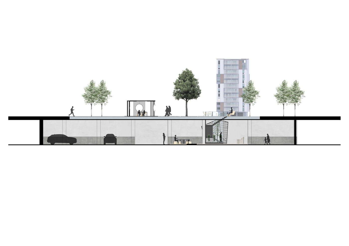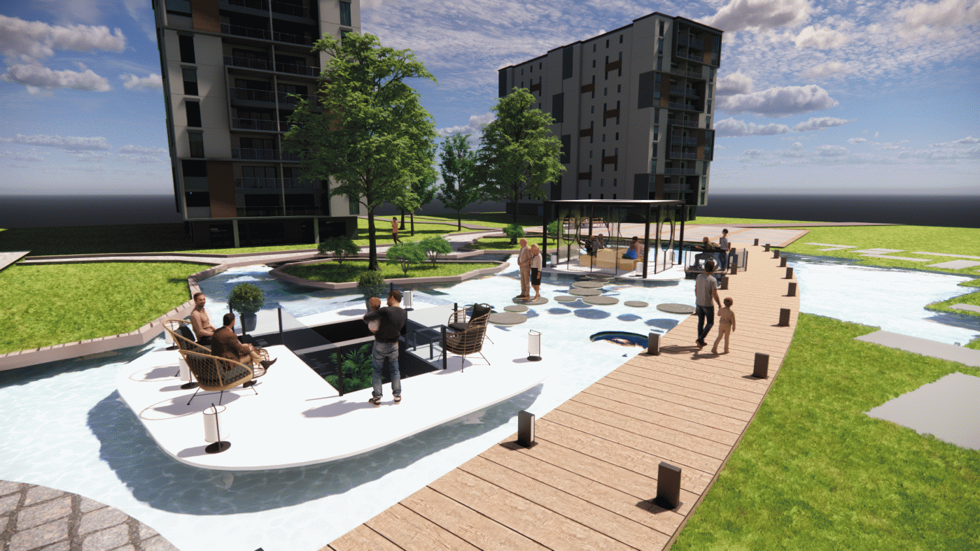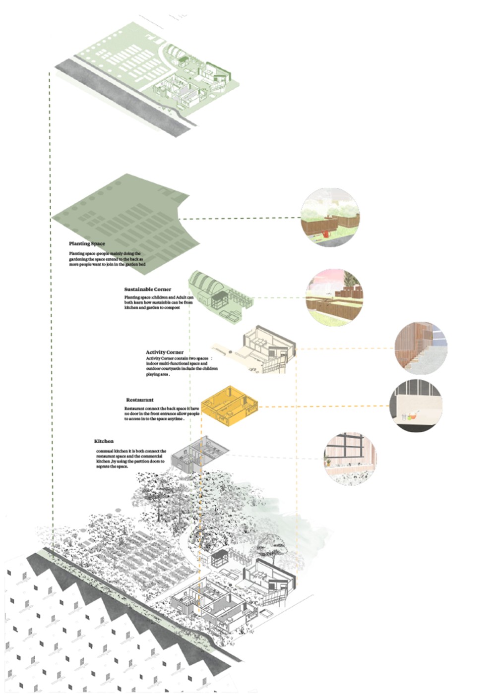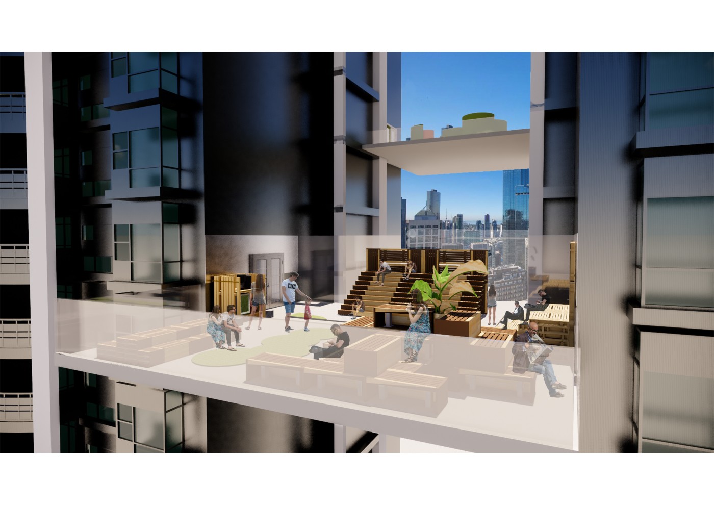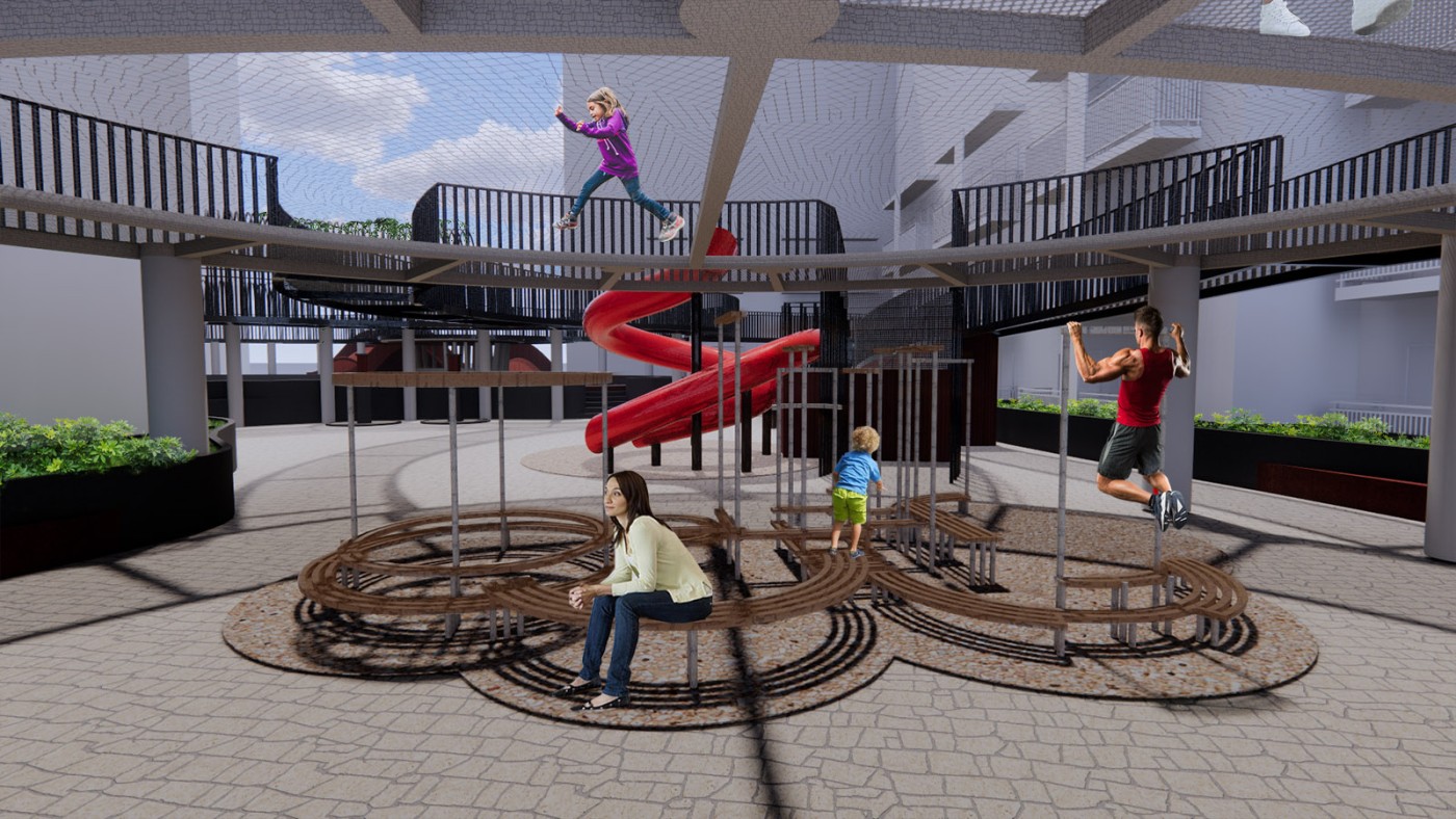 The focus of the Urban 'House' is to create a sense of neighborhood living community on (beside) my apartment. A proposed activation space for the future city is developed by designing common areas that provide a "comfortable home" - environment for residents to live, play and interact.