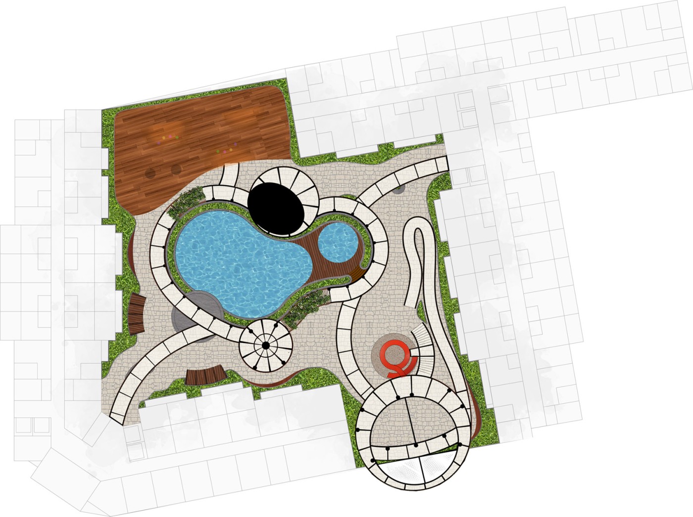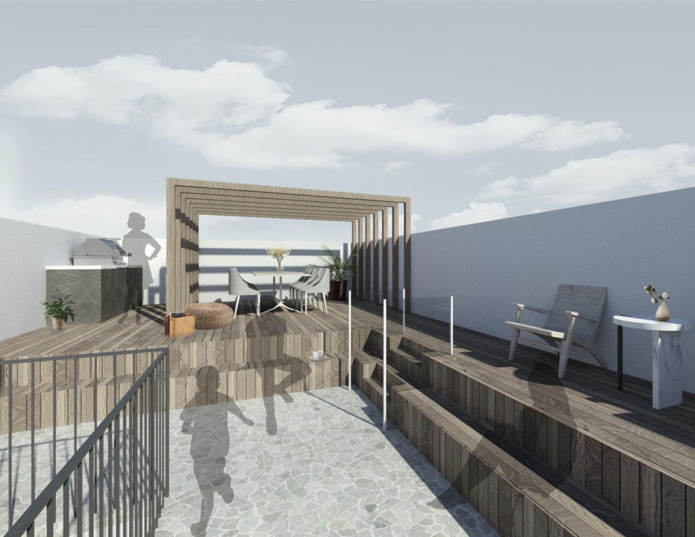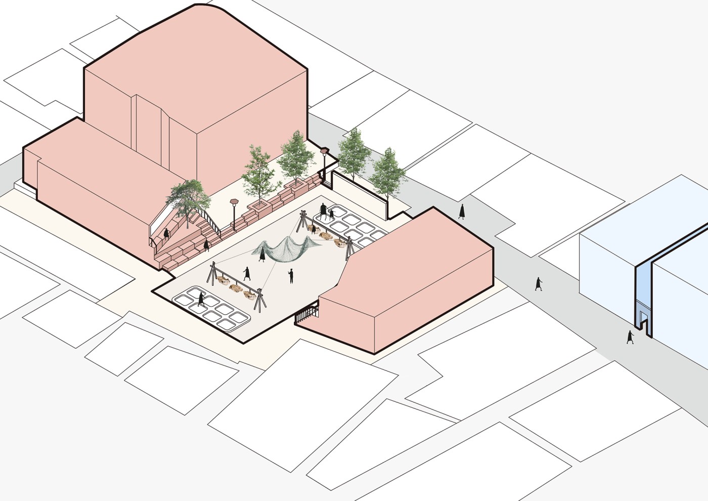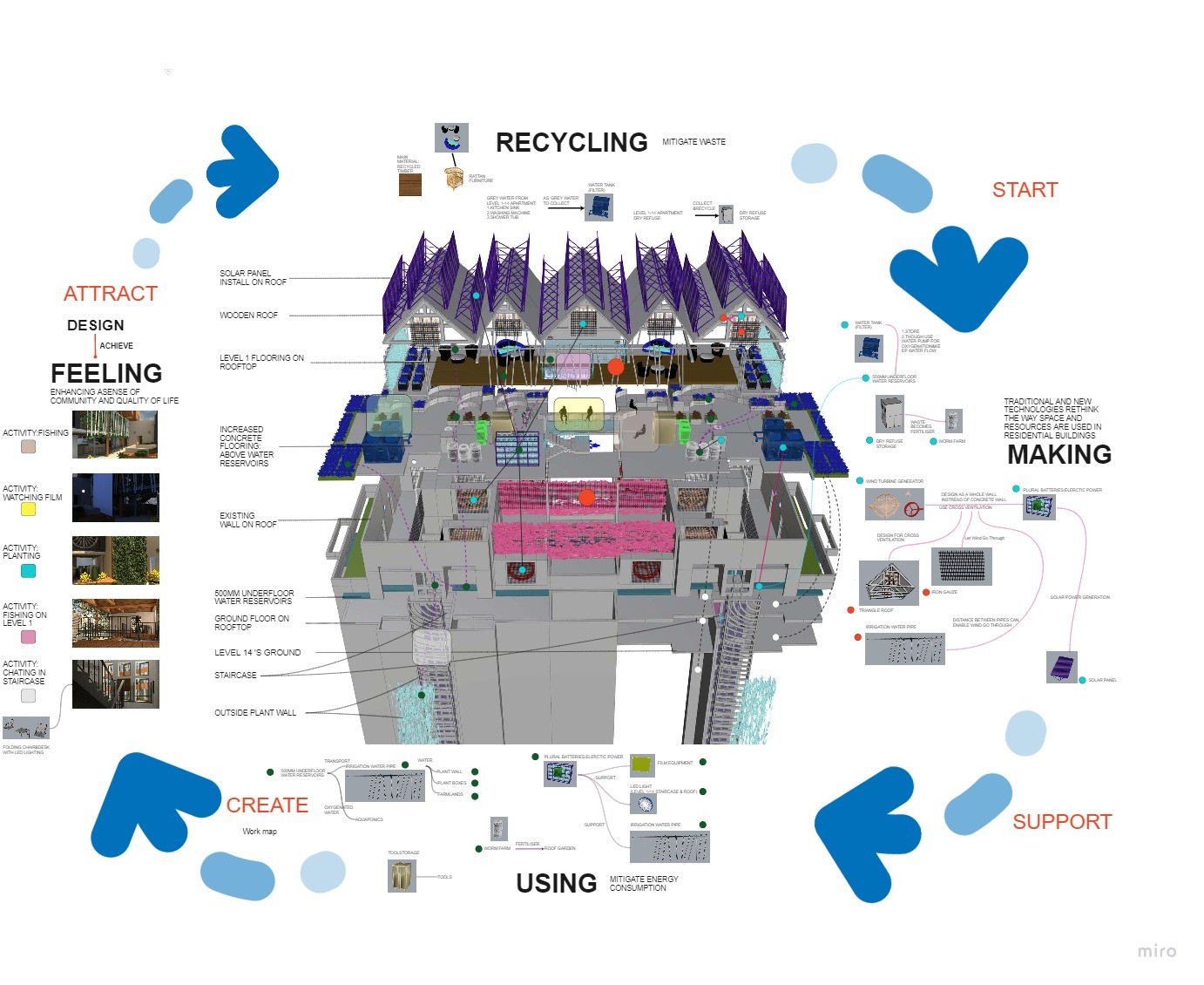 The focus of the Urban 'House' is to create a sense of neighborhood living community on (beside) my apartment. A proposed activation space for the future city is developed by designing common areas that provide a "comfortable home" - environment for residents to live, play and interact.