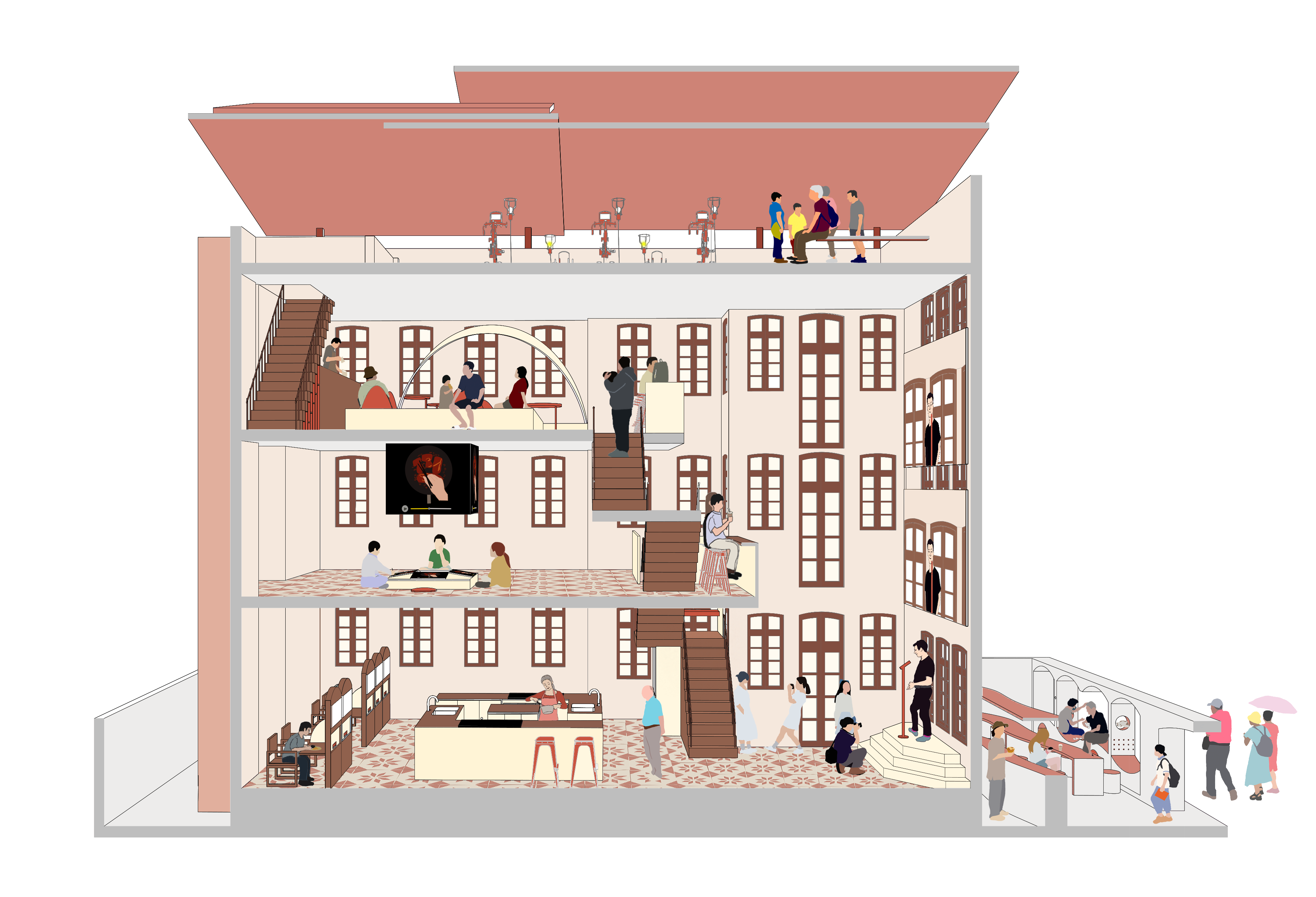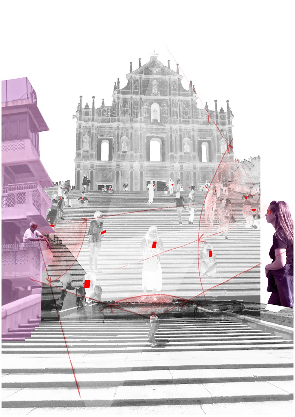 Situated in the burnt Ruins of St. Paul in Macau, this project intends to engage the visitor by reconnecting them with the forgotten histories of the ruin and its present-day situation. By educating a young generation of locals, tourists, and the residents of Macau, the ruins histories become part of a series of immersive archival experiences, activated through the screen as the visitor journeys through the site.