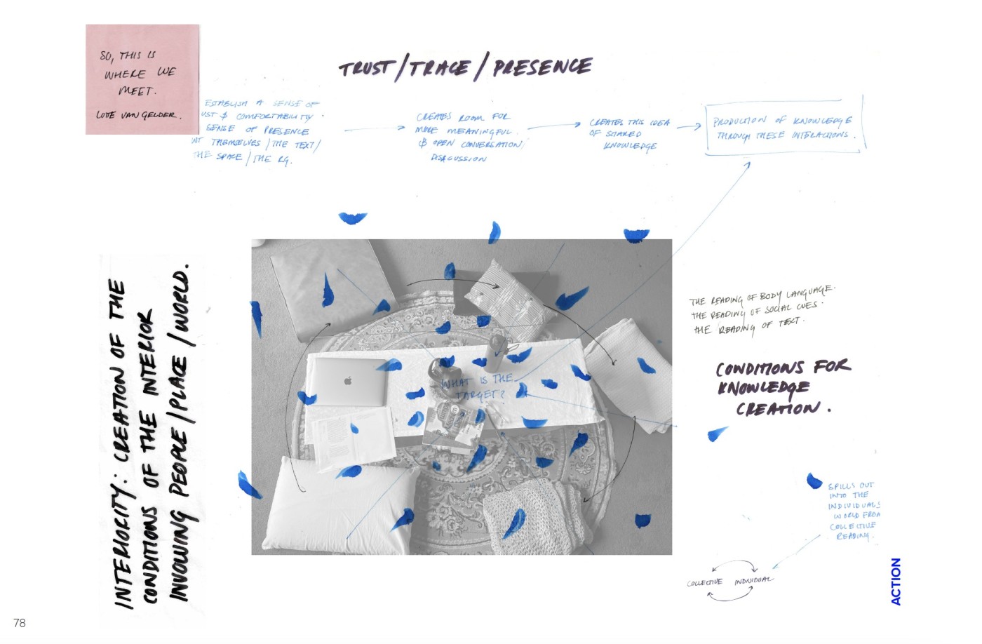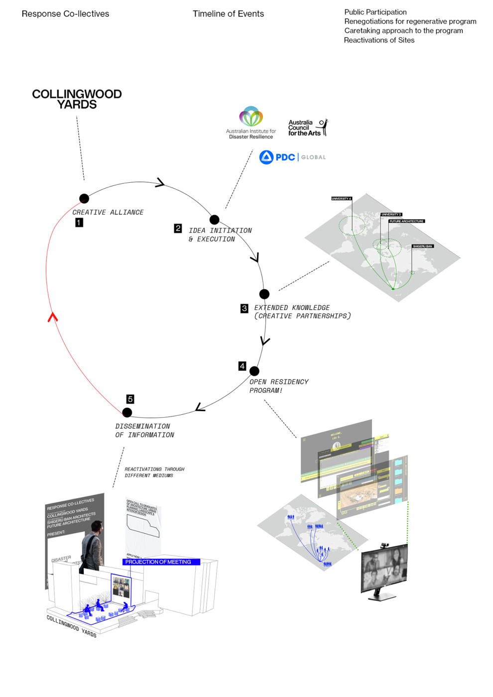 when we are_together works within the messiness of cultural production. It offers an open-endedness to the design process which sets in motion a continued dialogue with the community. The research offers ways that the design process can become a dynamic participant in an ongoing negotiation of collective futures. "