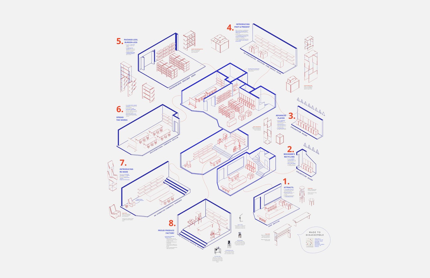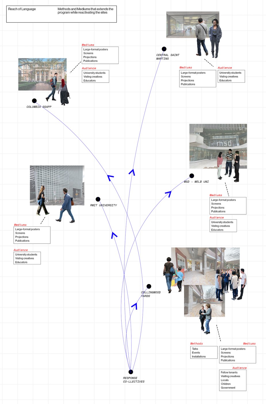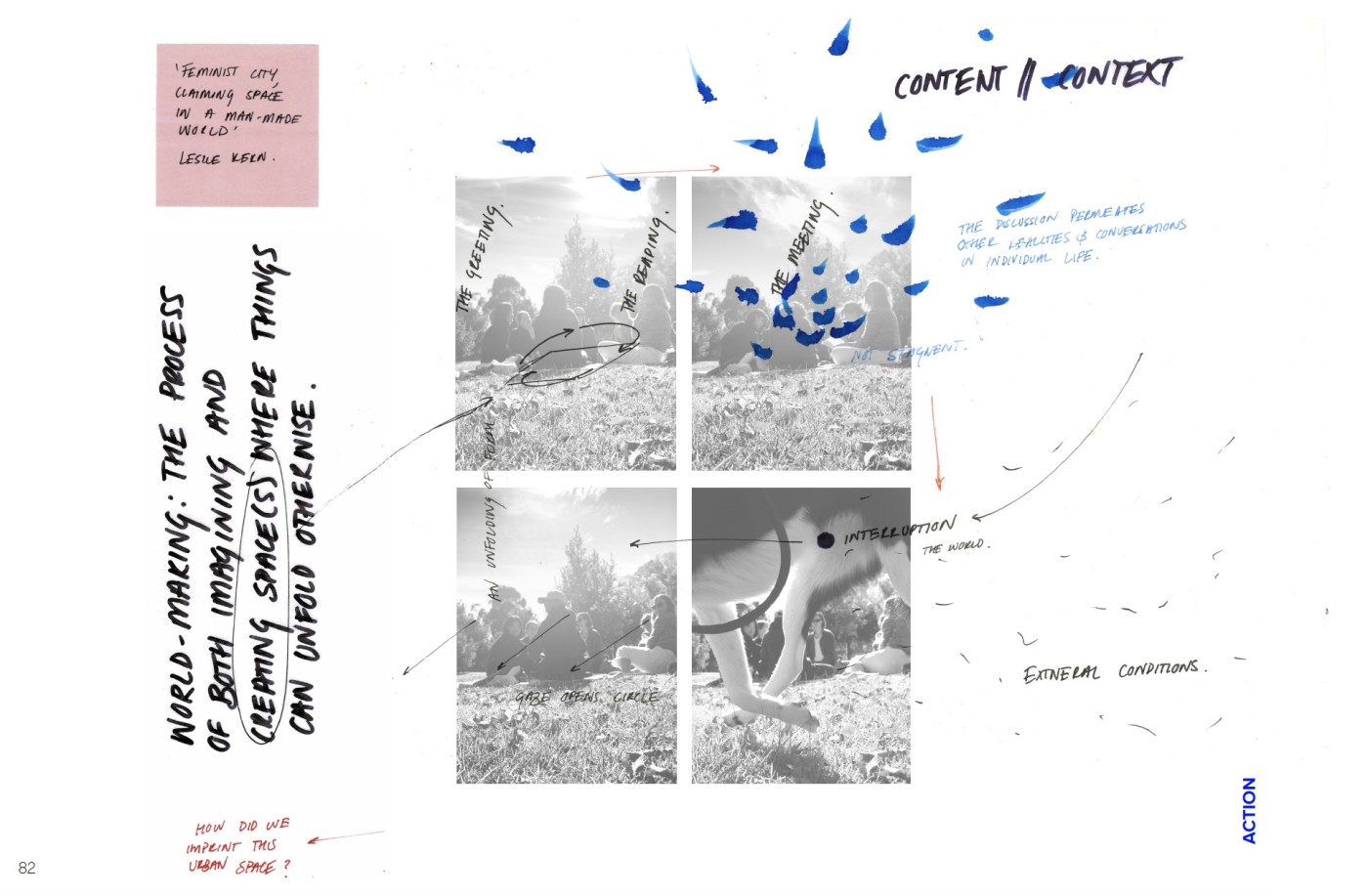 The project develops a network of people and environments, with the designer as the organiser. Attempting to enable collective analysis and discussion by organising interactive and participative ways to share and translate information.