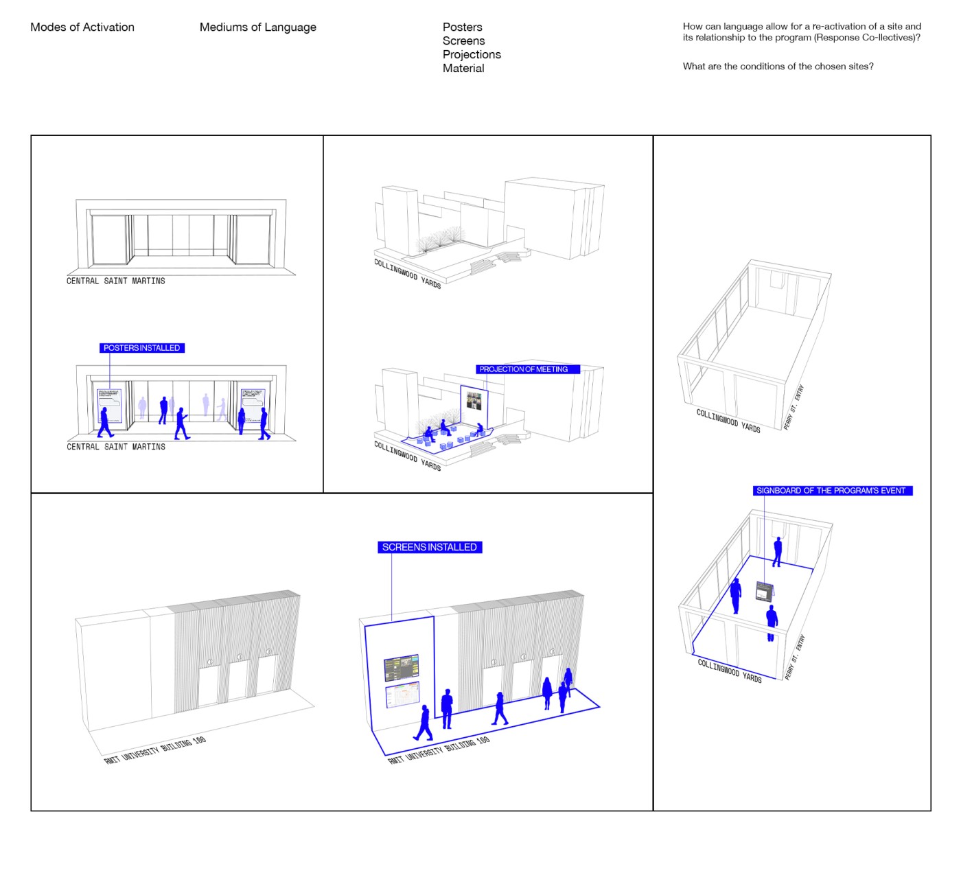 Exploring how varying modes of display become an arena for exchange, this ecology of sites work as a hybrid of virtual and physical events to respond to the immaterial implications upon human behaviour in this time of social, cultural and economic discontinuity. Repositioning the potentiality of interior as not limited to built form but as a condition produced through encounters informed by underlying social and cultural forces in flux.