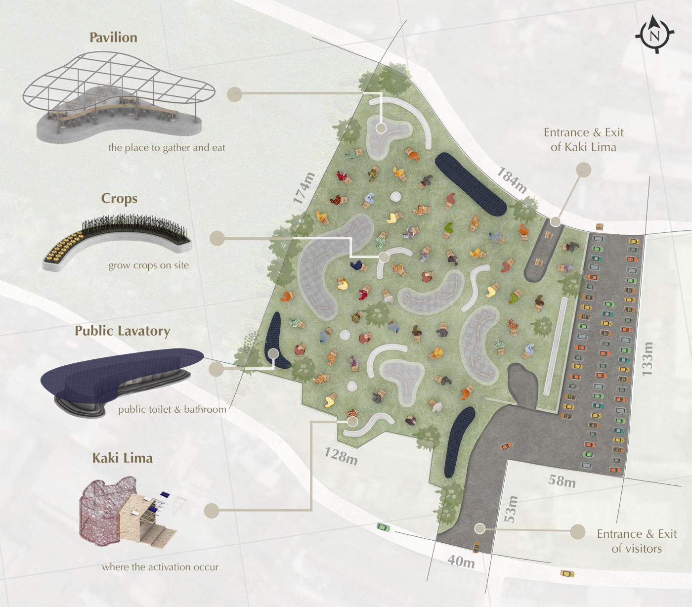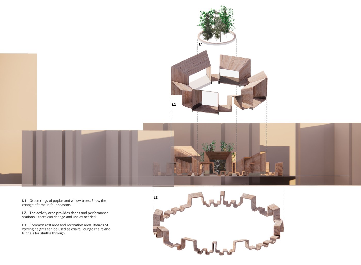 Major cities will grow rapidly in the future, with huge amount of population, and because of this, designers will need to fully use both horizontal and vertical space to design for the city. This major research project focuses on the future of urban natural spaces, creating authentic urban nature experiences for the people of tomorrow in the dense cities of the future.