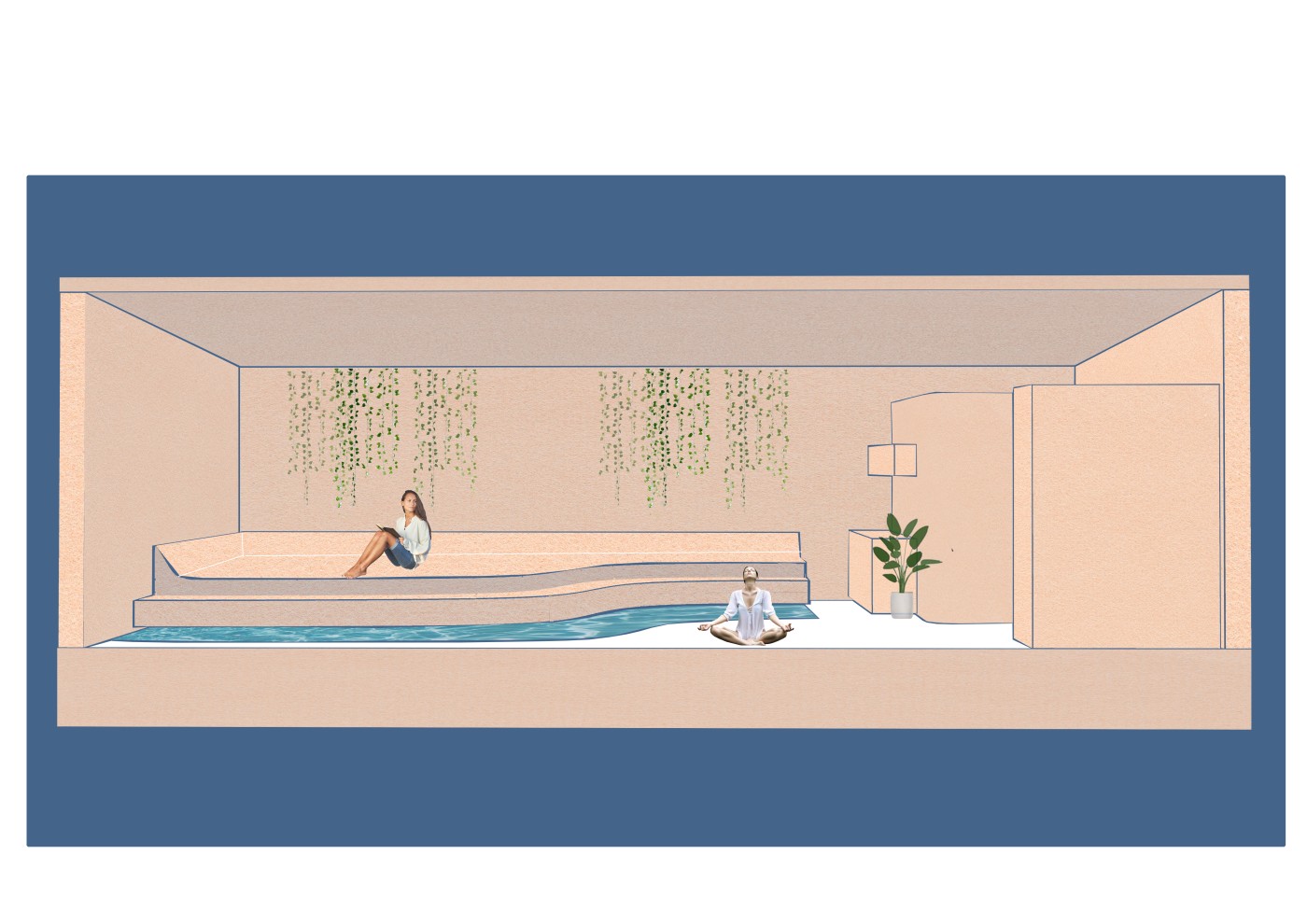 Combining cinematic and biophilic design aspects have led to the exploration of ambient qualities of a space and how these can be recreated. As an audience, the elements of cinema that we connect with are the narratives, the settings, and the feelings. These were the main aspects that were drawn out from the research and the design and used as the focus. Viewing these elements together on the screen creates an experience within the minds of the audience that can mirror physical transportation, whilst creating a calming and enjoyable atmosphere.