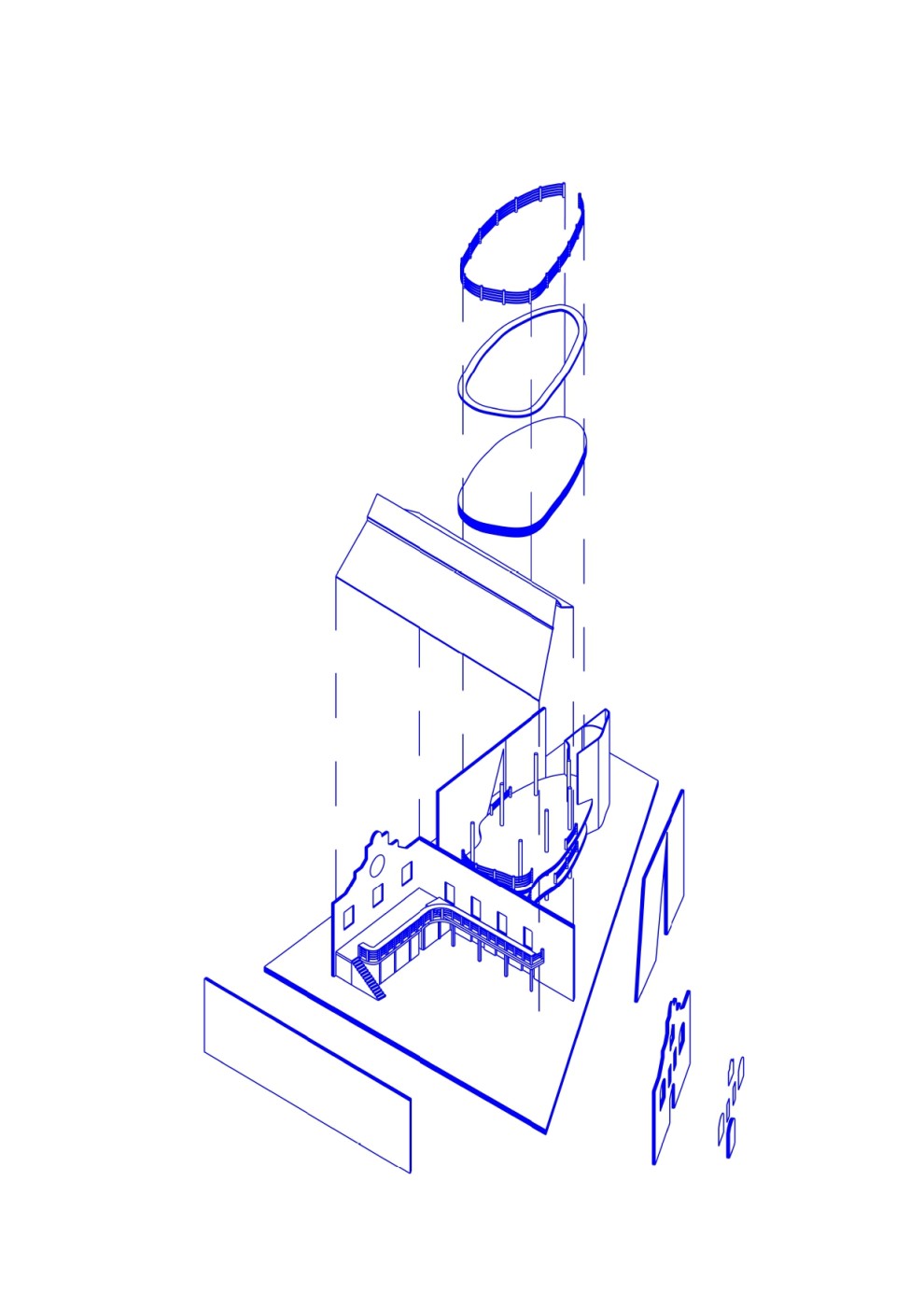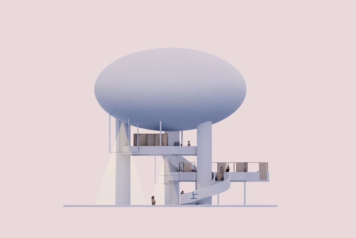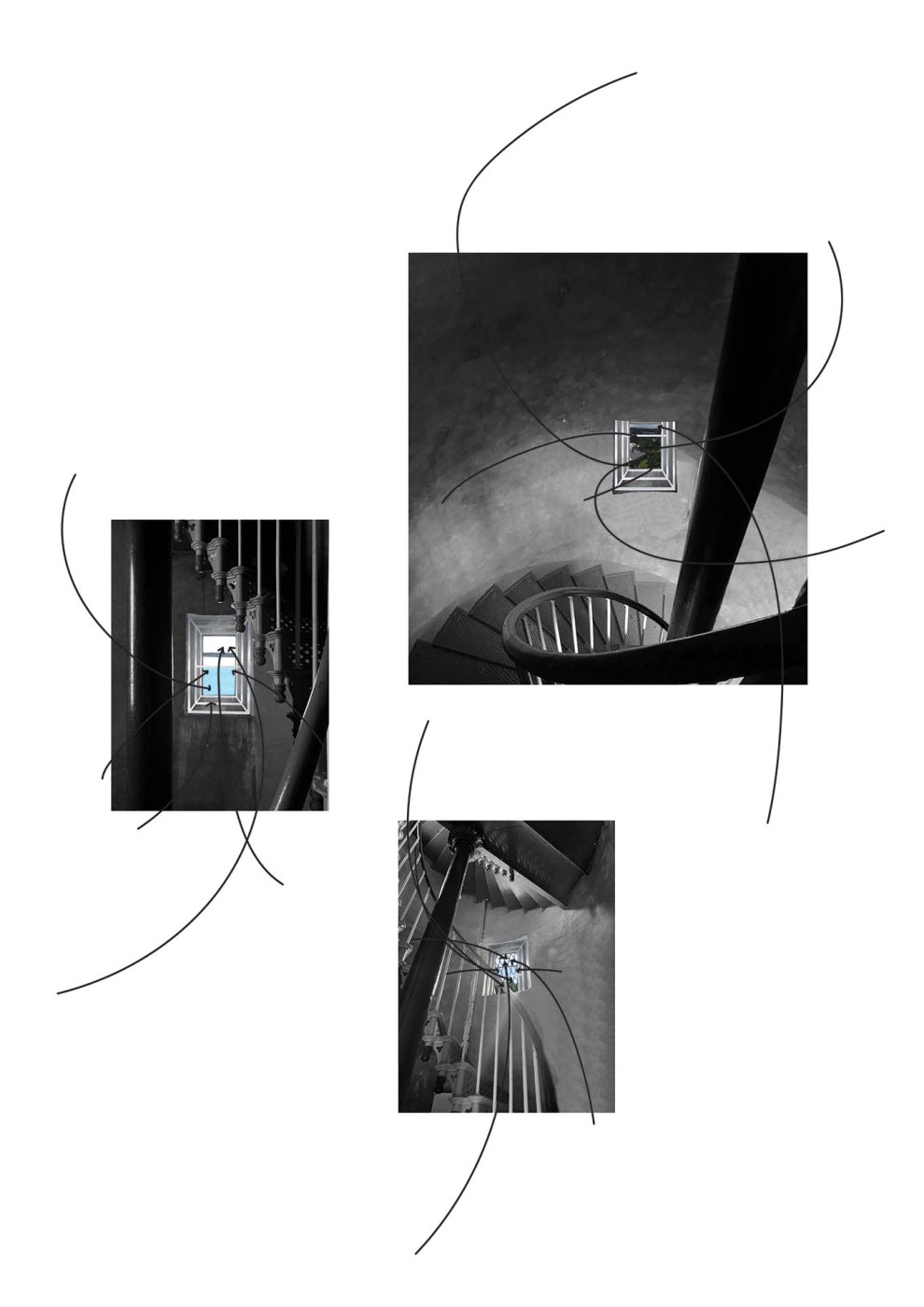 The lighthouse is a colonial tool to communicate and observe the surrounding natural and built environment. Gestural lines will intervene with its viewing platforms, to frame new territories that transform as the body spirals vertically within the structure.