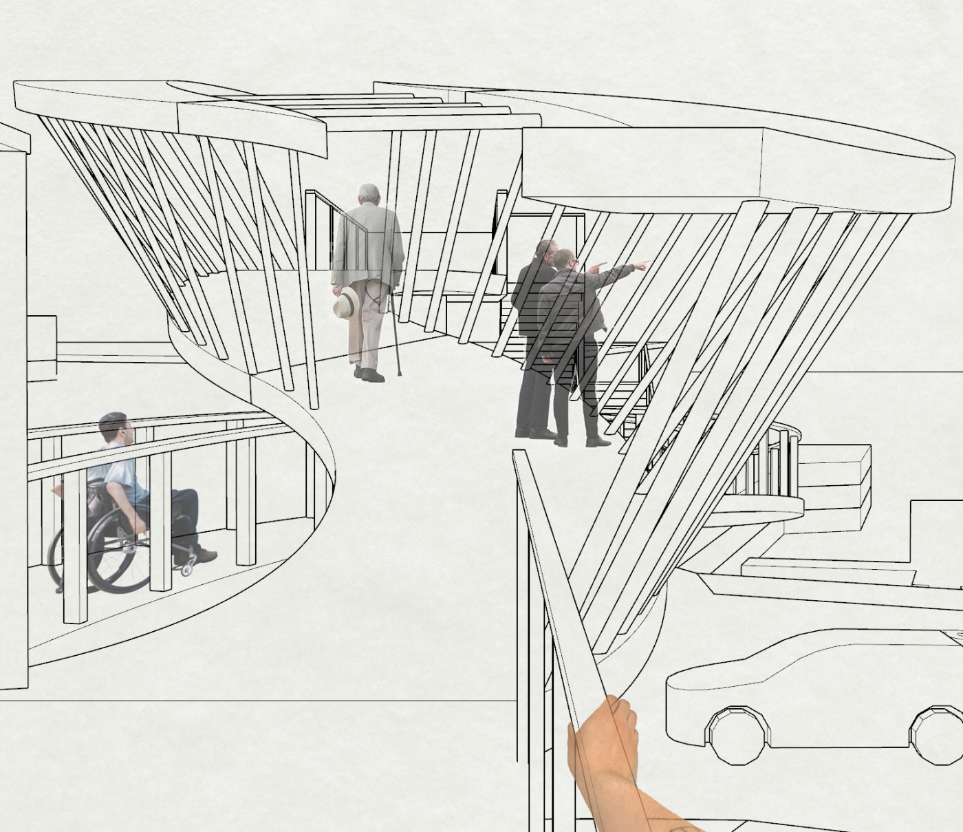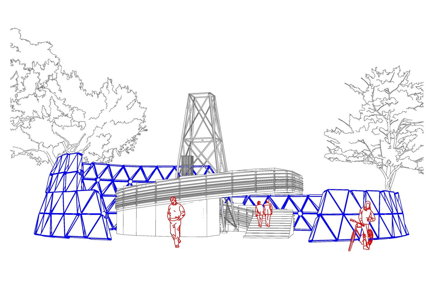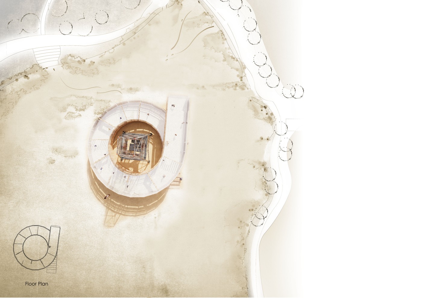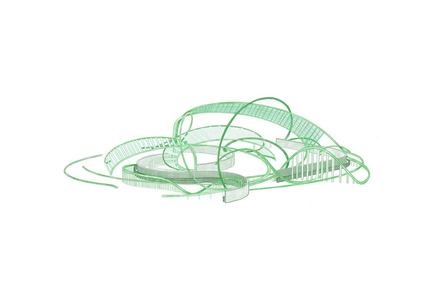 The lighthouse is a colonial tool to communicate and observe the surrounding natural and built environment. Gestural lines will intervene with its viewing platforms, to frame new territories that transform as the body spirals vertically within the structure.