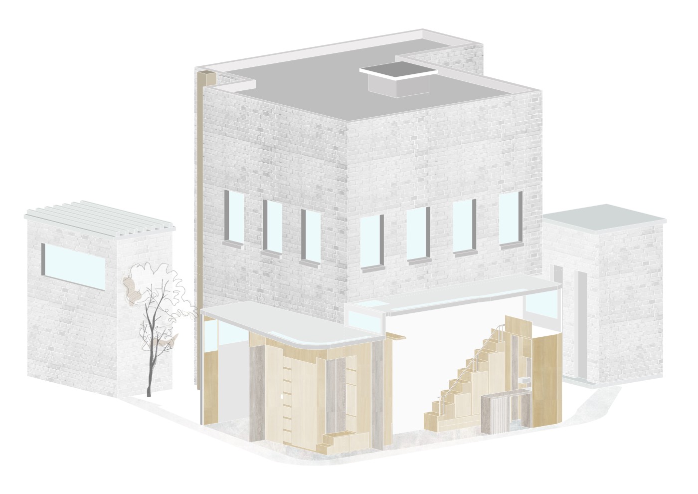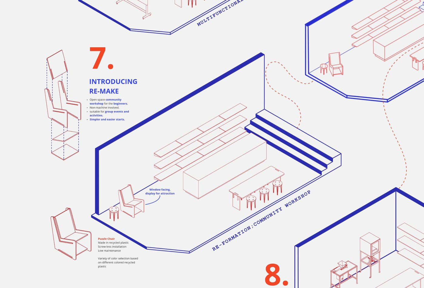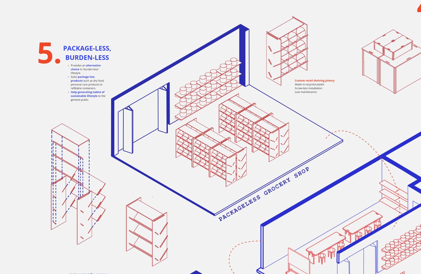 This enquiry unfolds in response to the issue of vacant shopfronts that have emerged since the pandemic by proposing a series of satellite sites for the 2021/22 Mpavilion located beyond Melbourne CBD’s 5km radius. Preservation and transformation of these provisional conditions are tested through various approaches through the assemblage of programmatic concerns, joinery and furniture acting as support structures. Through the distribution of activities and de-centralisation of culture, the project questions how cultural infrastructure can decrease suburban isolation. Foregrounding situations over built form and generating a new becoming of vacancy within their indeterminate in-between.