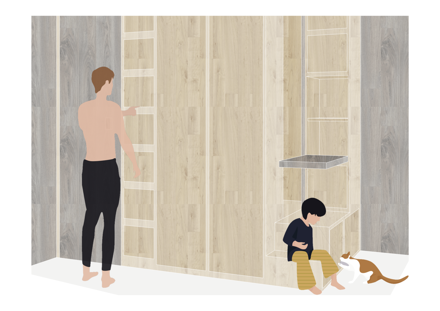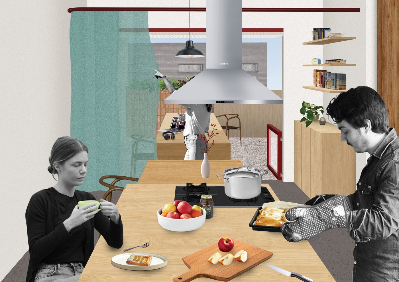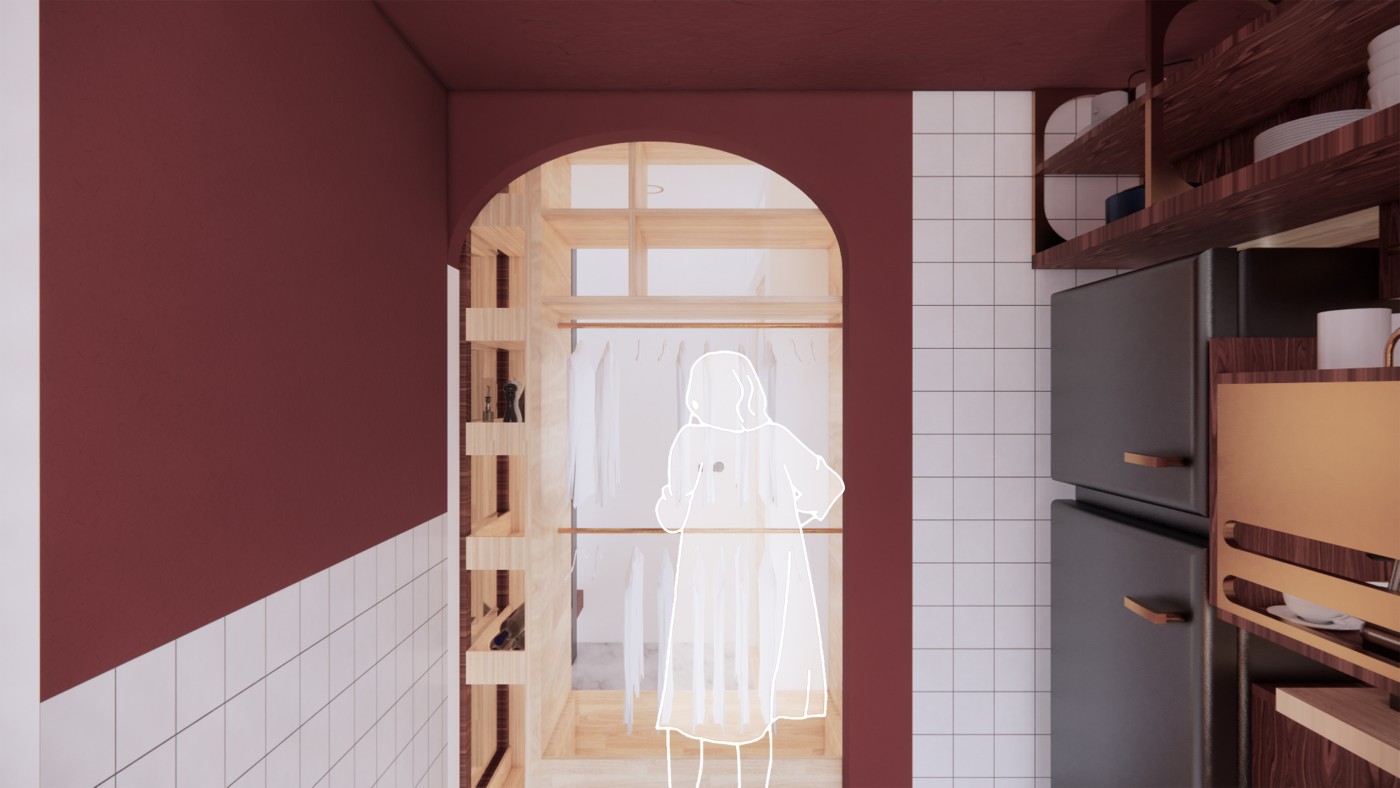 How can a typical Singaporean apartment engage its residents with nature? This initial inquiry broadened through the research to investigate not just how plants can be incorporated into the interior but how humans can engage with green spaces and weather in meaningful and reciprocal ways. In my early project development, I documented the routines of residents in an apartment and redesigned the home by integrating green spaces that could be maintained and cared for through the residents daily routines.