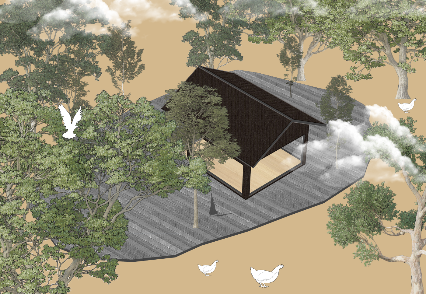 Situating my project within the agricultural landscape, Too (re)wild & (re)connect is a body of work that challenges the traditional visual perception of what constitutes an interior space. Founded on the trepidation that humans and industrial encroachment will continue to remove the natural environment, I have speculated how the co-existence of an agricultural business, the wider community and the natural environment can utilise a resourceful interior simultaneously.