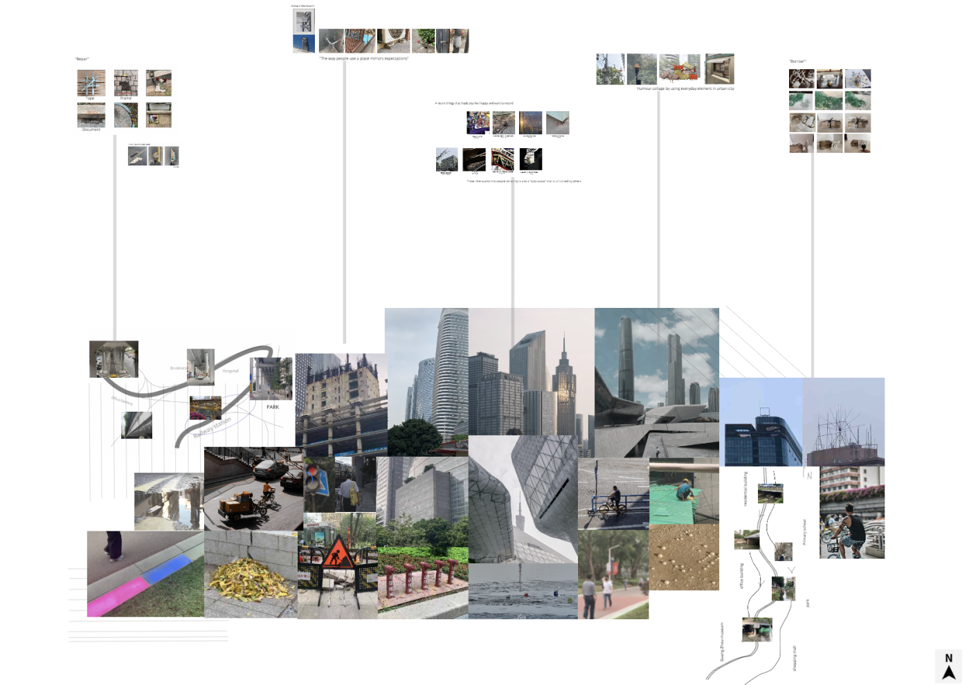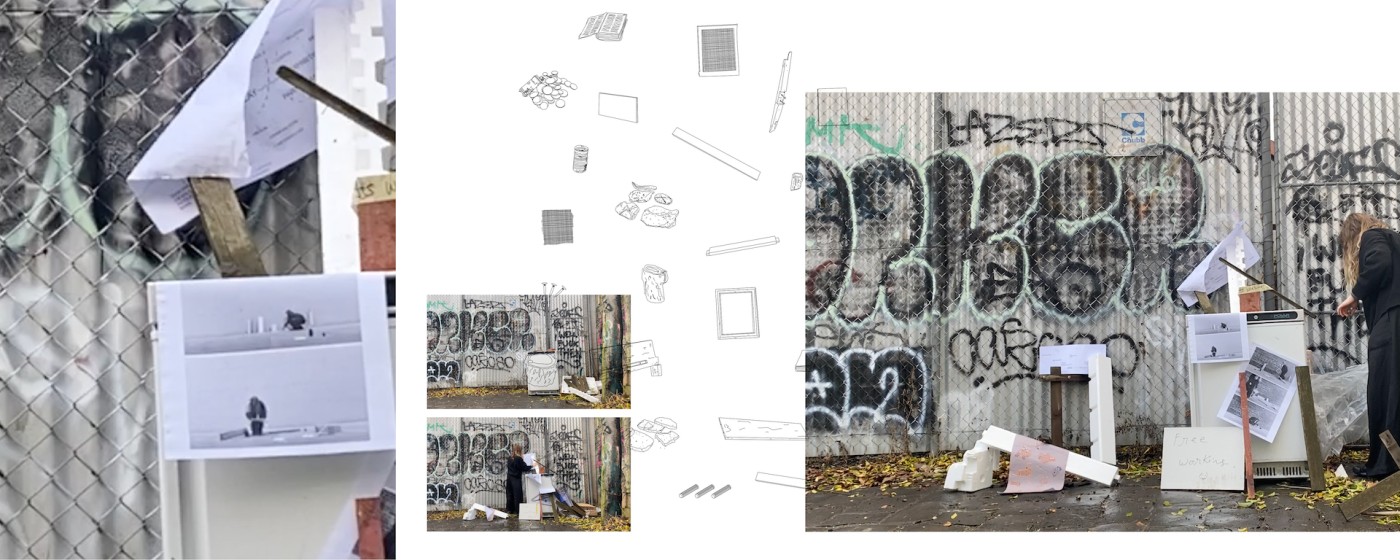 To explore this, processes of framing, arranging, constructing, and deconstructing are used as methods to engage with ownership, control, identity, and community. Through this work, I ask the question how can we use assemblage-making processes as a practice to shift the way in which we inhabit the street?