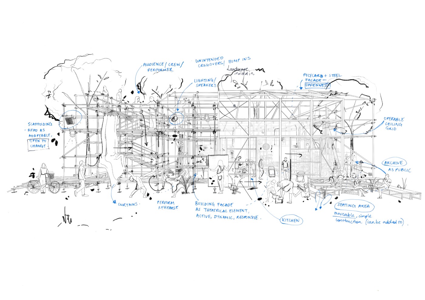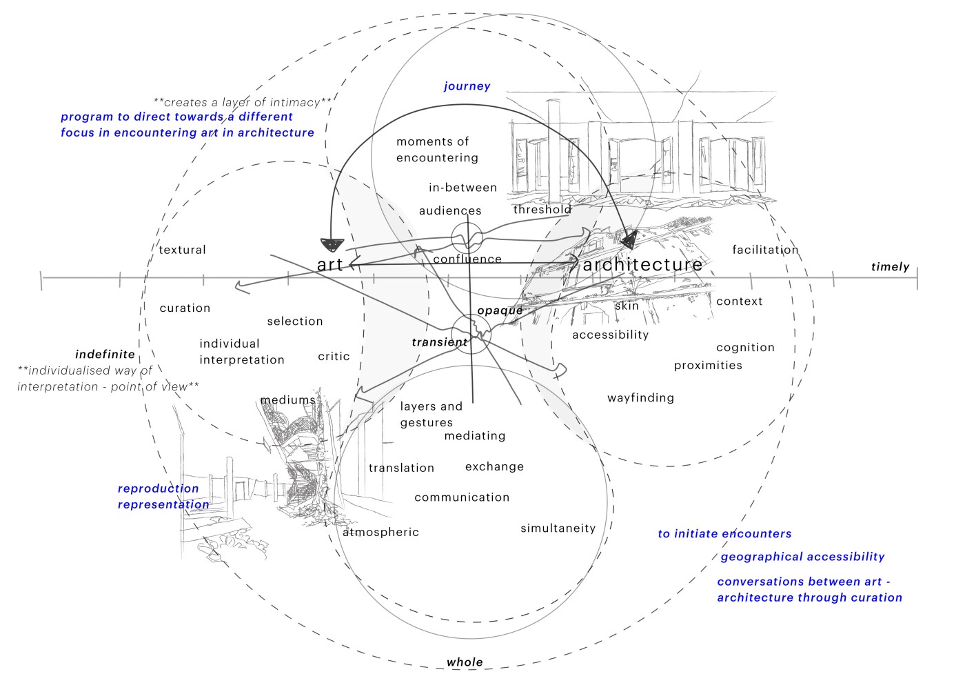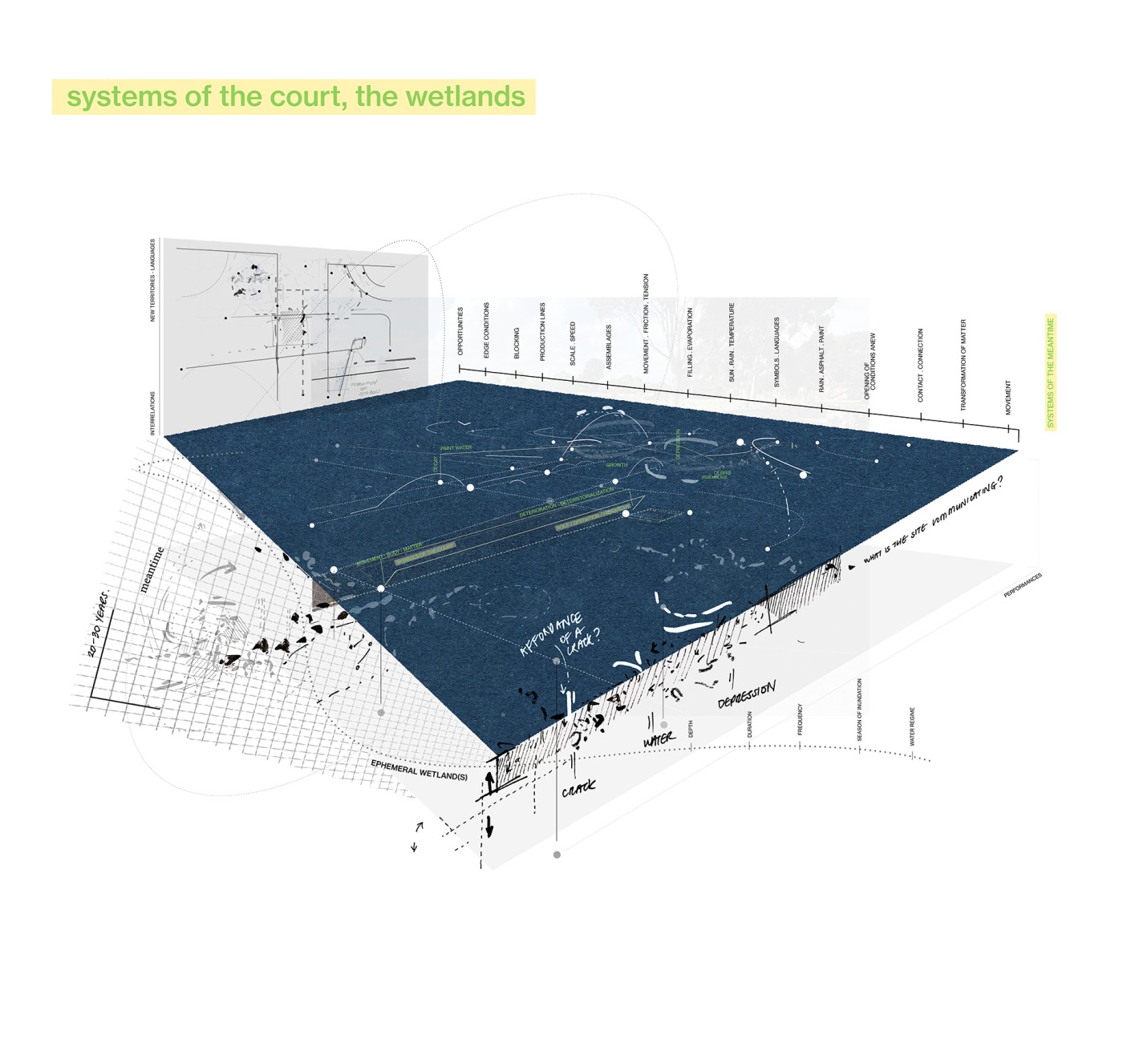 Can an awareness of the certainty of change and the world as a network of intertwined elements encourage design to become fluid to match this change and become a tool rather than a solution? Can the design of transitional spaces play a role in re-situating, reflecting and refreshing of self within one’s communities and networks?