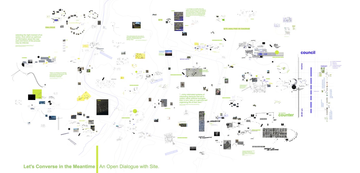 As a society, we have achieved mastery over nature, reducing, transforming and moulding the natural world to our desires. An economic perspective frames the viewpoint of how western cultures envisage the natural world. This has allowed our society to continuously enforce its dominance over our natural surroundings by assuming the exploitation of natural resources and typologies to generate wealth and productive output. Working through my project from an analytical perspective of observation diagramming and mapping, I explored my ideas through detailed and comprehensive site analysis. Through this process, I have considered how nature can be used as infrastructure, including previous observations around the methods of decay and shifting boundaries when thinking about how the different user groups will interact within the space.