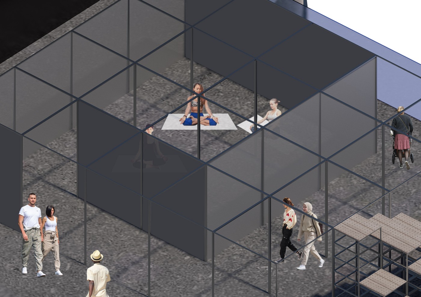 / Can we challenge to configure an extensive experience of our surrounding space with human activities through the application with the use of screens (or technology devices)?