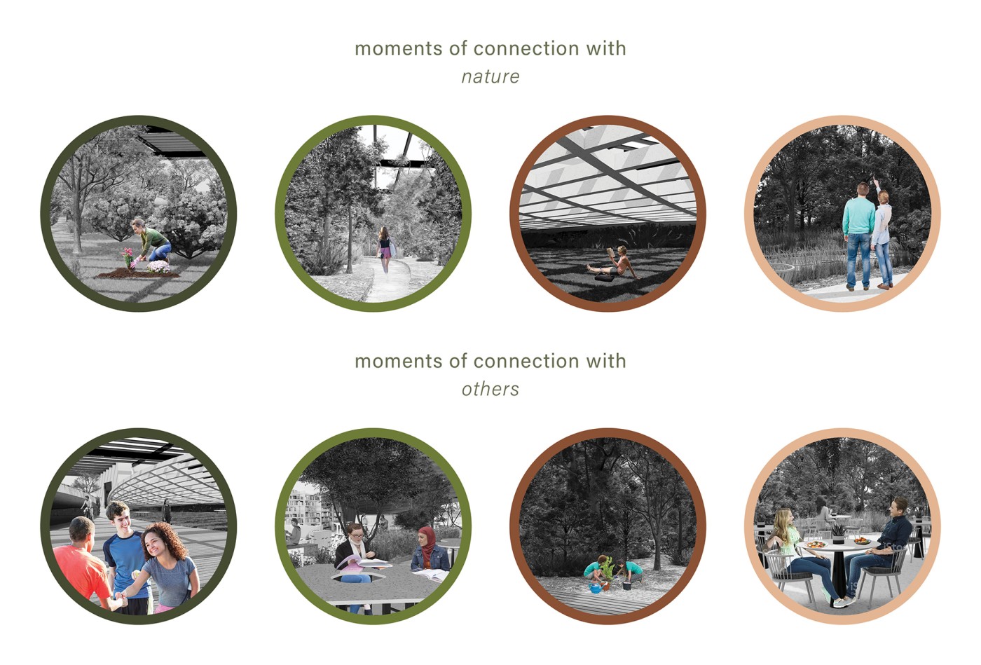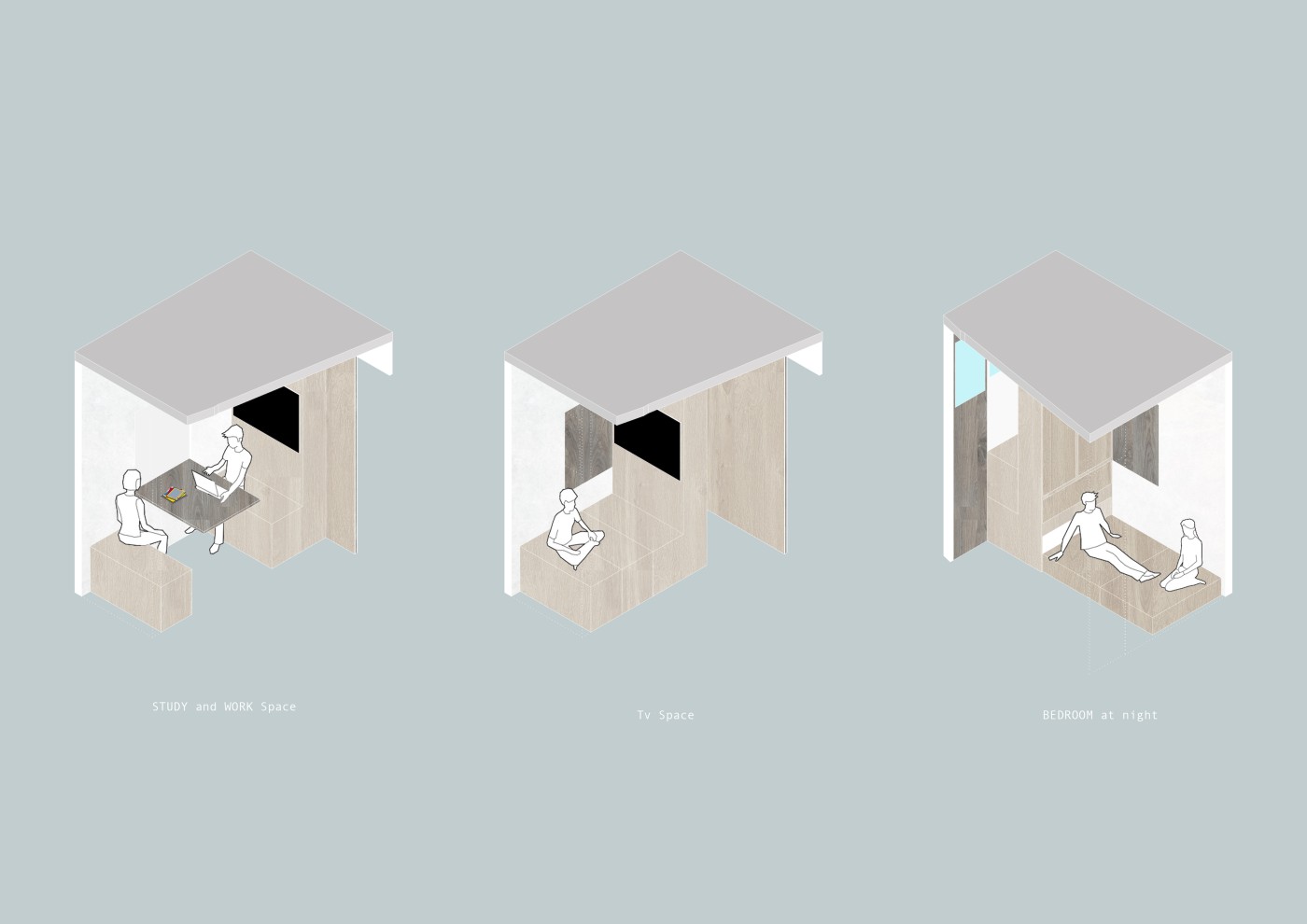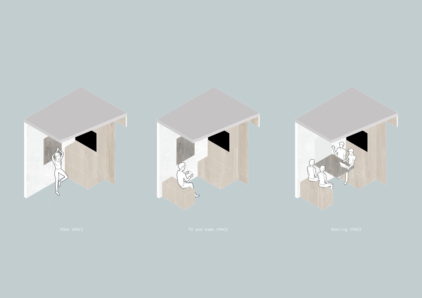 Creating a collective space for living also means an overlaying of different routines and personality types. A survey was conducted and I drew from this three general personalities which i classified as; the achiever, the up-keeper, and the maintainer. By defining the routines of each category, I aim to design by integrating green spaces into an interior to nurture community and improve the residents social interactions and connections to nature.