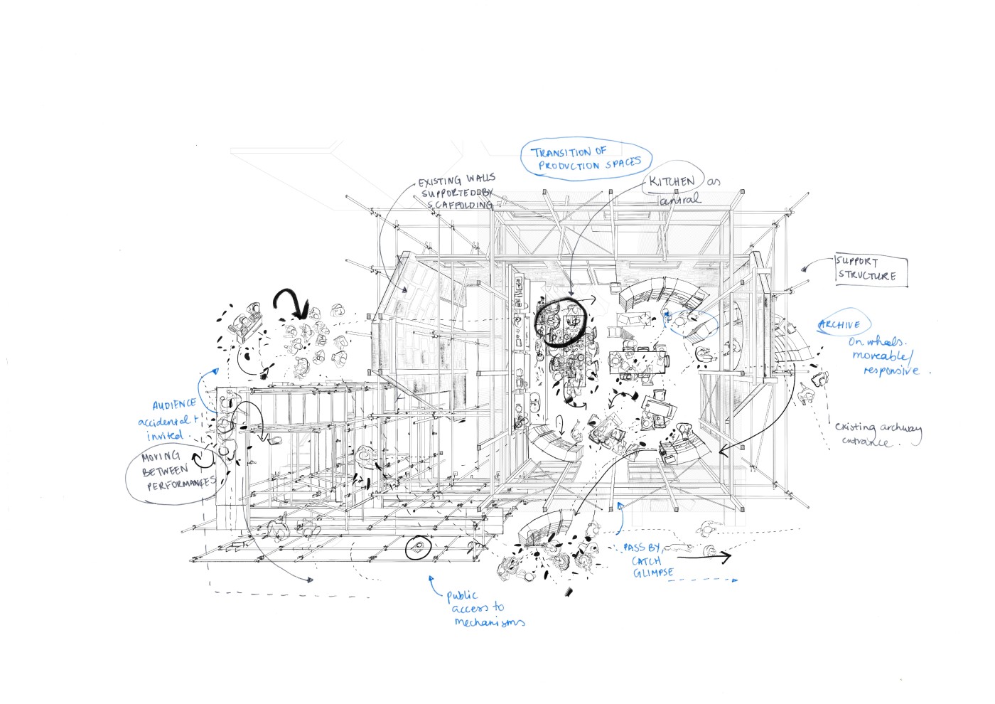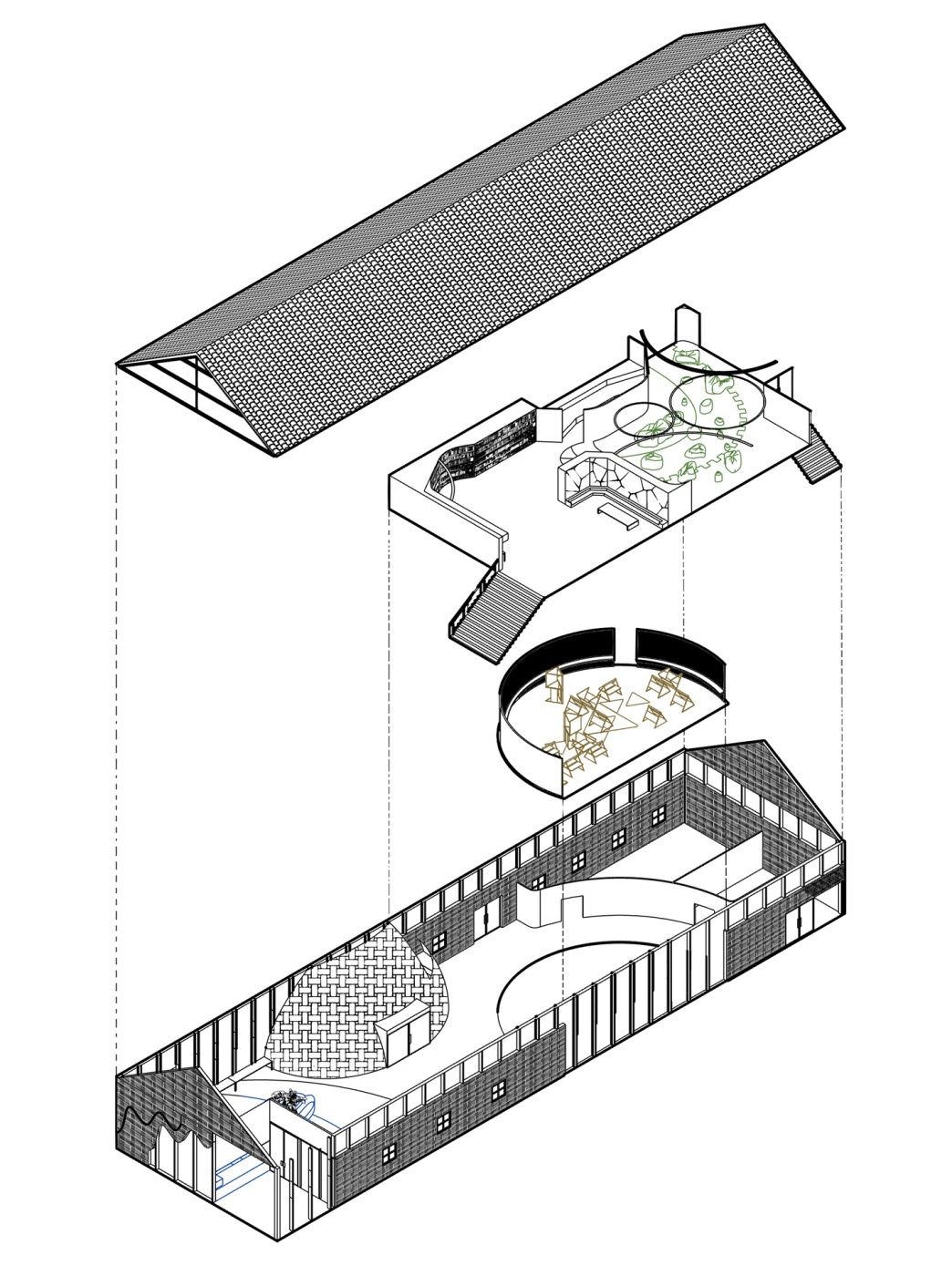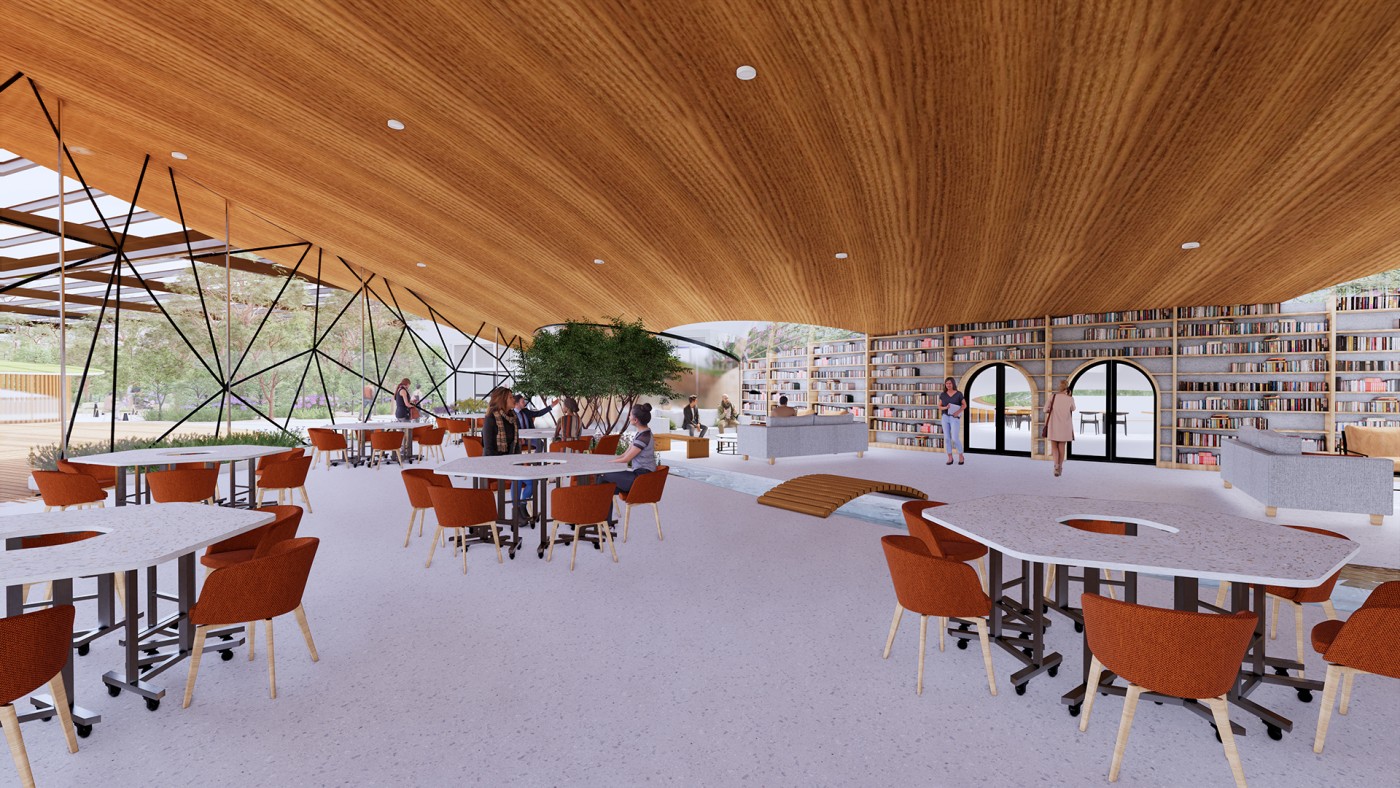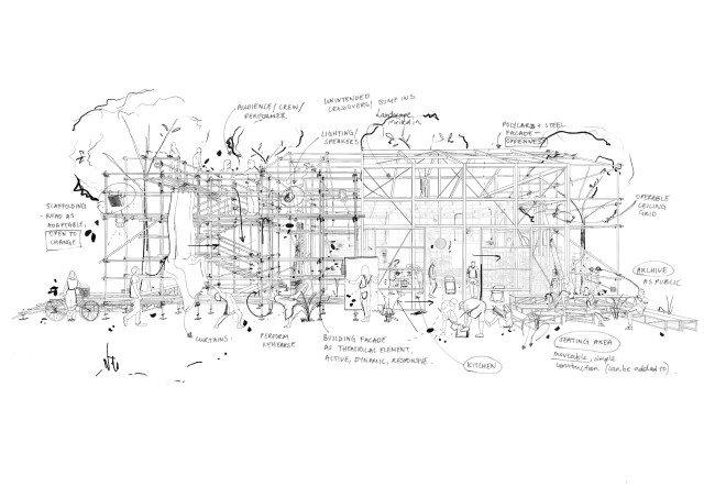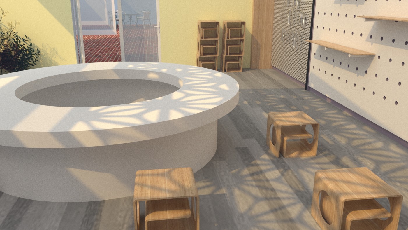 An interior that throughout its entire lifecycle; from material extraction to construction, from occupancy into its future, provides the circumstances, environments, and tools, for participatory practices, where people can meet, debate, learn and test new ways of doing things together, working towards more resilient futures.