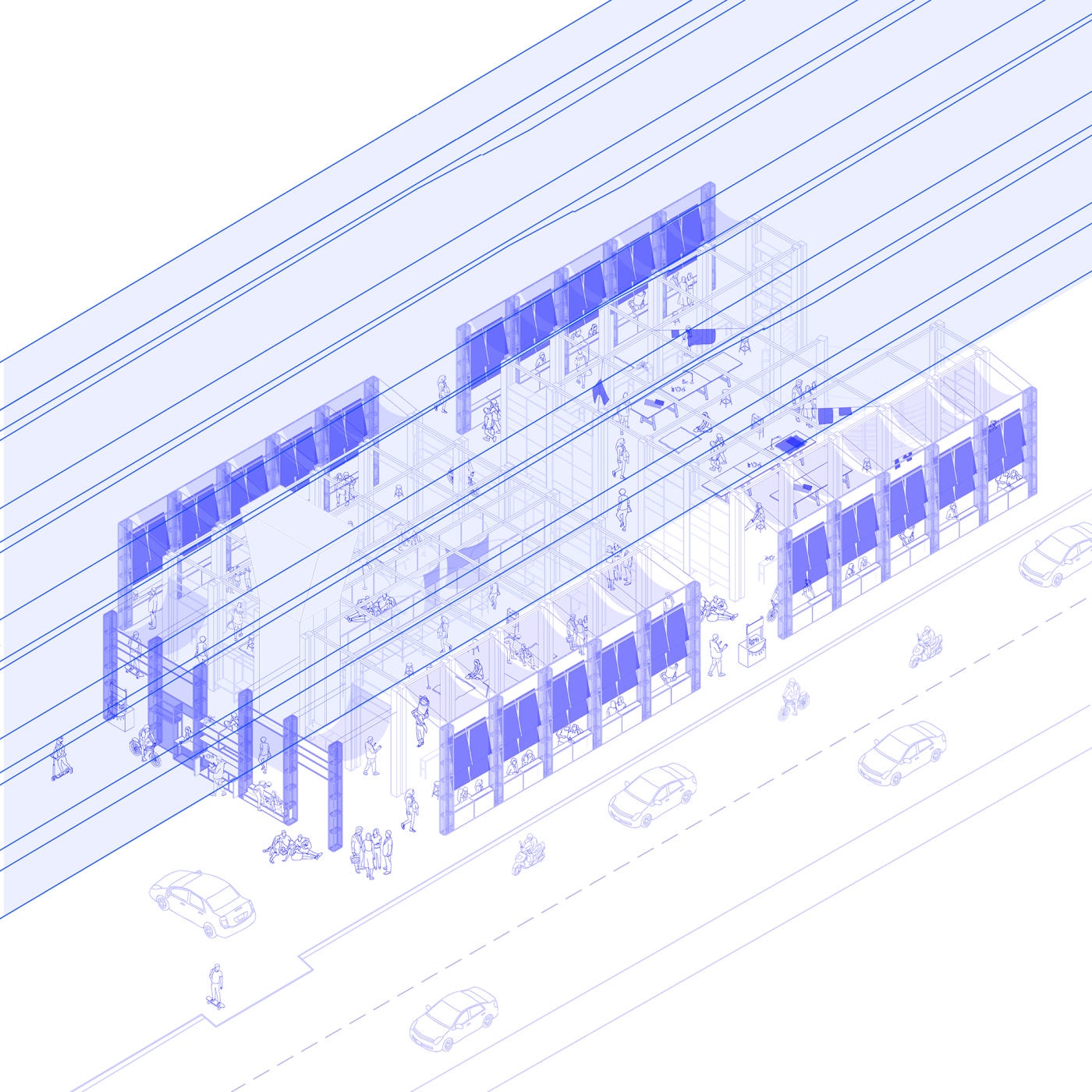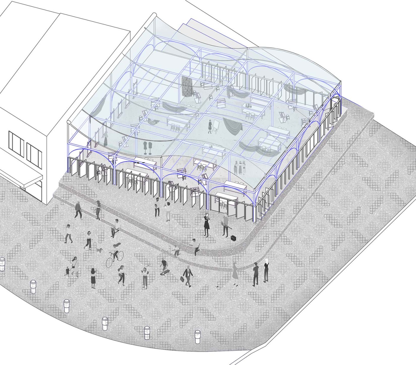 Overall, the research proposes that interiors are always in motion; working with the line as a framing tool to construct territories that respond to immediate conditions and bodies. "
