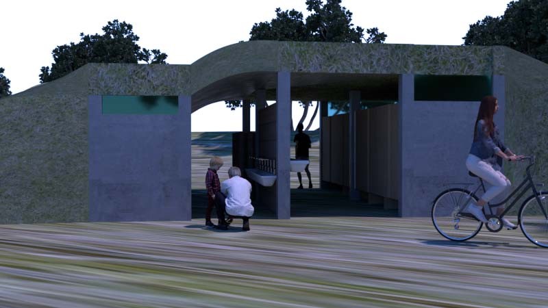 The building was built to blend into the surrounding nature and assist the community by providing public toilets, changing rooms and workshop space for the adjacent Amphitheatre. The site seemed successful in its early years but over time the building was not being used for its initial purpose therefore becoming unused. The site is currently locked up and the council have stated that they want to demolish the site to have more space for the nearby canoe club. The community have spoken up to stop the demolishment with over 3000 signatures.