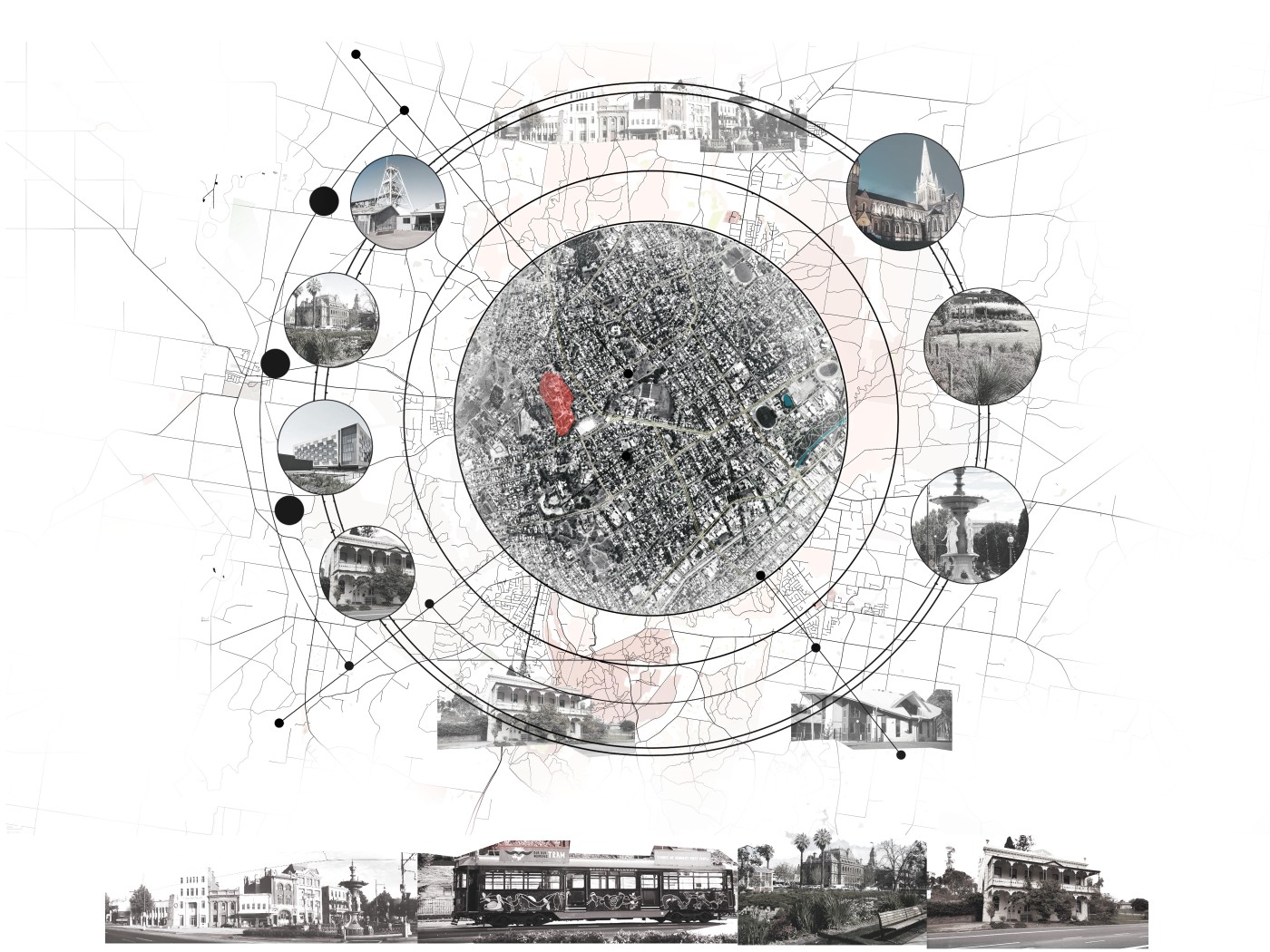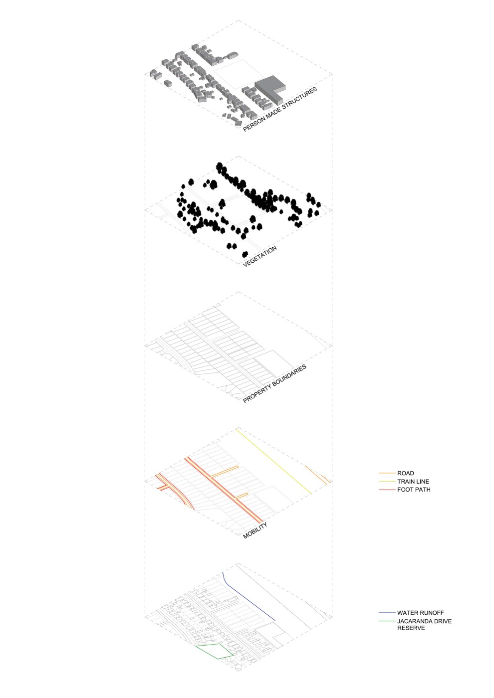 Framing, rearrangement, re-presentation form assemblages tested within a site located in Box Hill. Through techniques of observation, photography, diagramming and iteration the project explores how systems of support unfold in response to existing physical parameters. In turn, exhibiting how this conceptual framework will manifest in multiple vacant sites.