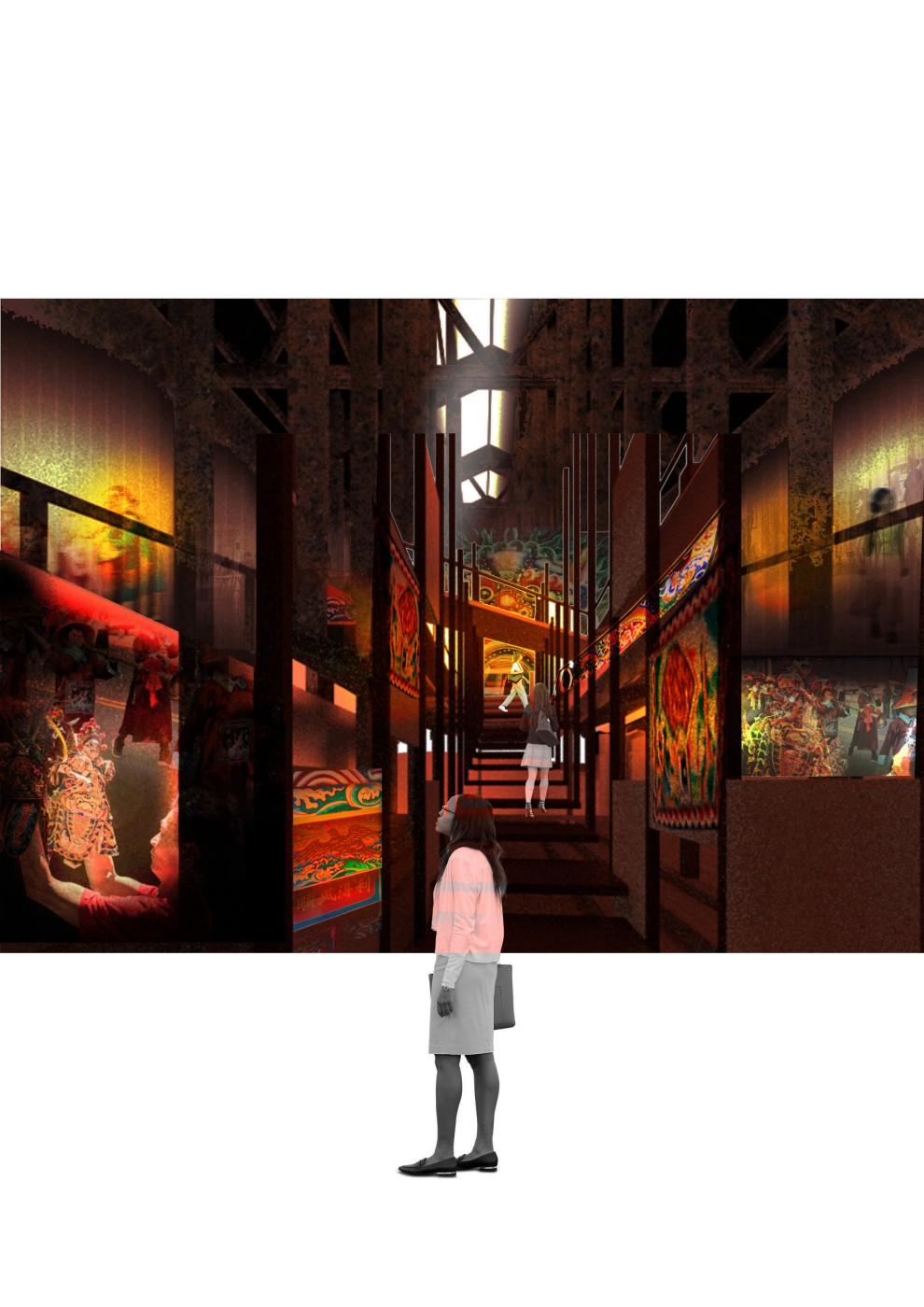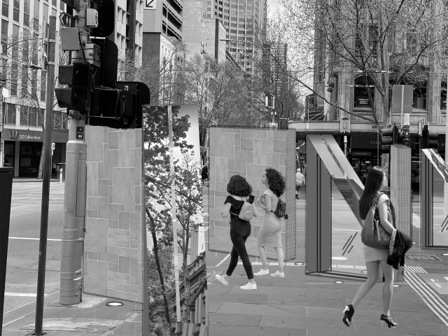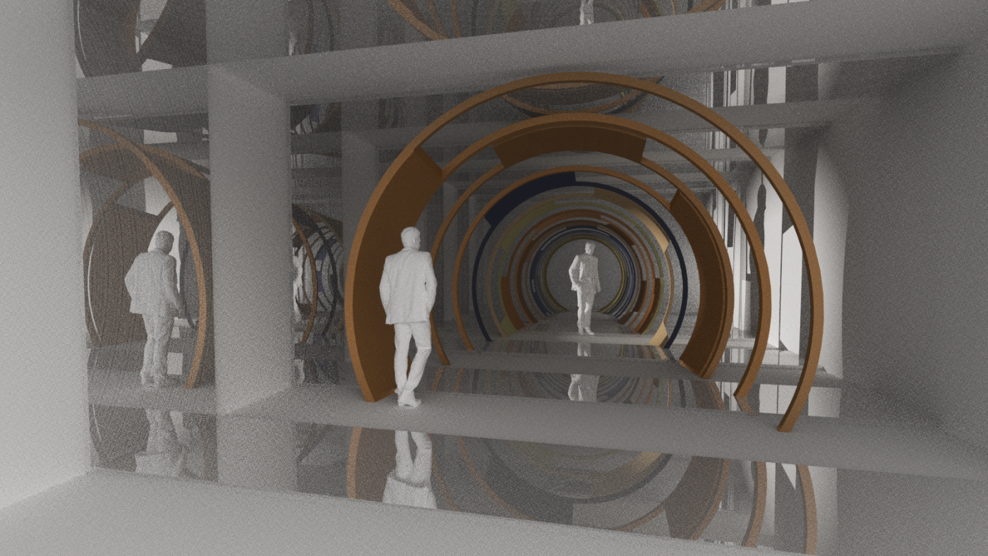 “Alternate Reality” is a proposal aiming to create the atmosphere of dreams and the uncanny in interior spaces. I am proposing an immersive installation located within the majestic architecture of Melbourne’s iconic Flinders Street Station. The train station has an enduring literary and symbolic resonance in dream imagery. In particular, I am proposing to use two near identical corridors within the historic complex.