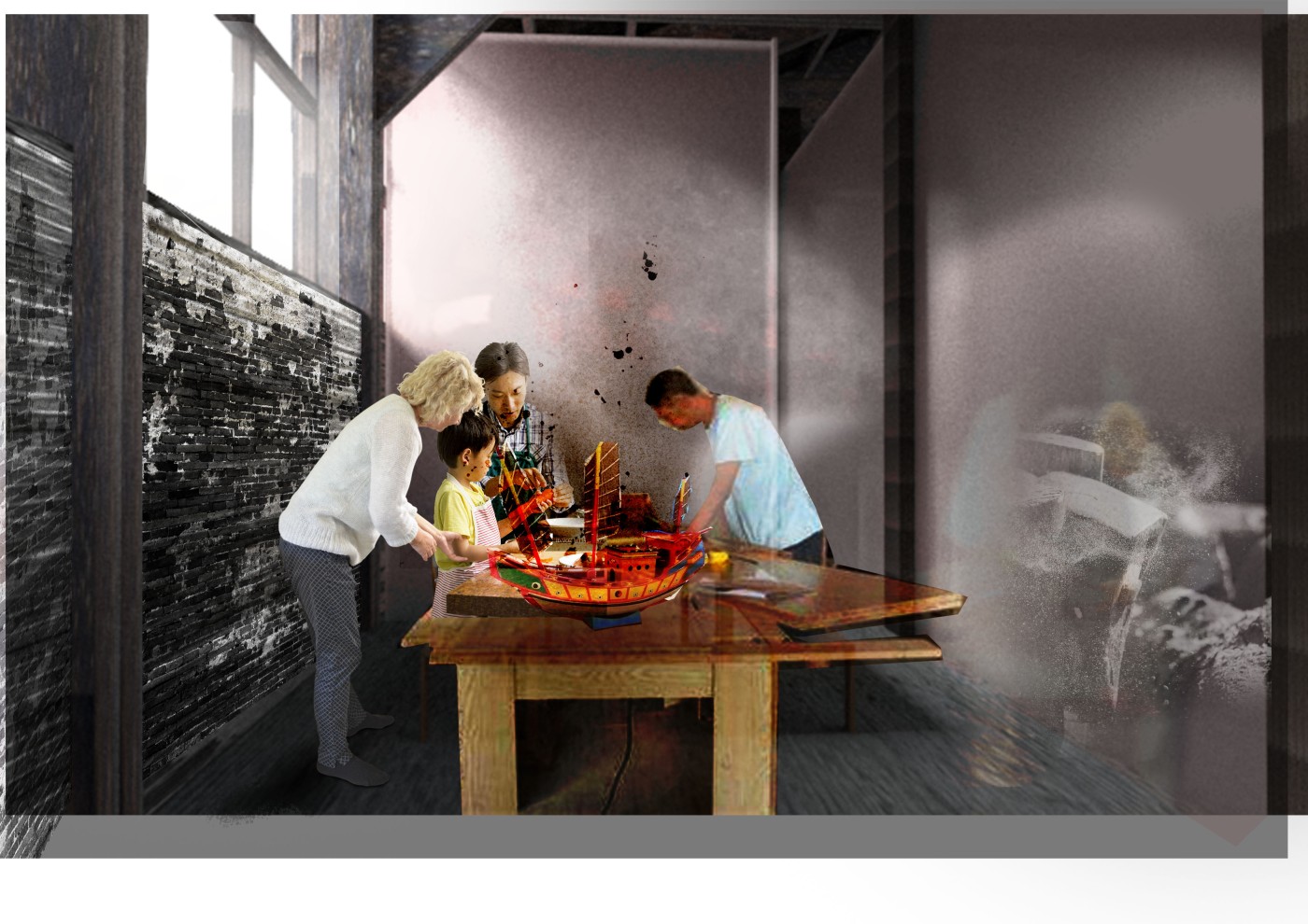 VR, binaural technology, and sensory interventions are incorporated into this project to explore memory and history. According to the sequence of time and space, the exhibition brings an immersive journey to the audience. Through the auditory, olfactory and tactile interactive system, the audience can actively and passively trigger physical memories through their bodies.