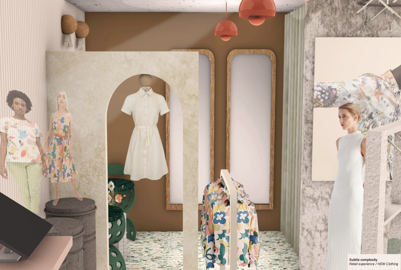 By assessing the context of retail spaces, specifically the Kenyan retail scene, Woven Identities begins to identify both cultural and local characteristics of fashion objects from the Maasai people of Kenya. The central theme in this proposal looks at individual expression and artificial meaning imprinted by different people, places, time periods, and events and further attempts to intensify the histories of these extant fashion objects. The project is a temporary interior manifested into a series of curations that begins in the plaza space of a local mall in Nairobi, Kenya. It then journeys into a shop that nurtures intimacy and brings a unique experience in shopping and retail, with an audience and the specified objects, extending a distinctive angle that is contradicted in the mundane shopping mall. This interior is further executed through a series of display techniques, assemblages and arrangements.