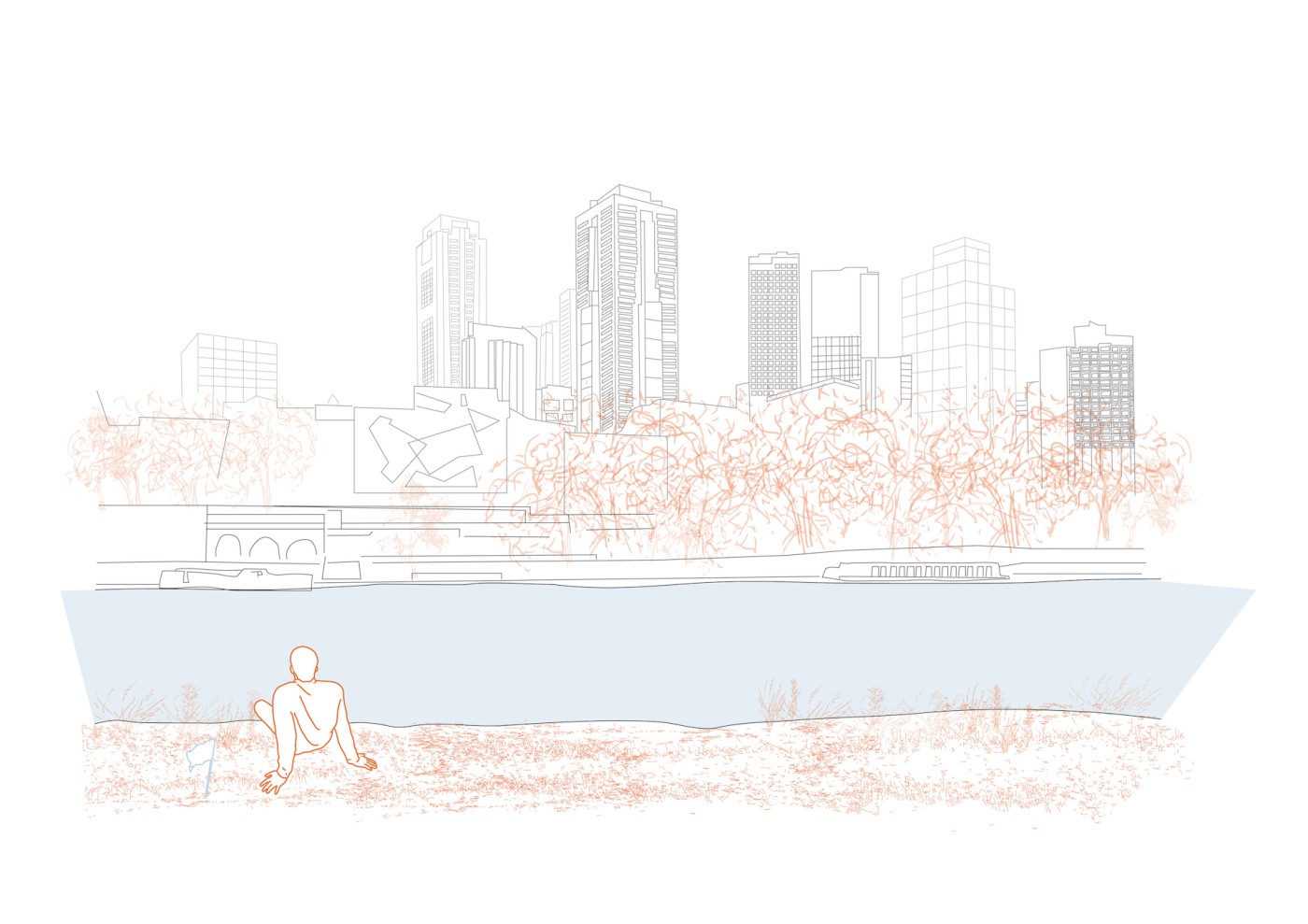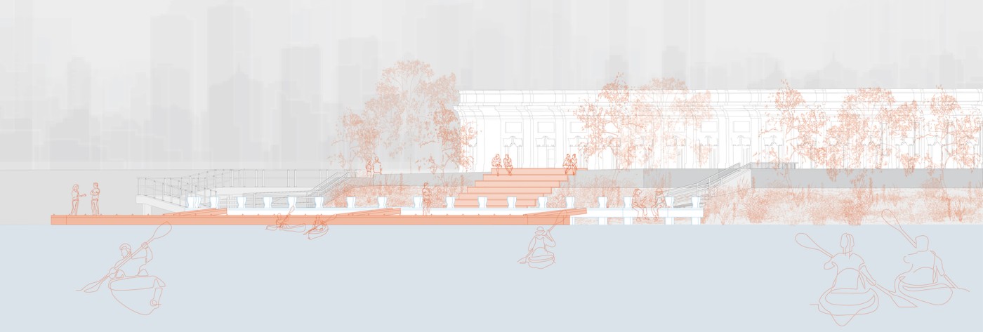 The design explores the social, poetic, and spatial potentials of two areas along the Moonee Ponds Creek, reflecting different contextual urban spaces. The design proposes to bring a sensitivity to water by introducing vitality to the space within the urban experience, emphasizing the river as a situation for social and cultural importance.