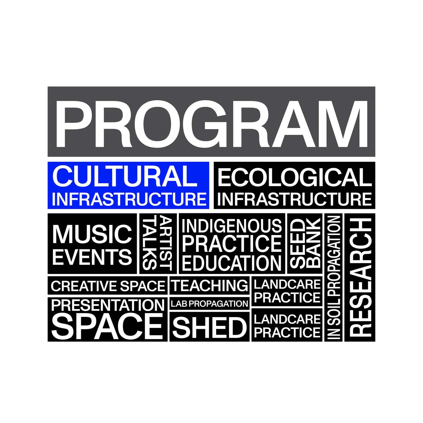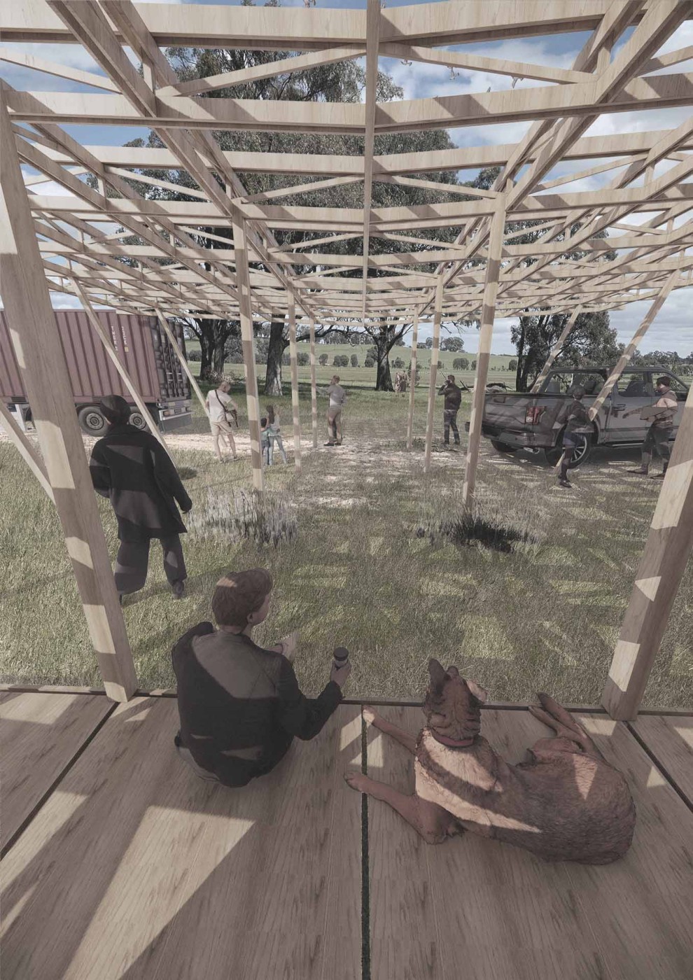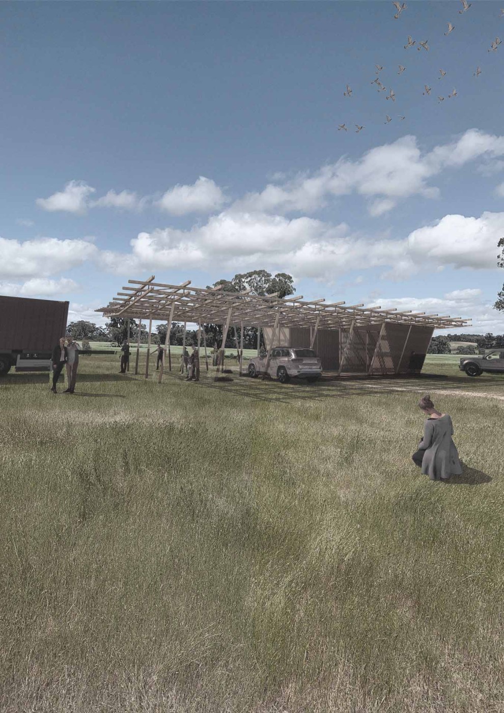 Utilising a legacy of resources left by an age of “for profit” agricultural intervention and focusing research into three main sectors (built capitol, natural capitol and social capitol) this exploration culminates to a piece of cultural and ecological infrastructure. A structure in northeastern Victoria centered between Banella, Shepparton and Euroa, providing a dynamic interior, aimed at facilitating place and platform for people in processes of social and environmental repair.