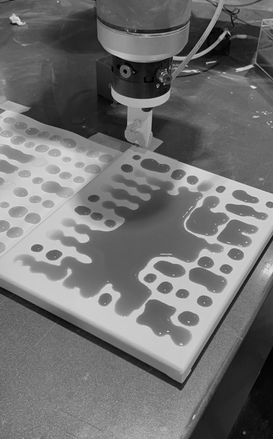 In the first semester, we focused on practices of digital data – its analysis, visualisation and use in design practice – in a practical seminar series called Designing with/for/in/to/from/by Data. Taking the foundational approach that spatial relationships are flows and networks of change, we used data to look at flows. Starting with practices of data visualisation, instructional art, and procedural generation, we moved through designs created from data by vision, sound, smell, touch, and taste, finishing with an exploration of data-based procedural designs using industrial robots, 3D printing, and other procedural manufacturing techniques.