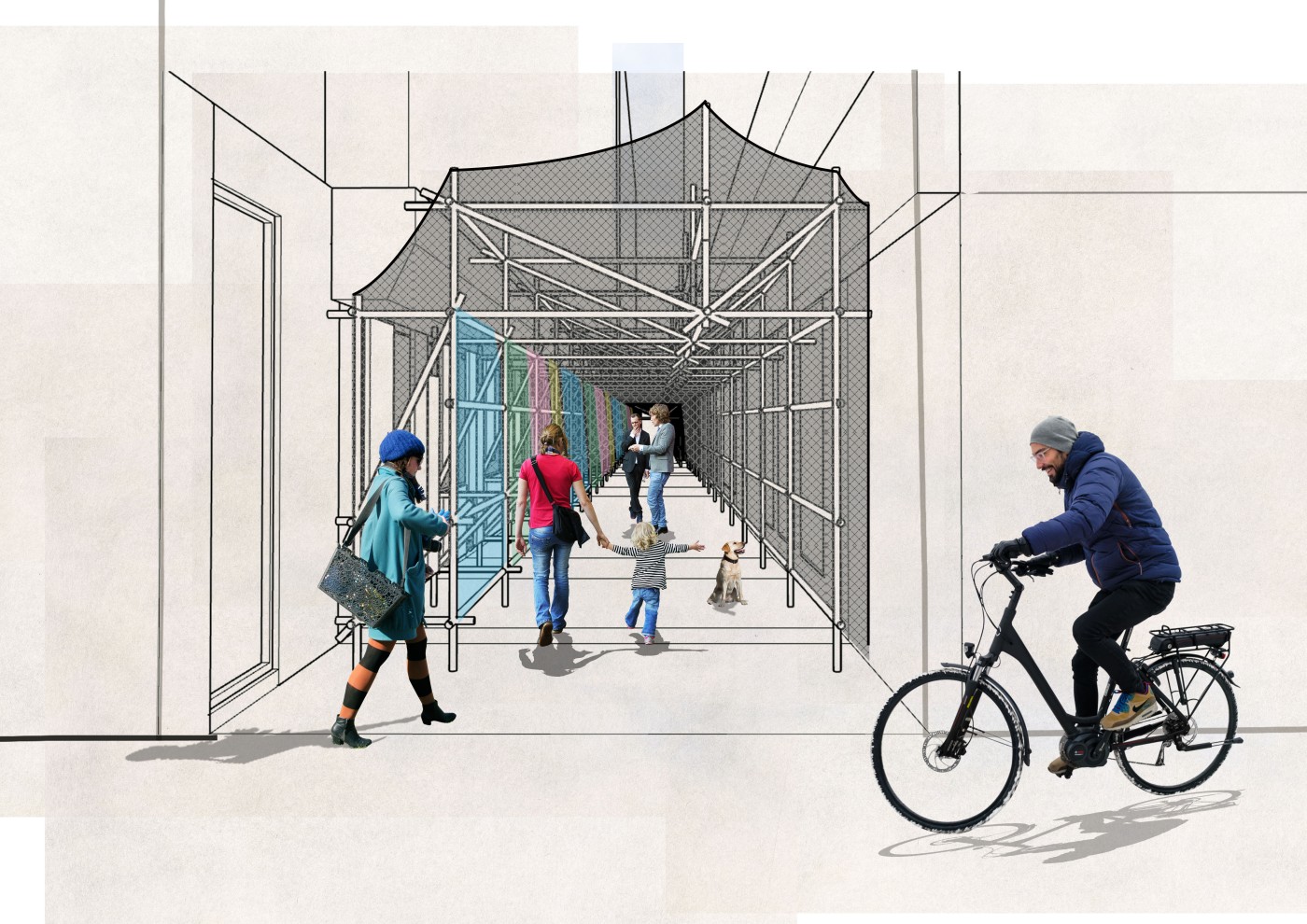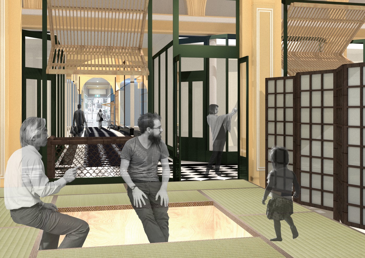 DomestiCITY is a proposed urban interiority that is an extension of the home. We aim to enhance three critical qualities of the domestic realm as familiarity or a feeling of being at home, culture and play to encourage individuals to come back into the city of Melbourne. The project aims to find ways to slowly ease individuals back into public life. To allow for a smoother transition, the interventions aim to bring the familiarity of our homes, which turned into safe havens during the lockdowns, into the urban context to mitigate anxiety and reduce stress for individuals. Thereby allowing for smaller and more manageable steps into the new normal post-COVID-19.